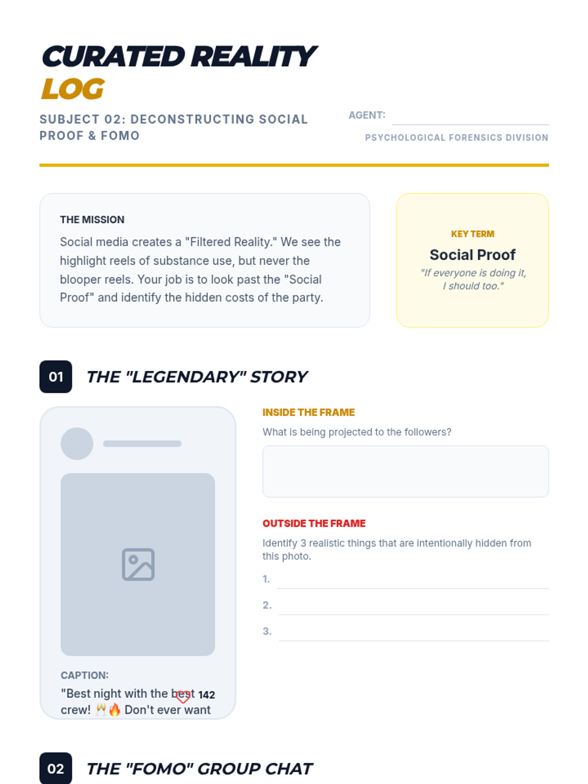 This 9th-grade Health sequence investigates peer pressure through a media forensics lens, deconstructing how pop culture, social media, and group dynamics normalize substance use. Students build critical media literacy and psychological awareness to recognize and resist coercion tactics.