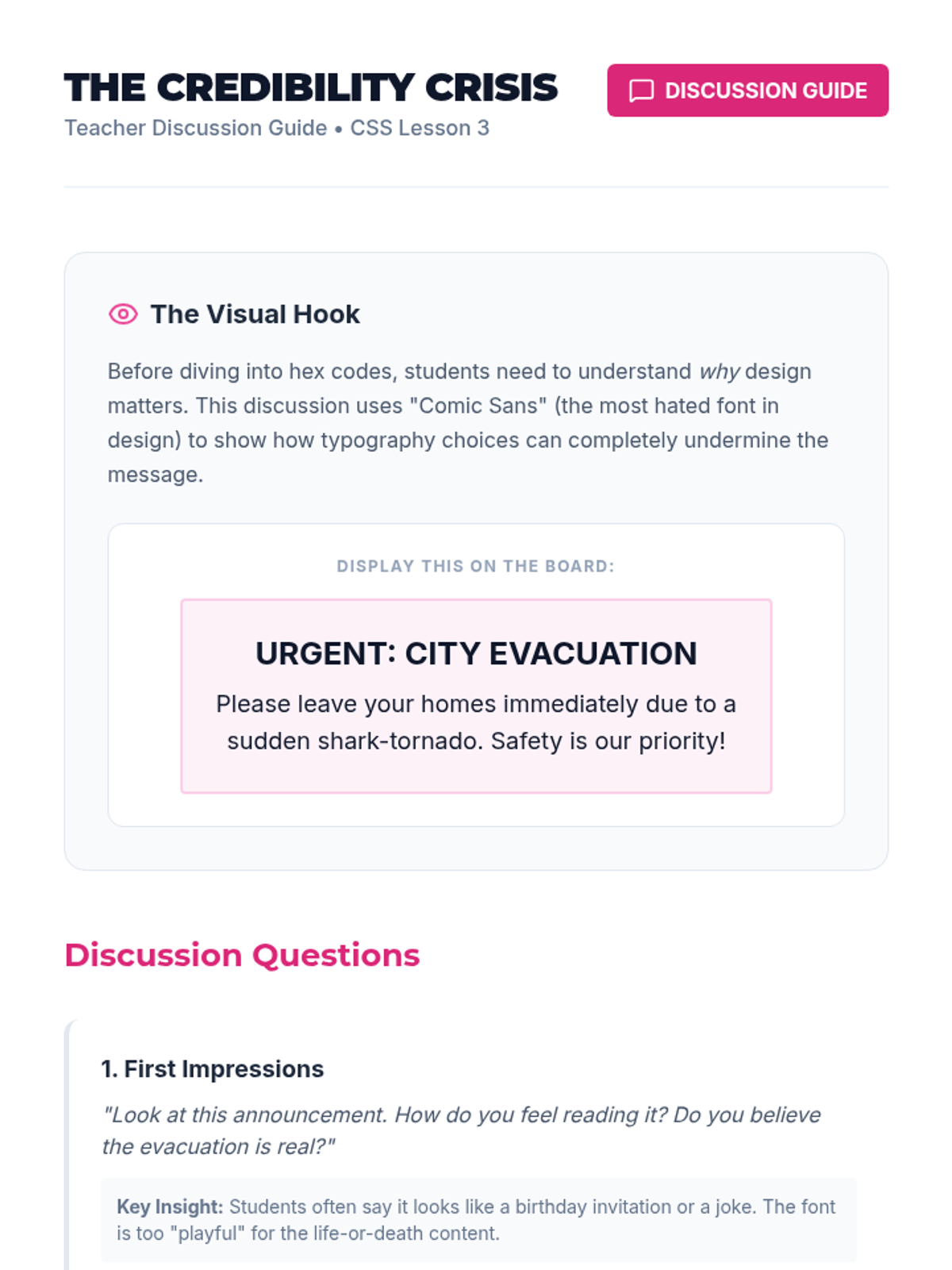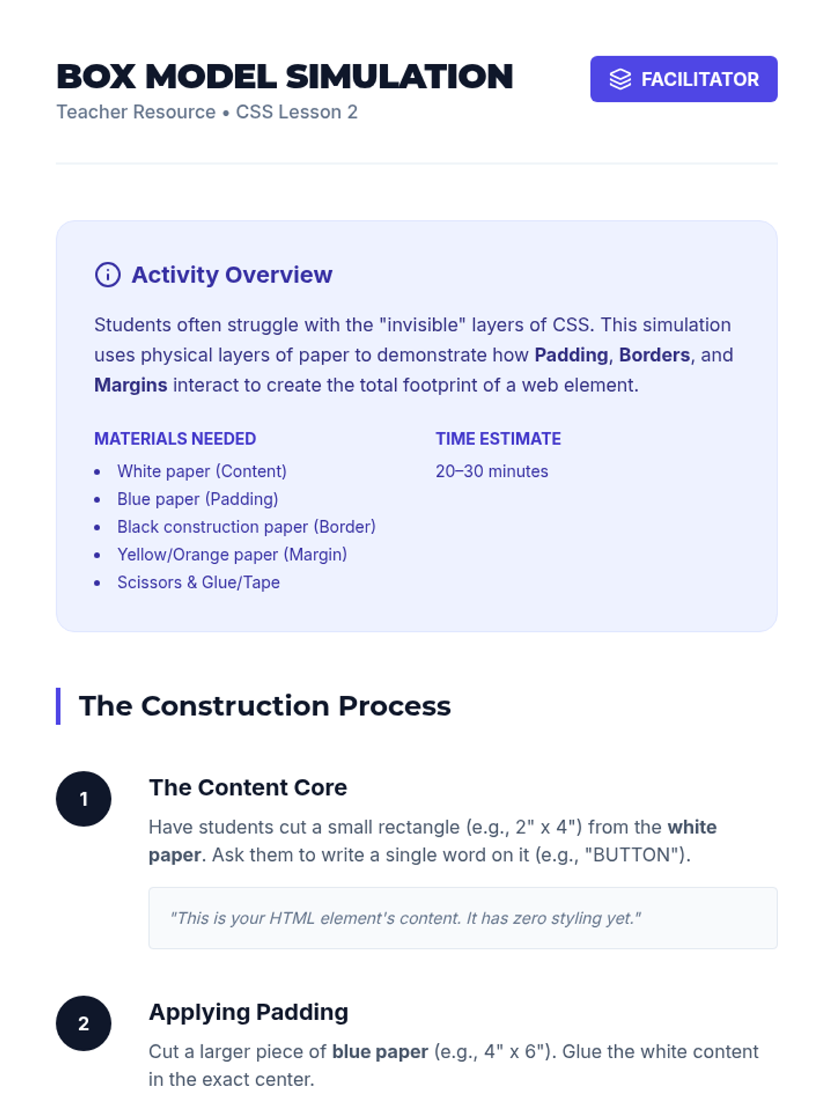 A comprehensive introduction to CSS for 9th-grade students, focusing on selectors, the box model, typography, flexbox layouts, and responsive design through hands-on coding challenges and visual theory.