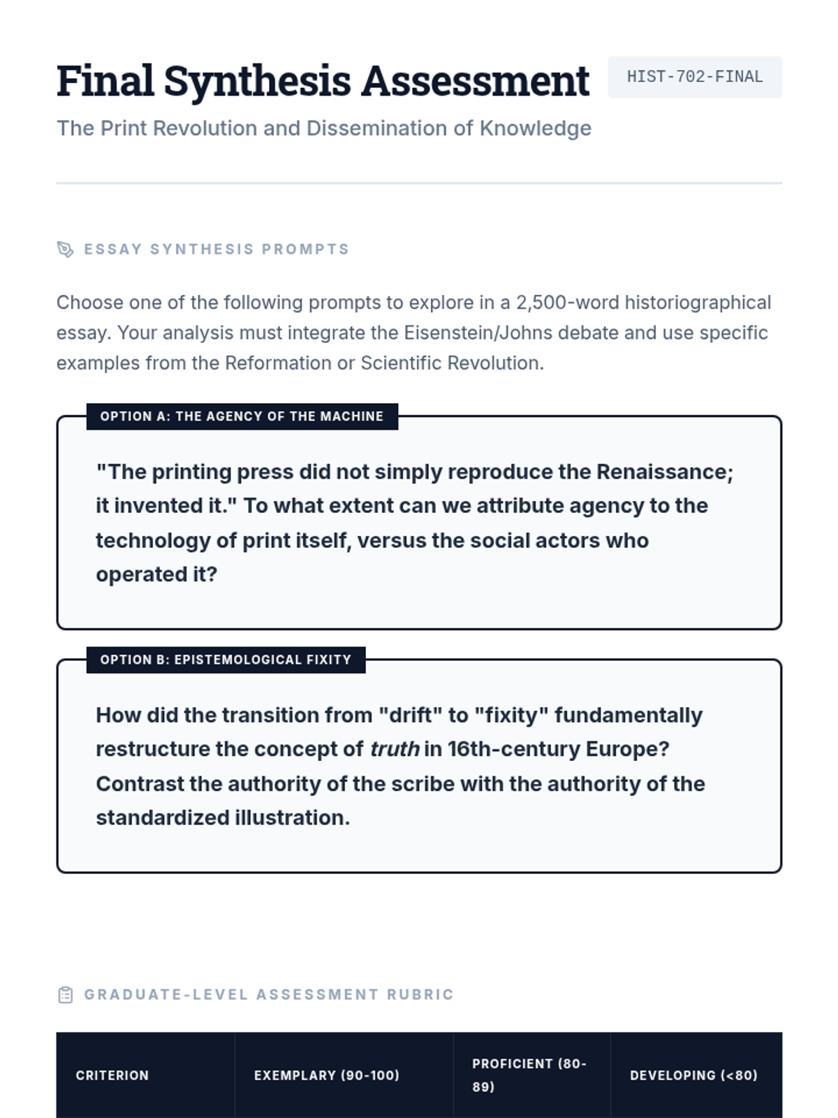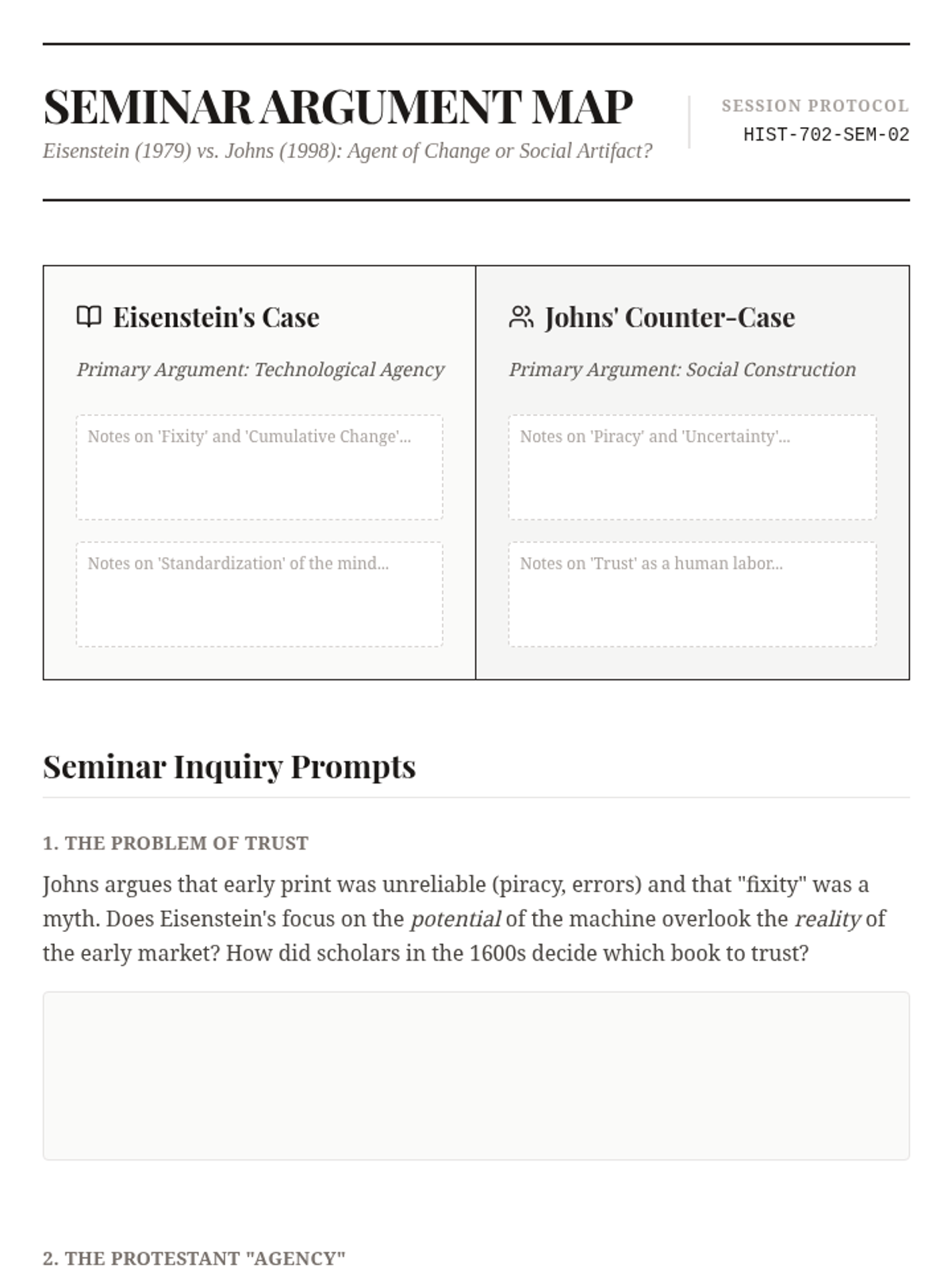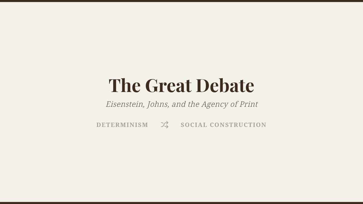 A graduate-level exploration of media archaeology, examining the shift from scribal to print culture as a catalyst for cognitive and structural shifts in Renaissance Europe. Students engage with the Eisenstein thesis, historiographical debates, and the impact of print on religion, language, and science.