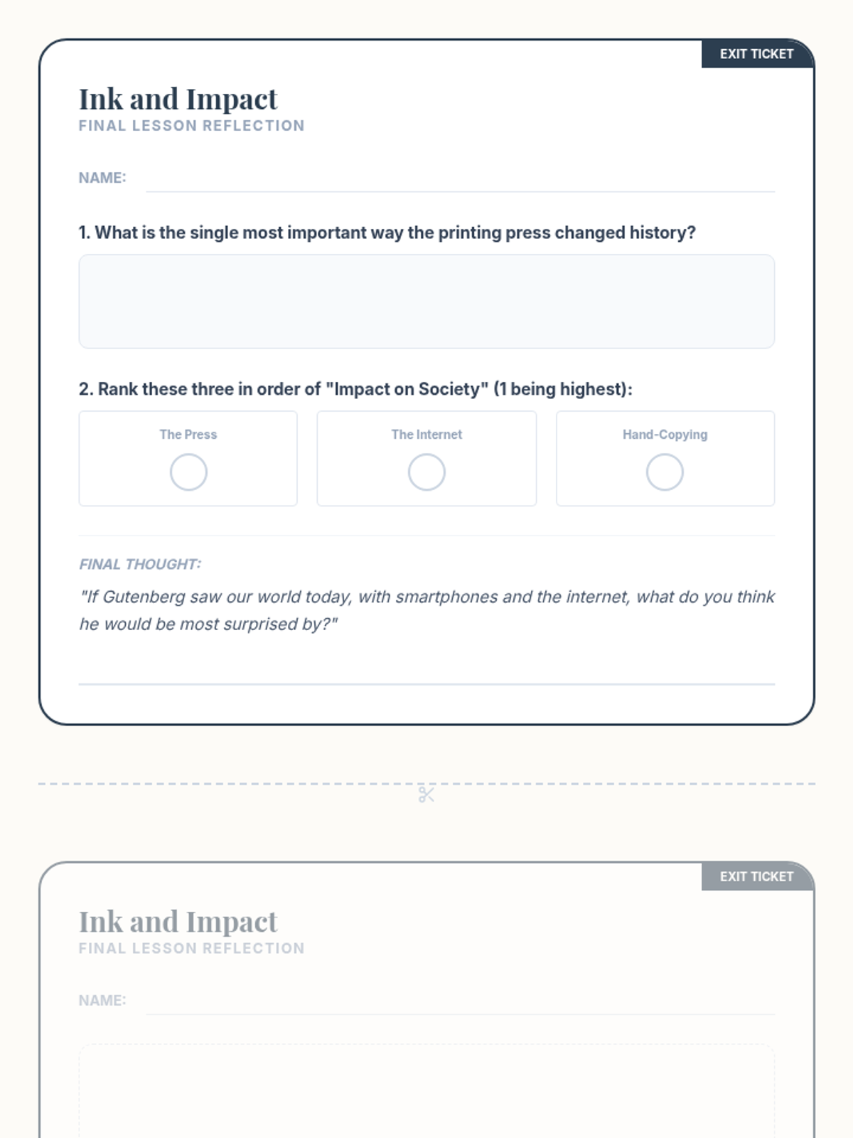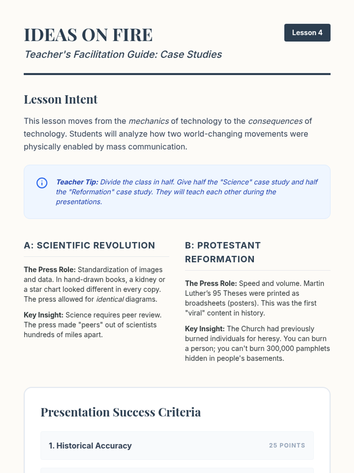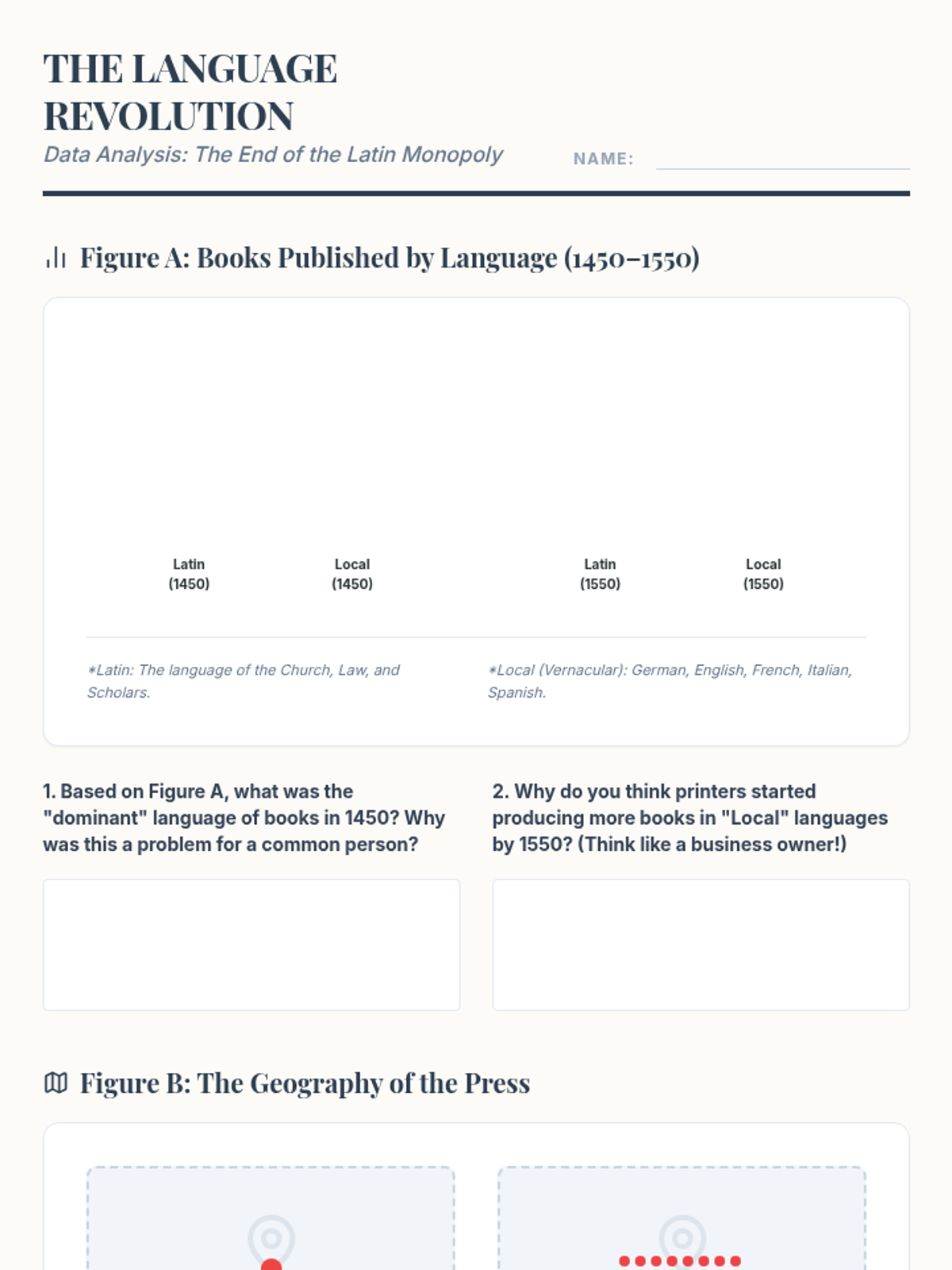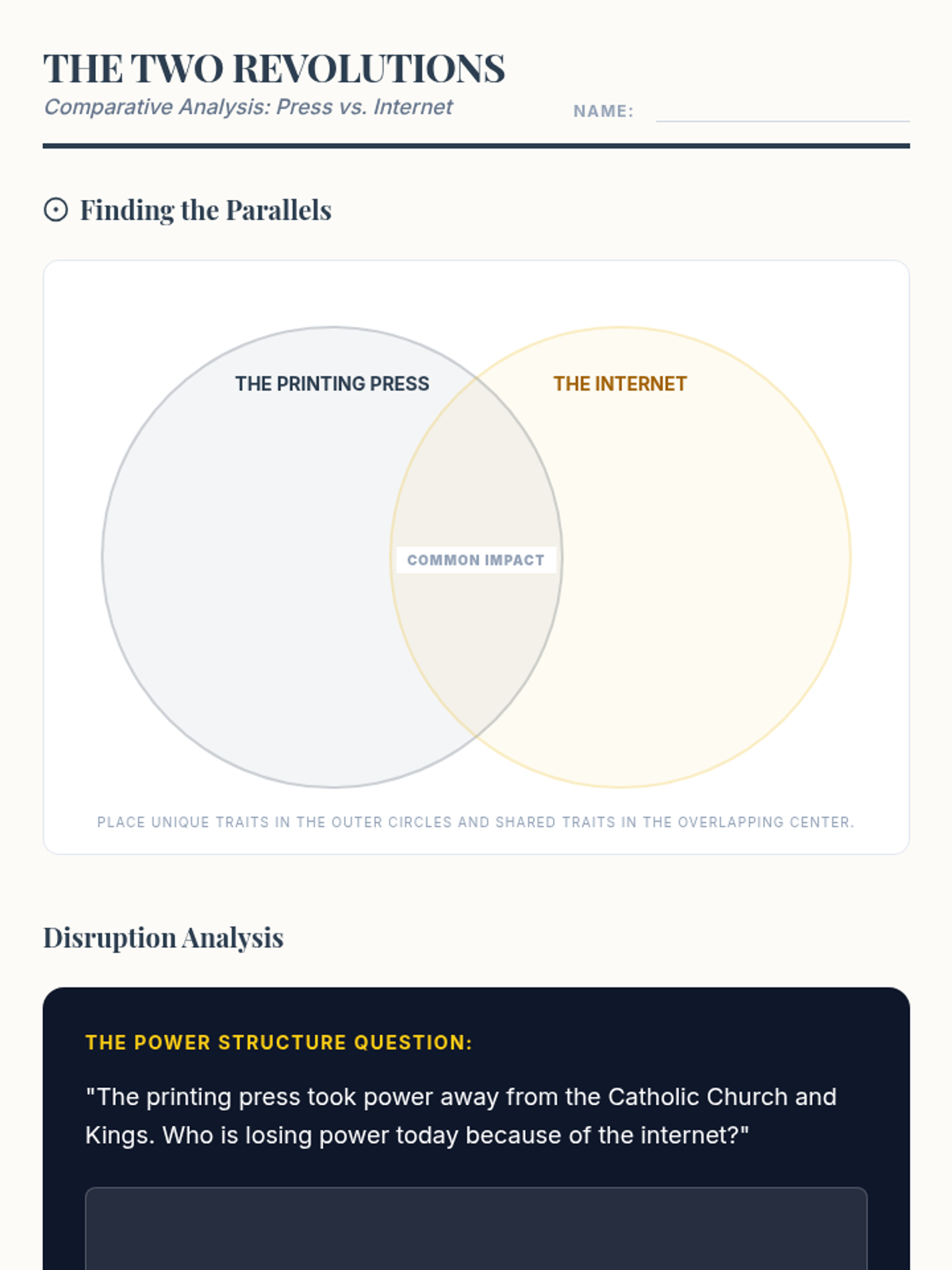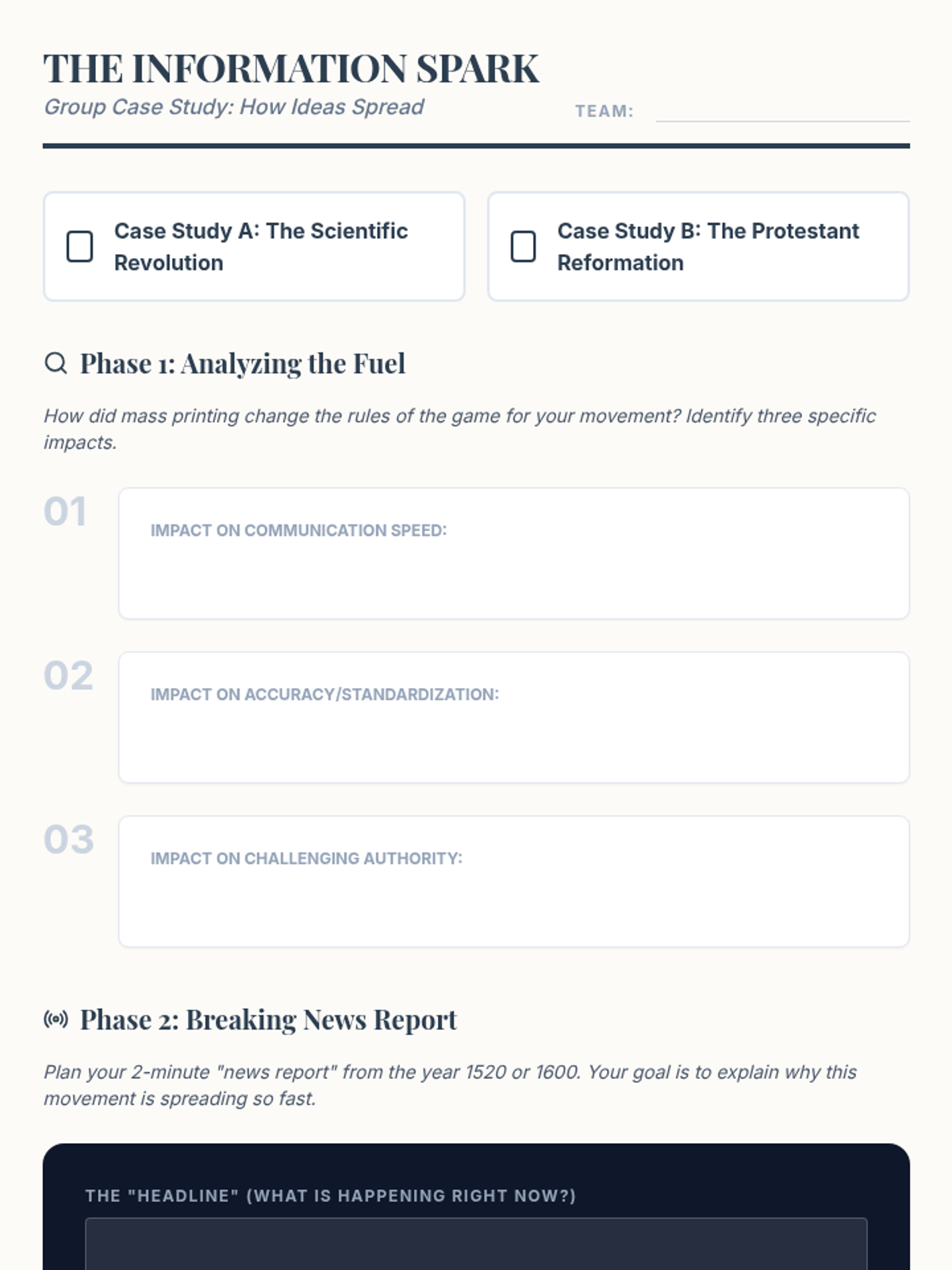This sequence explores the transition from hand-copied manuscripts to mass-produced books, analyzing how Gutenberg's printing press democratized knowledge and paved the way for modern information sharing. Students will engage in simulations, data analysis, and comparative studies to understand the technological disruption of the Renaissance.