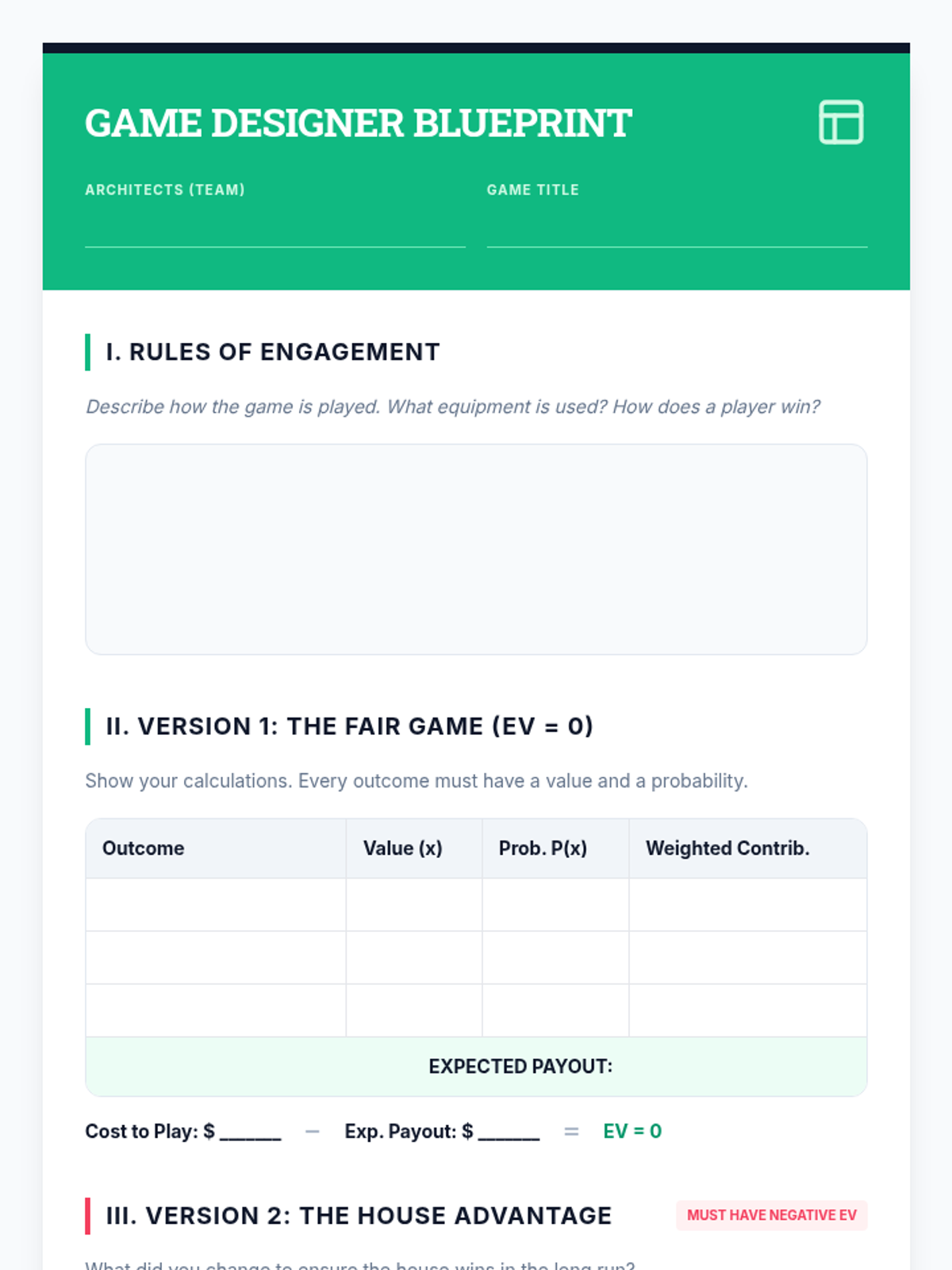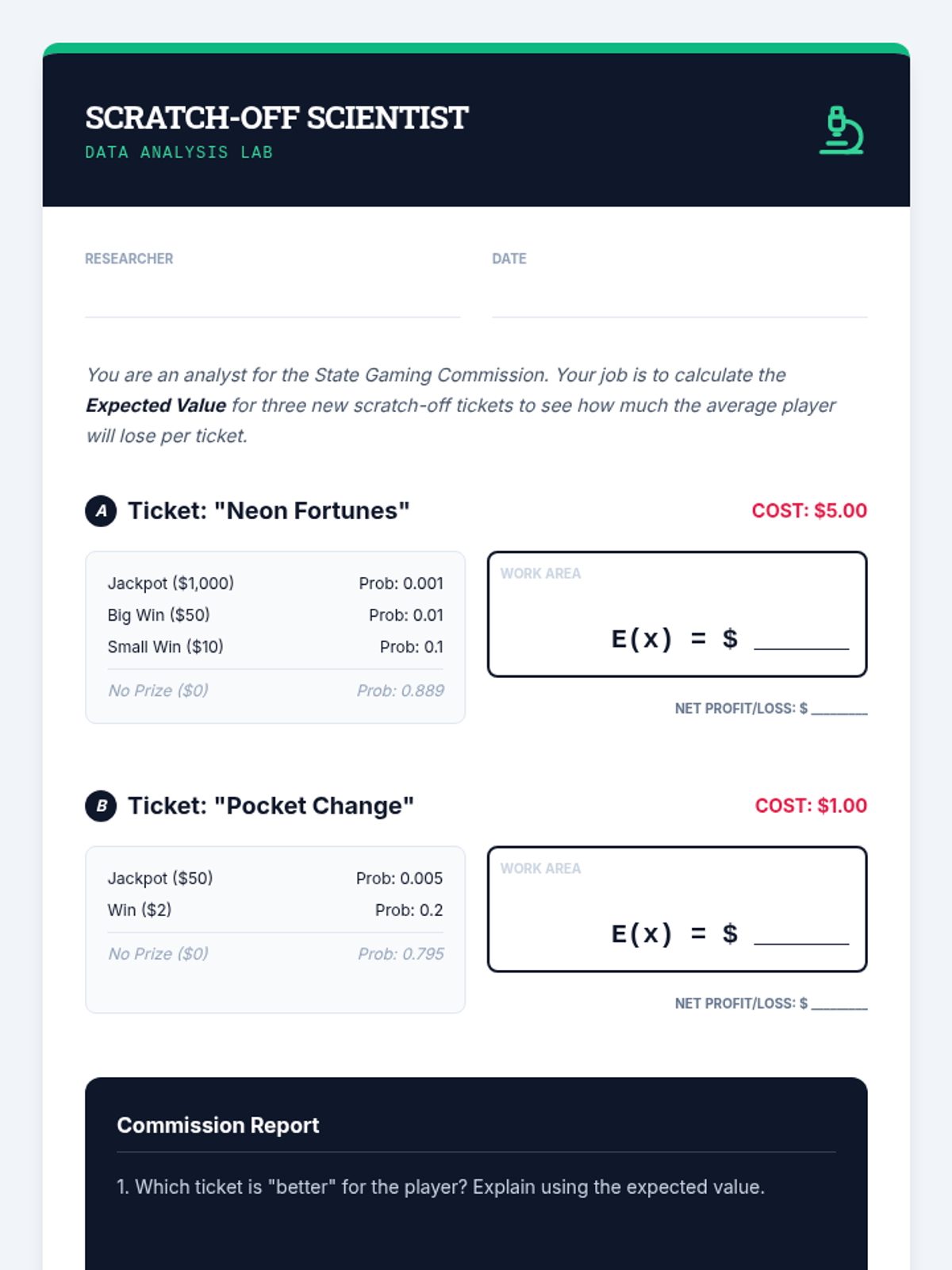 A game-based sequence where 8th-grade students explore probability, weighted averages, and expected value to analyze fairness and long-term trends in games of chance.