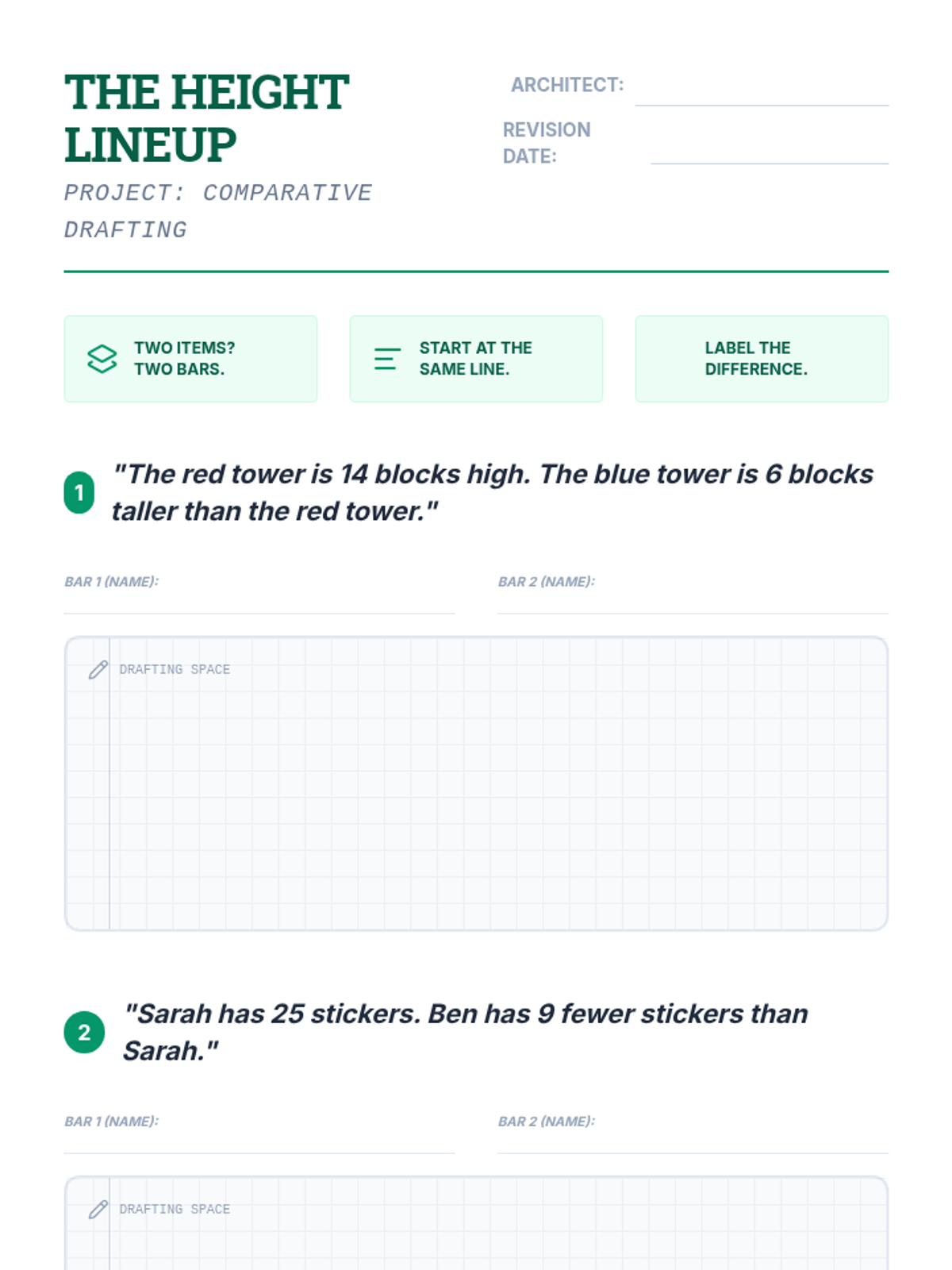 A 5-lesson sequence for 5th-grade students focusing on the systematic development of bar modeling to decode multi-step math word problems. The sequence builds from basic part-whole relationships to complex multiplicative comparisons and two-step problem deconstruction, emphasizing visual representation over calculation.
