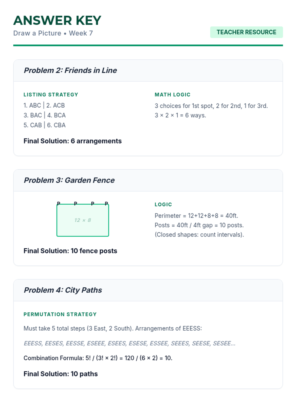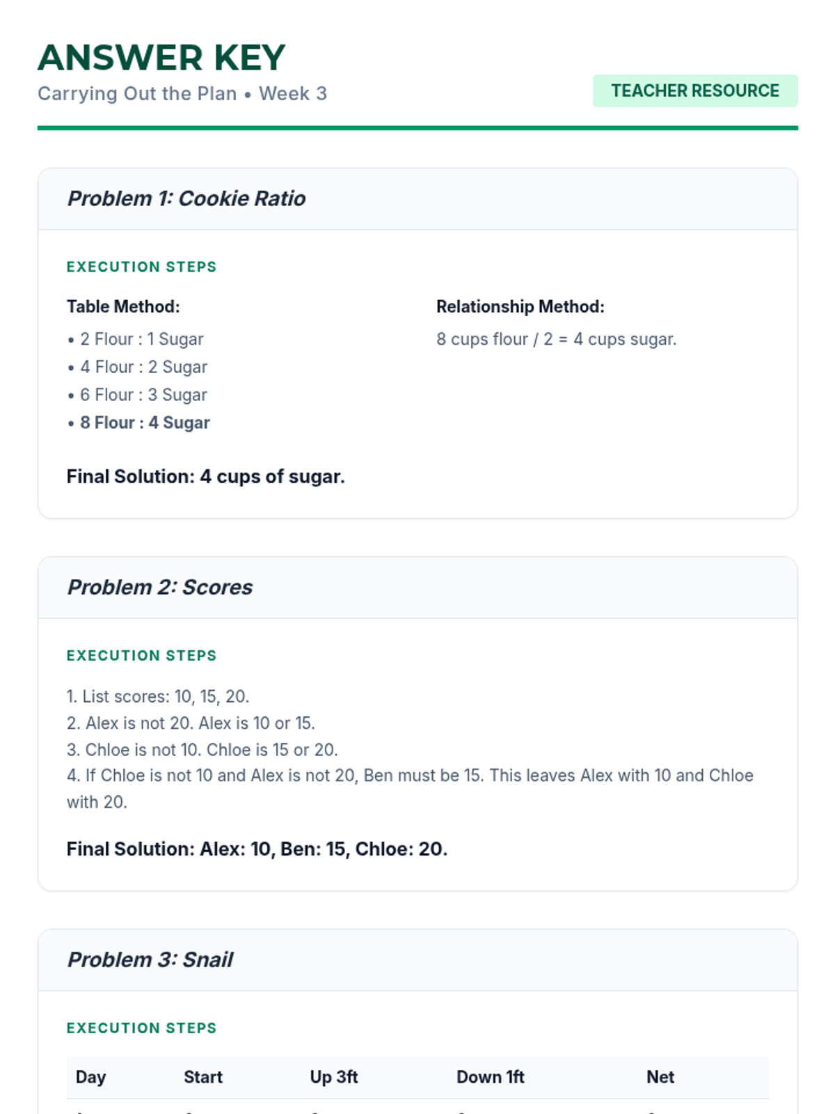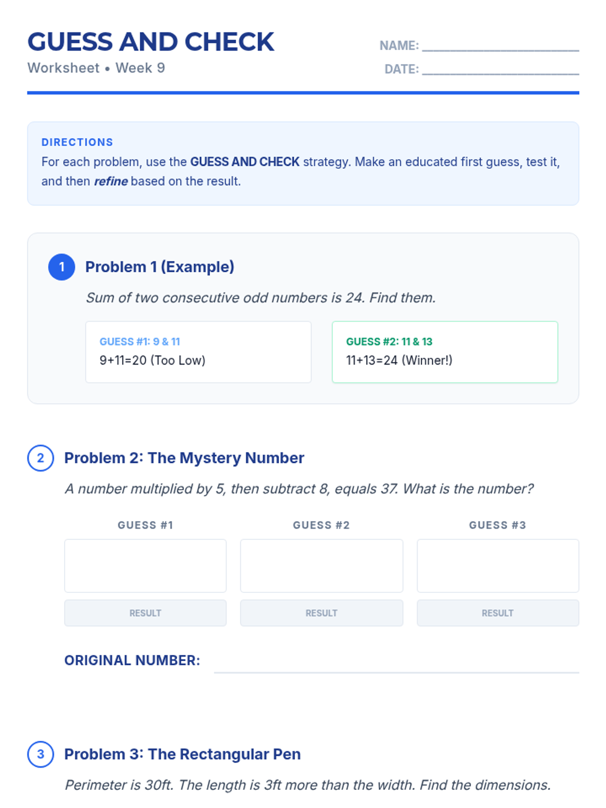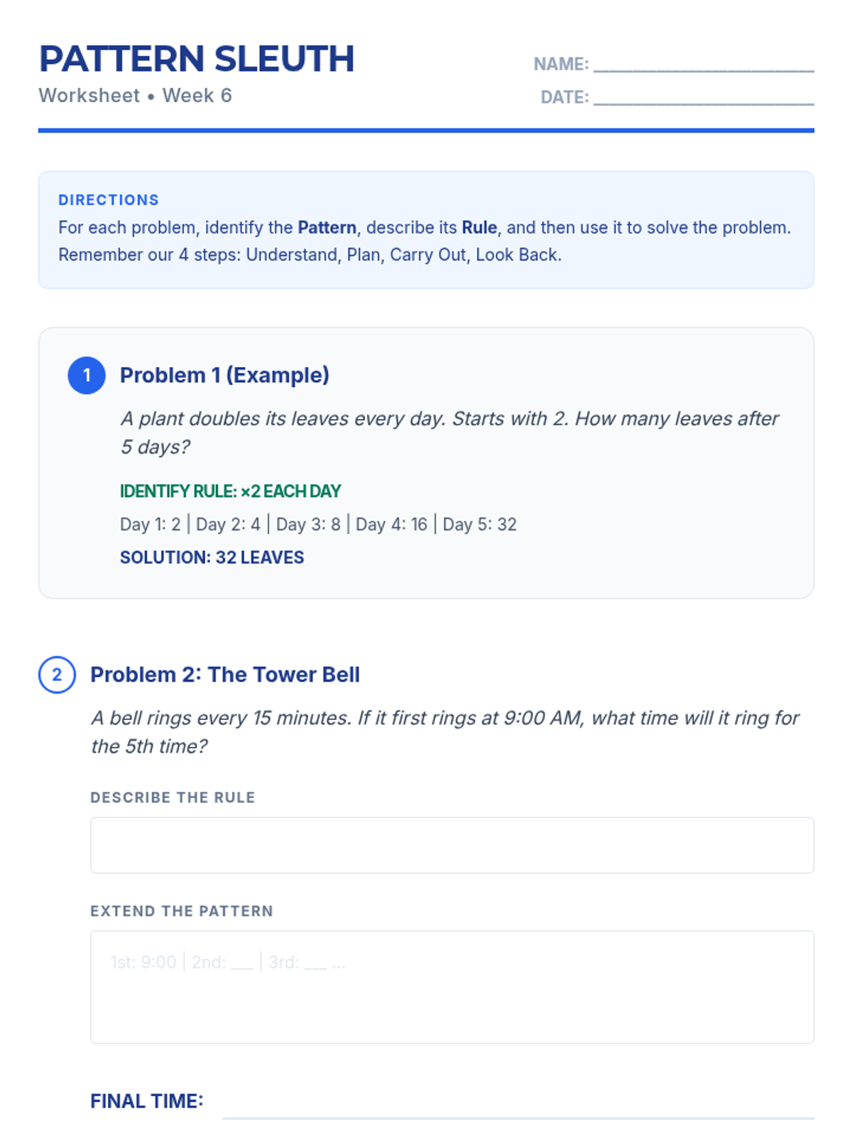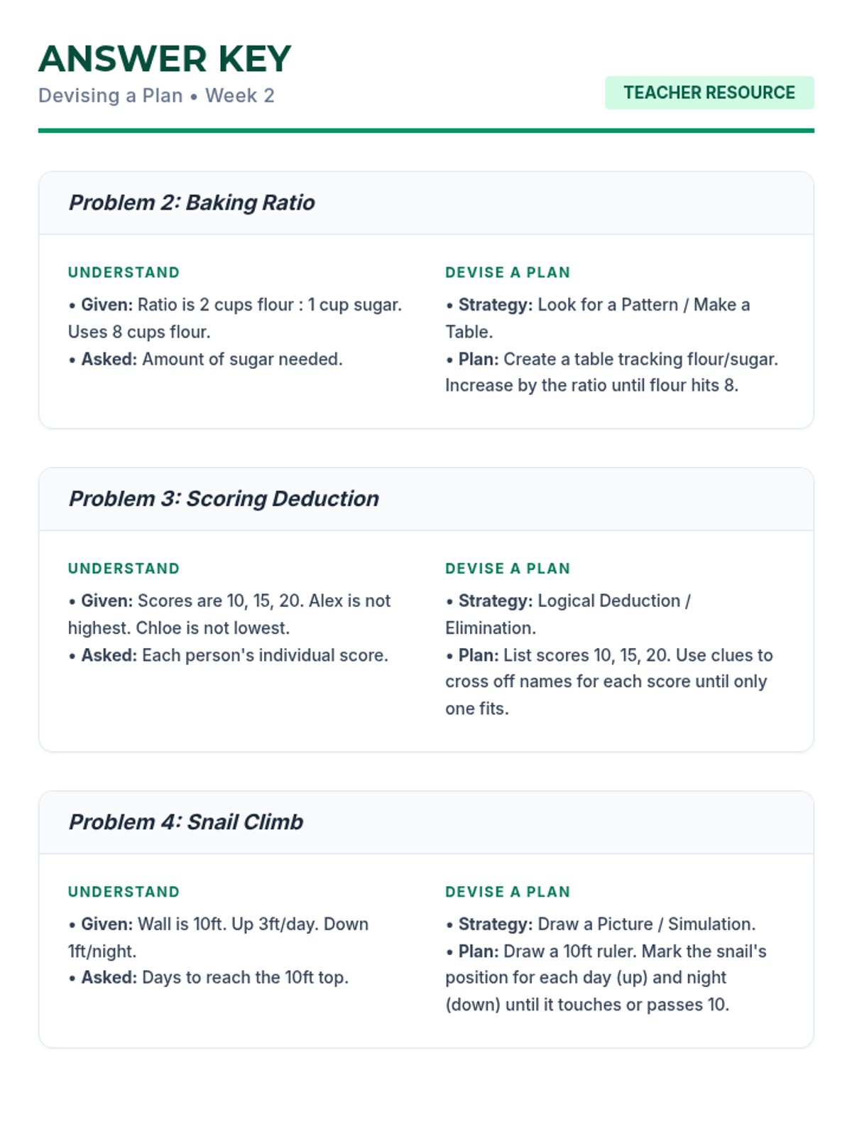 A ten-week Tier 2 intervention program for 7th graders focused on Polya's four-step problem-solving process and specific mathematical strategies. Each session is designed for 30 minutes and includes visual instruction, guided practice, and independent reflection.