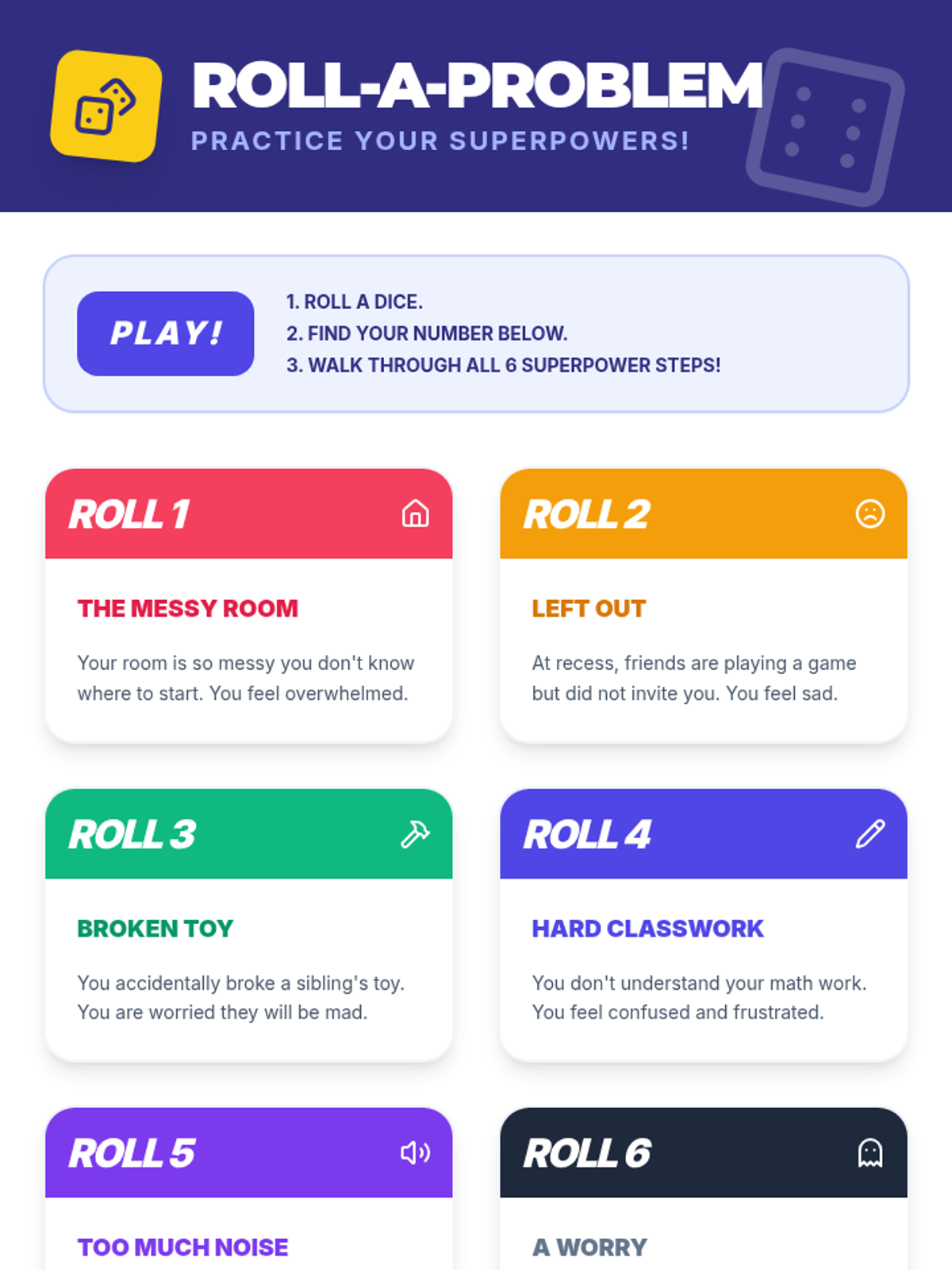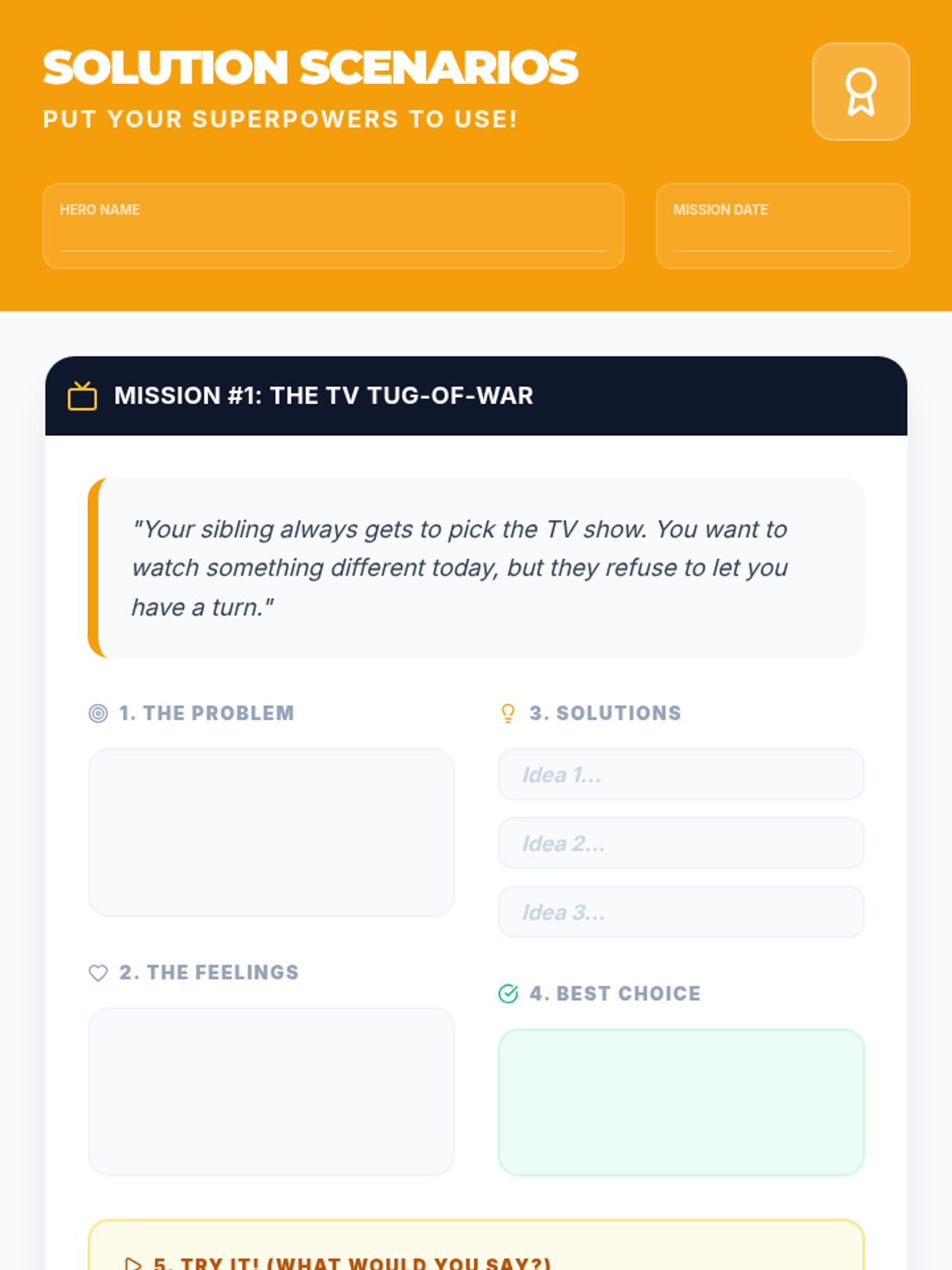 A 4-week, Tier 3 individual counseling sequence for 5th-grade students functioning at a 2nd-grade level. This unit uses a superhero theme to teach a 6-step problem-solving process through CBT and solution-focused strategies.