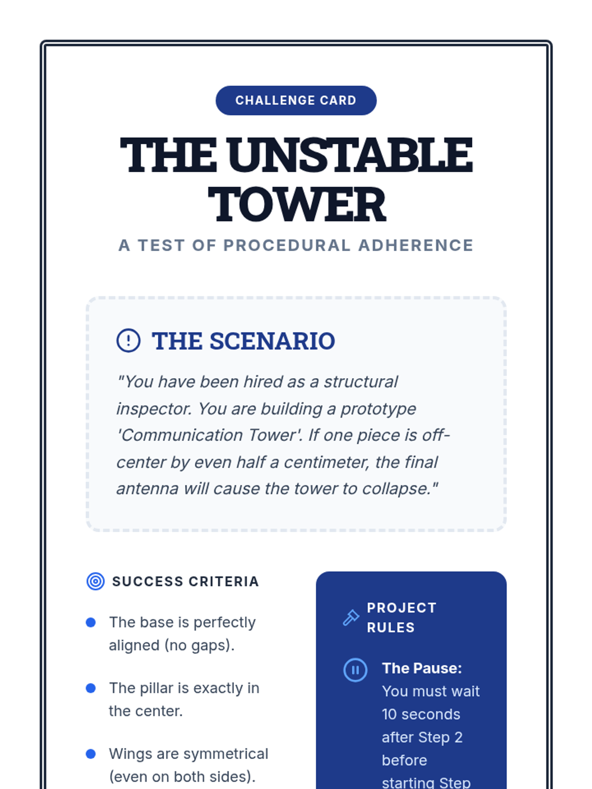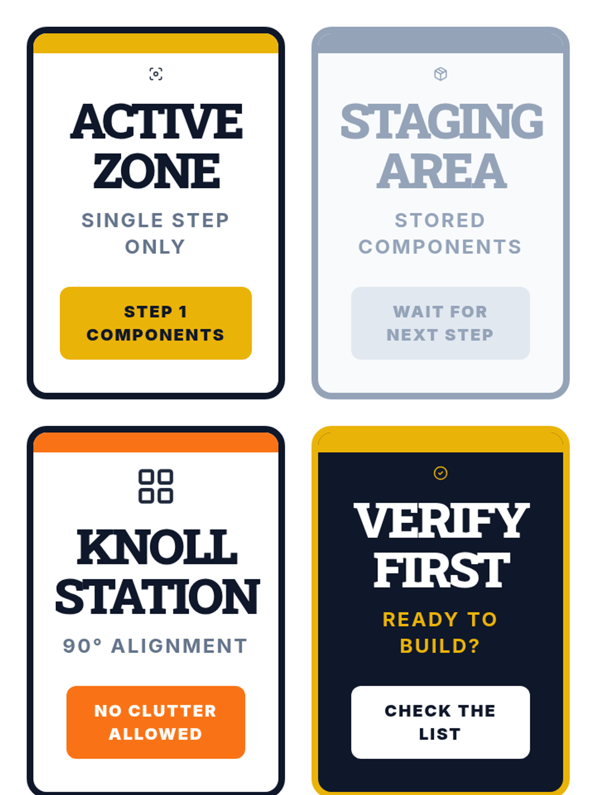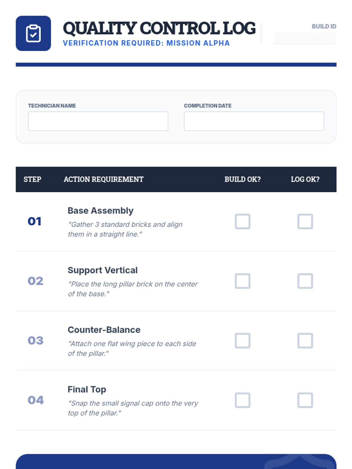 This sequence focuses on vocational and life skills, applying single-step direction following to physical assembly and procedural tasks. Students learn to navigate technical diagrams and standard operating procedures by isolating one action at a time to support working memory.