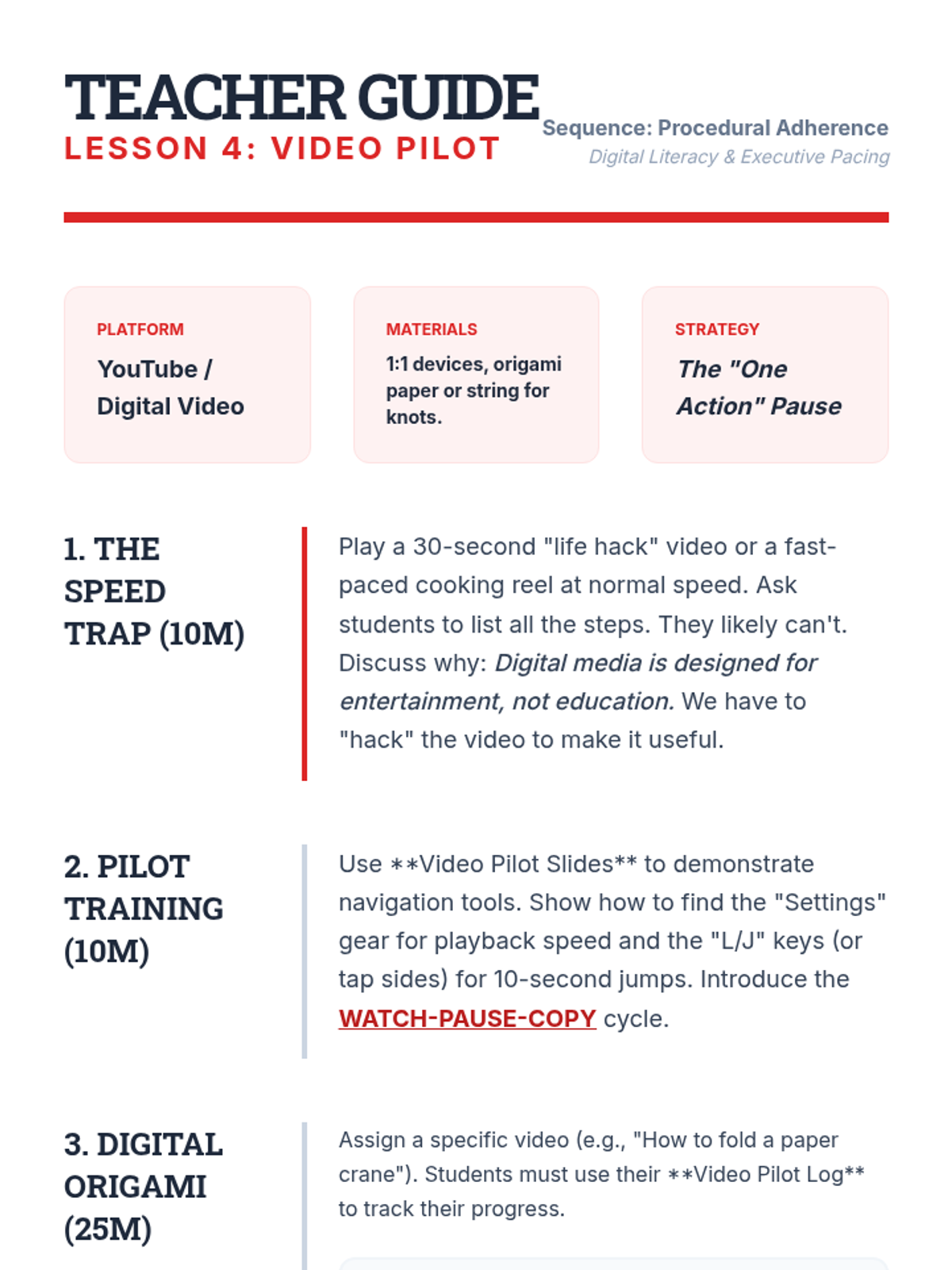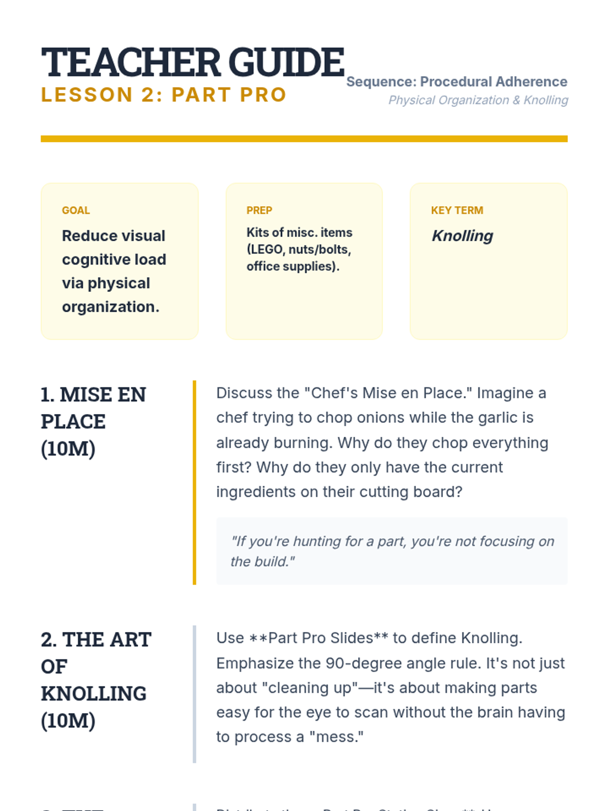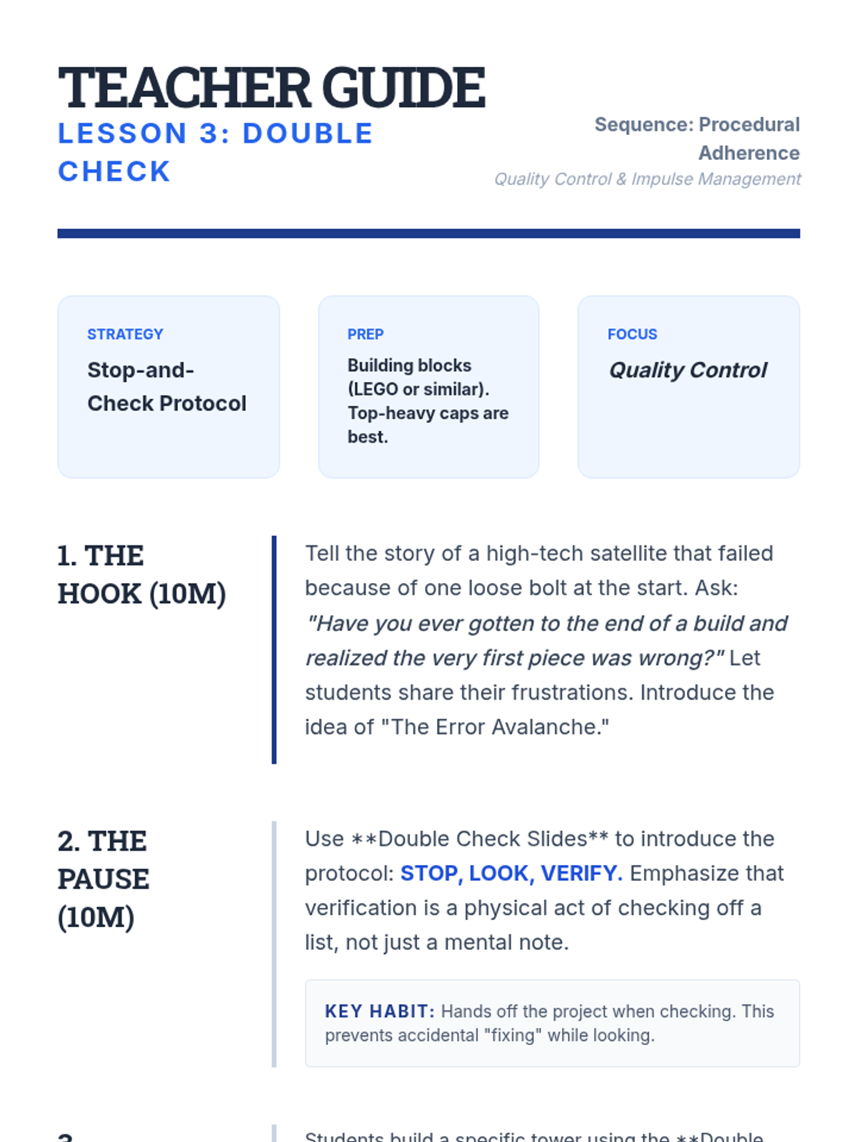This sequence focuses on vocational and life skills, applying single-step direction following to physical assembly and procedural tasks. Students learn to navigate technical diagrams and standard operating procedures by isolating one action at a time to support working memory.