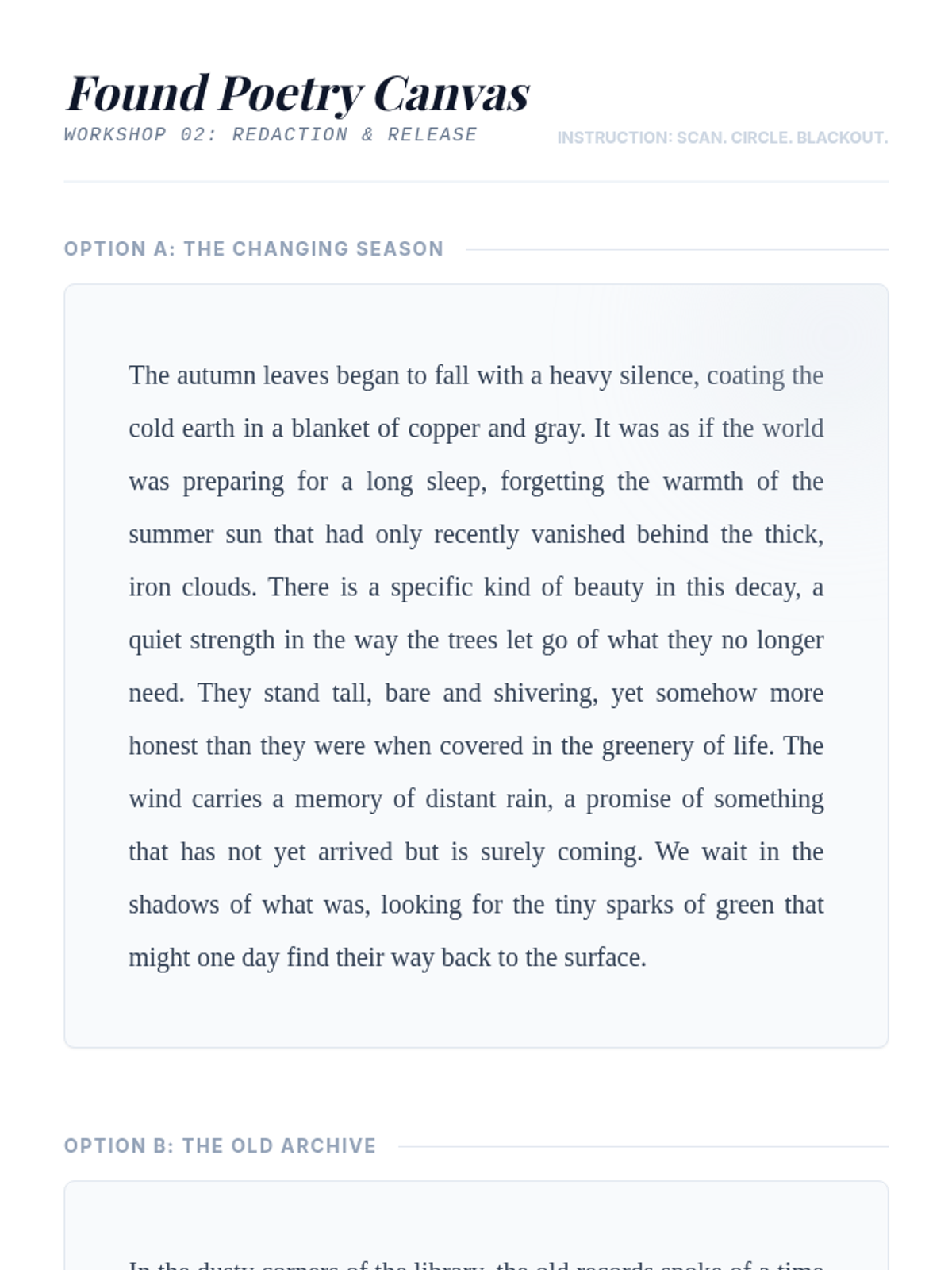 A 10th-grade writing workshop sequence that explores journaling, poetry, and narrative reframing as therapeutic tools for processing grief and loss. Students learn to use creative expression to find meaning and build resilience through structured and unstructured writing exercises.