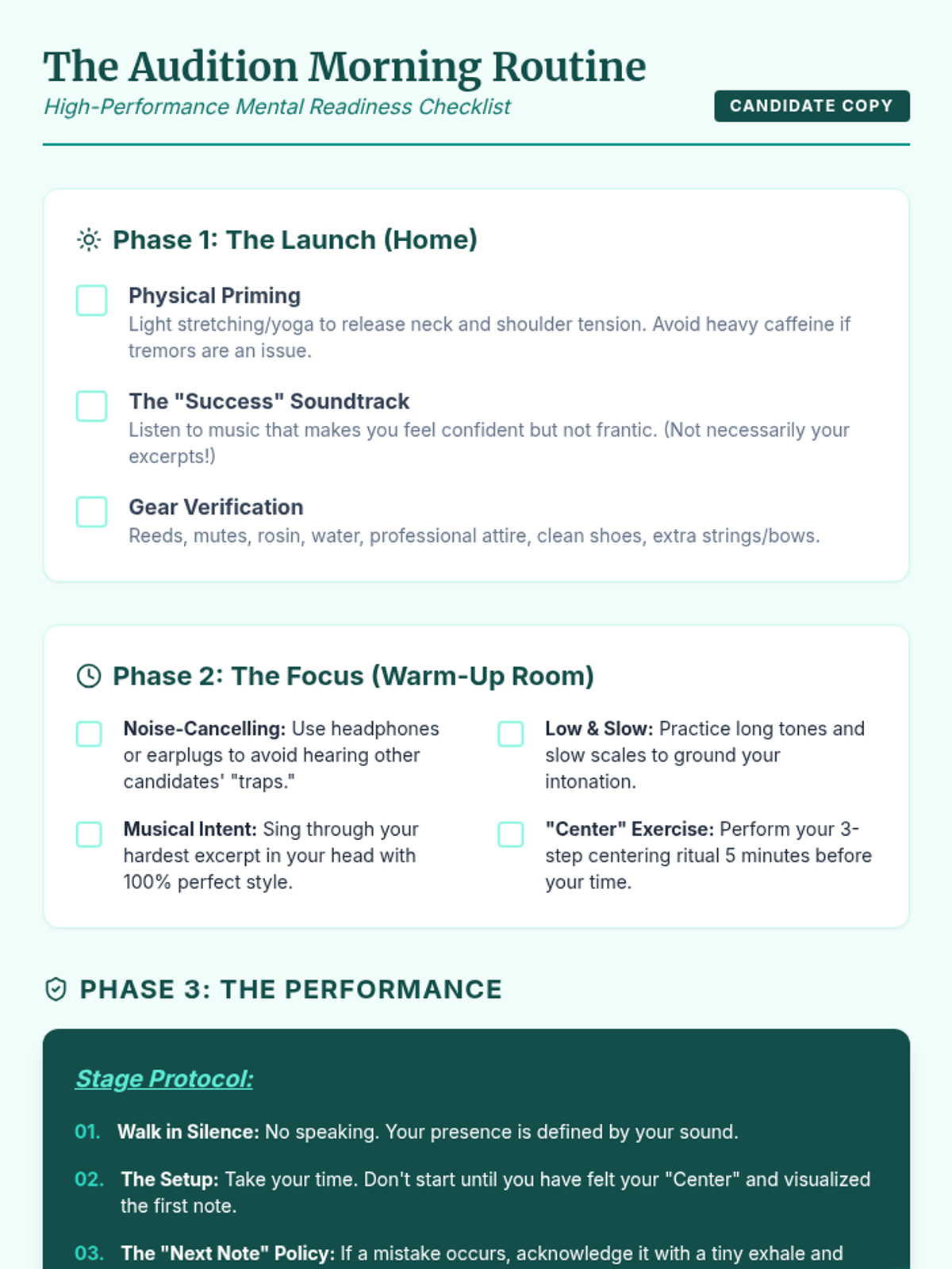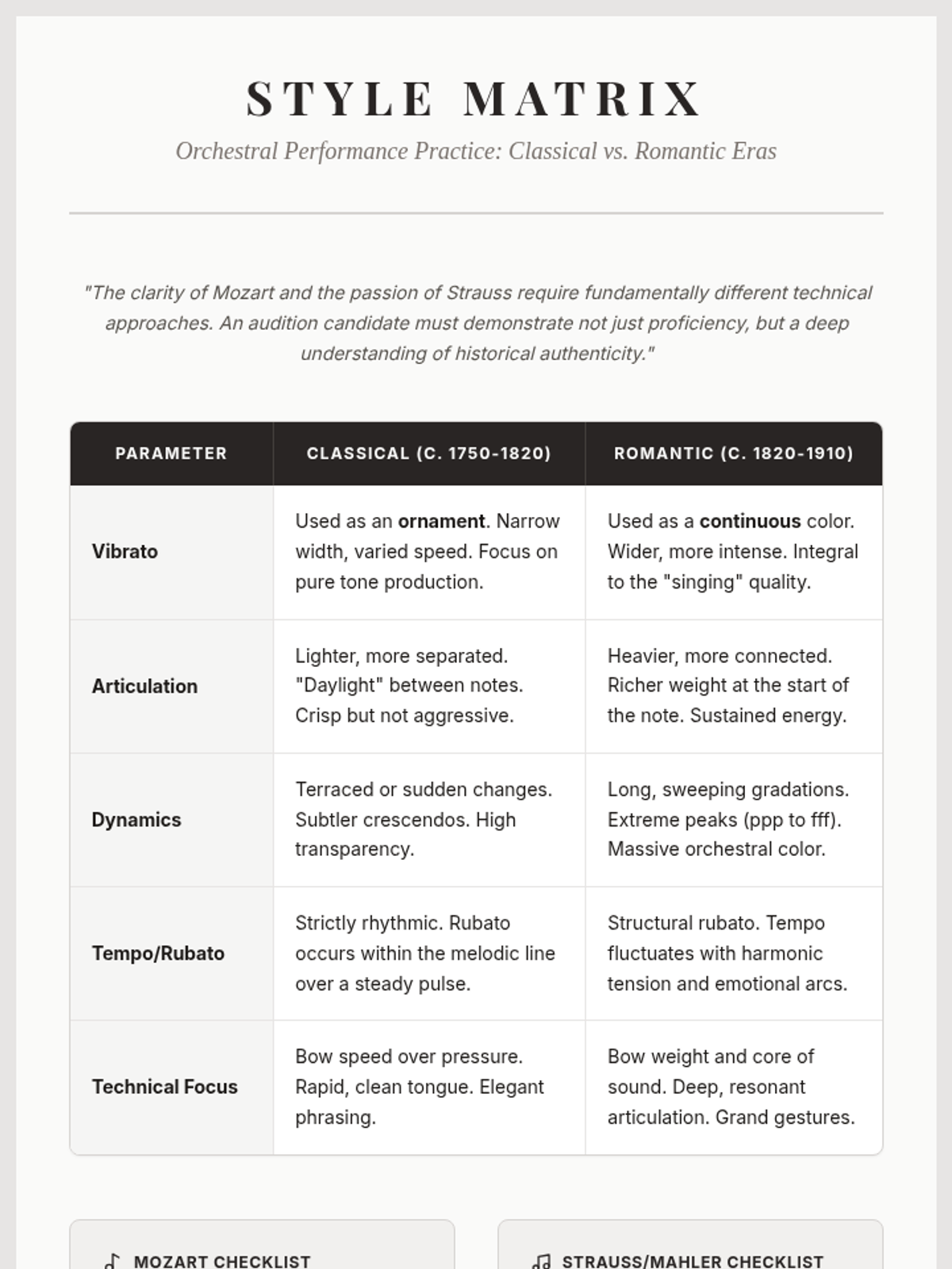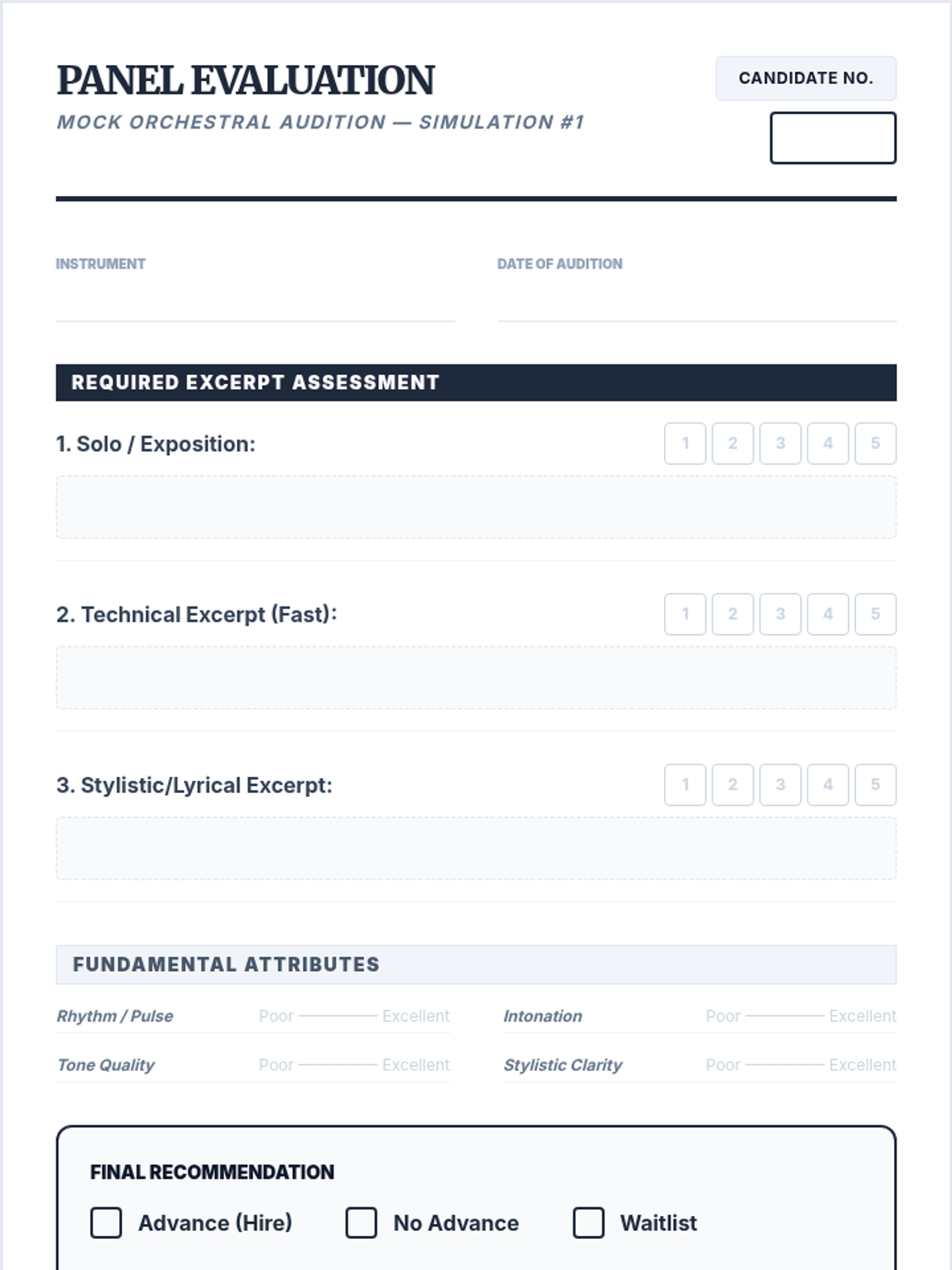 A comprehensive 5-lesson unit designed for undergraduate music majors preparing for professional orchestral auditions. Students will master excerpt analysis, sight-reading strategies, stylistic interpretation, performance psychology, and professional audition etiquette.