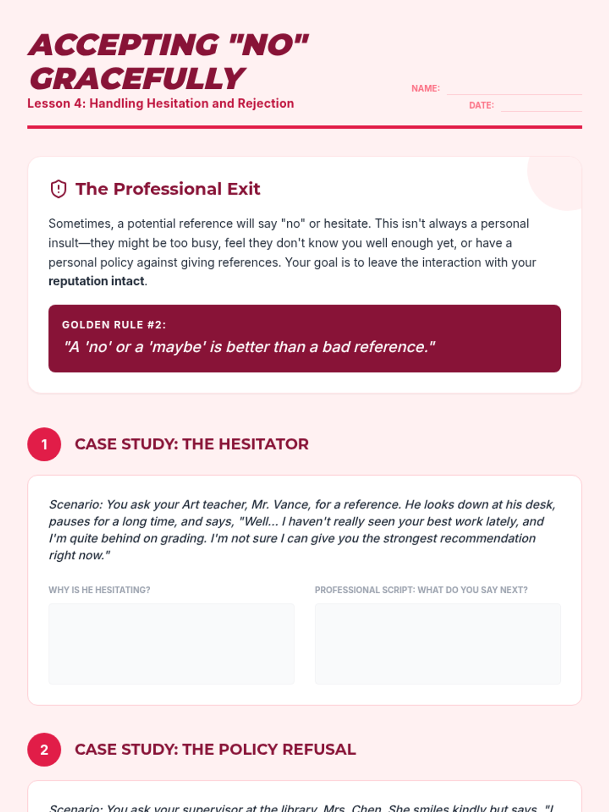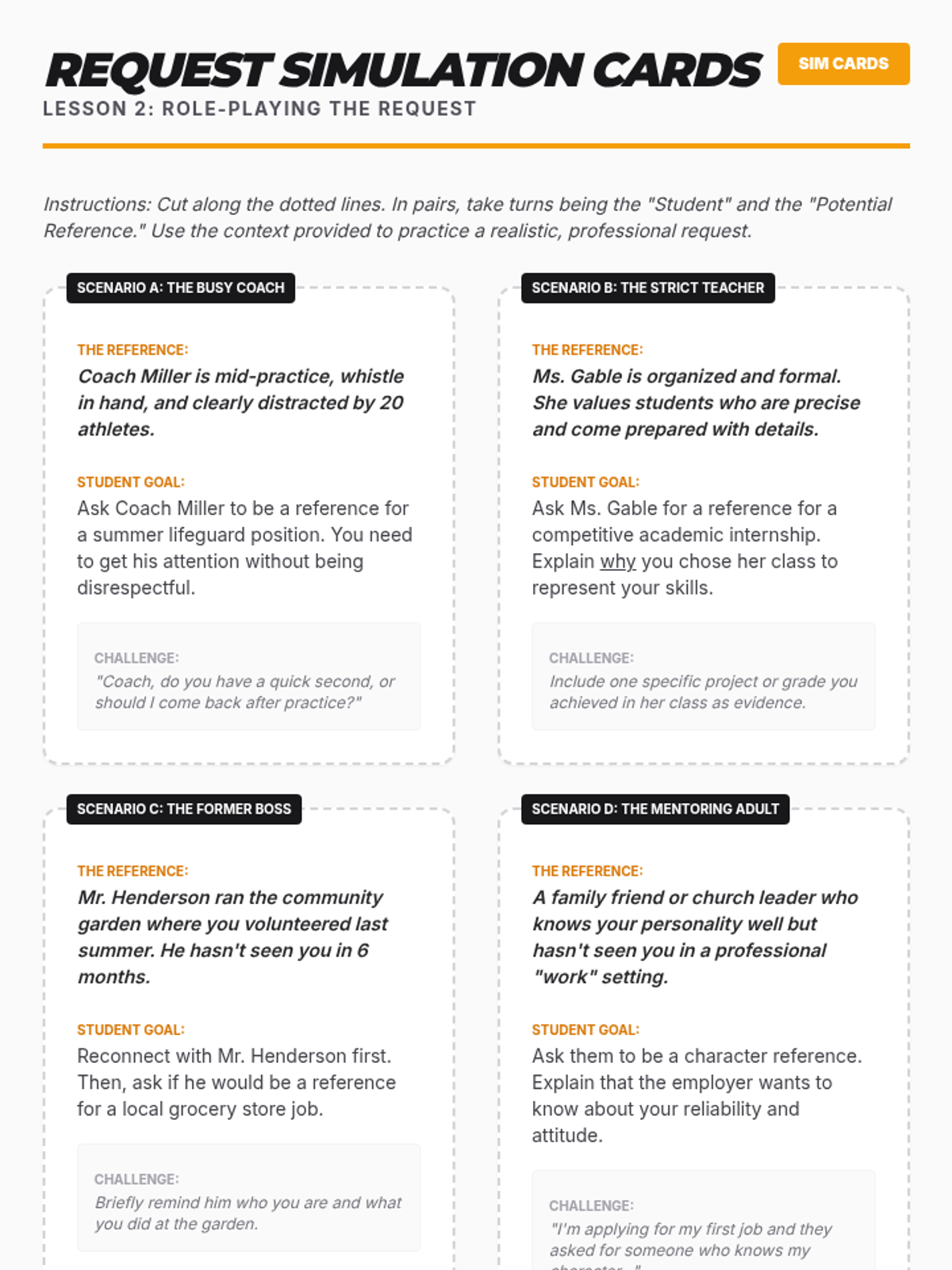 A comprehensive unit for 9th graders focused on the interpersonal communication skills required to secure professional references, addressing anxiety and emphasizing social intelligence.