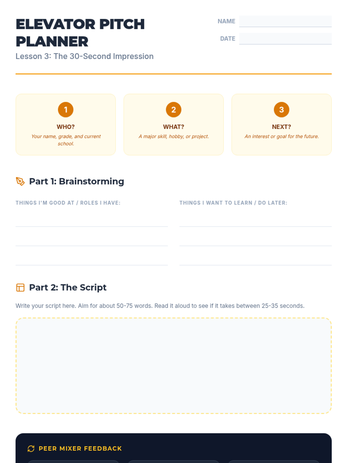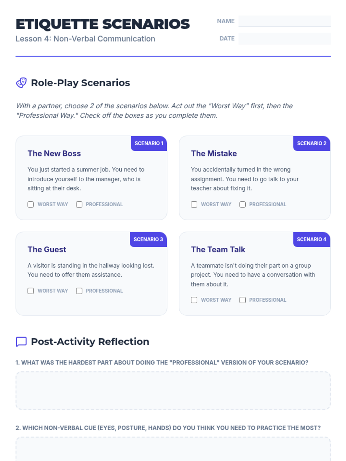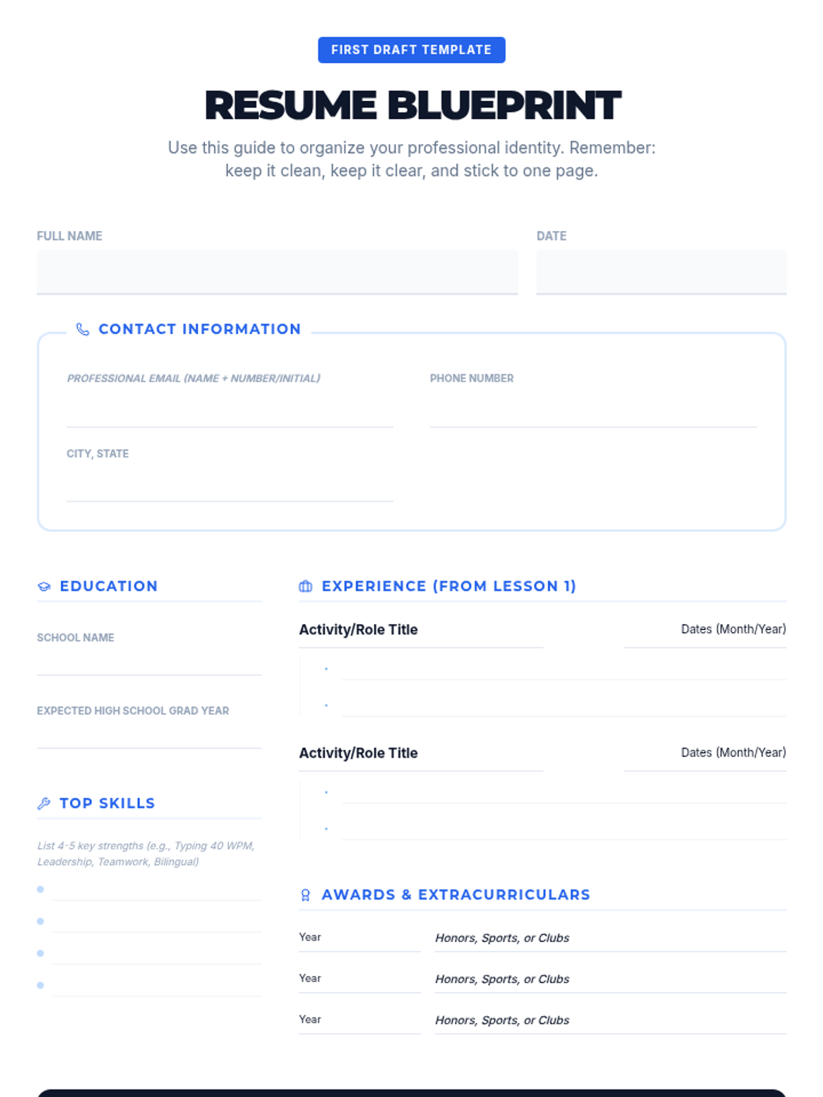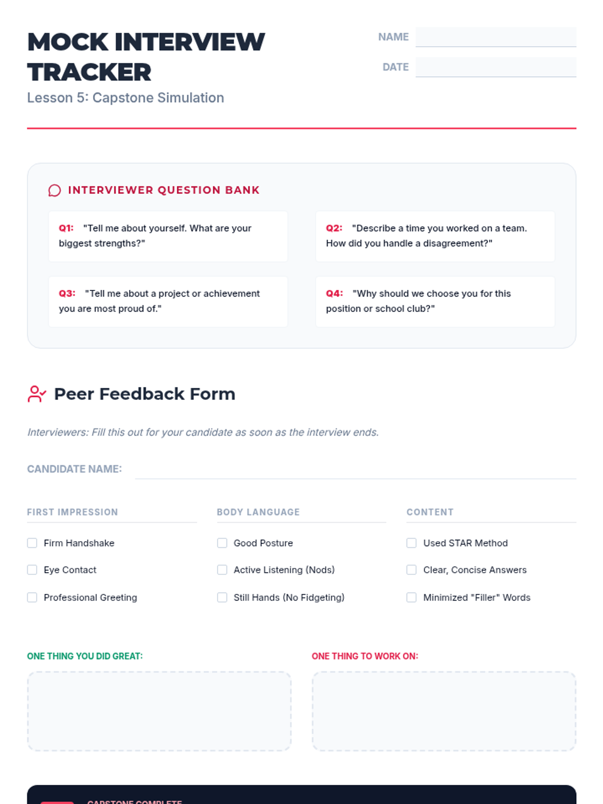 A comprehensive 5-lesson unit for 7th graders focusing on professional communication, resume writing, and interview skills, helping students translate life experiences into professional assets.