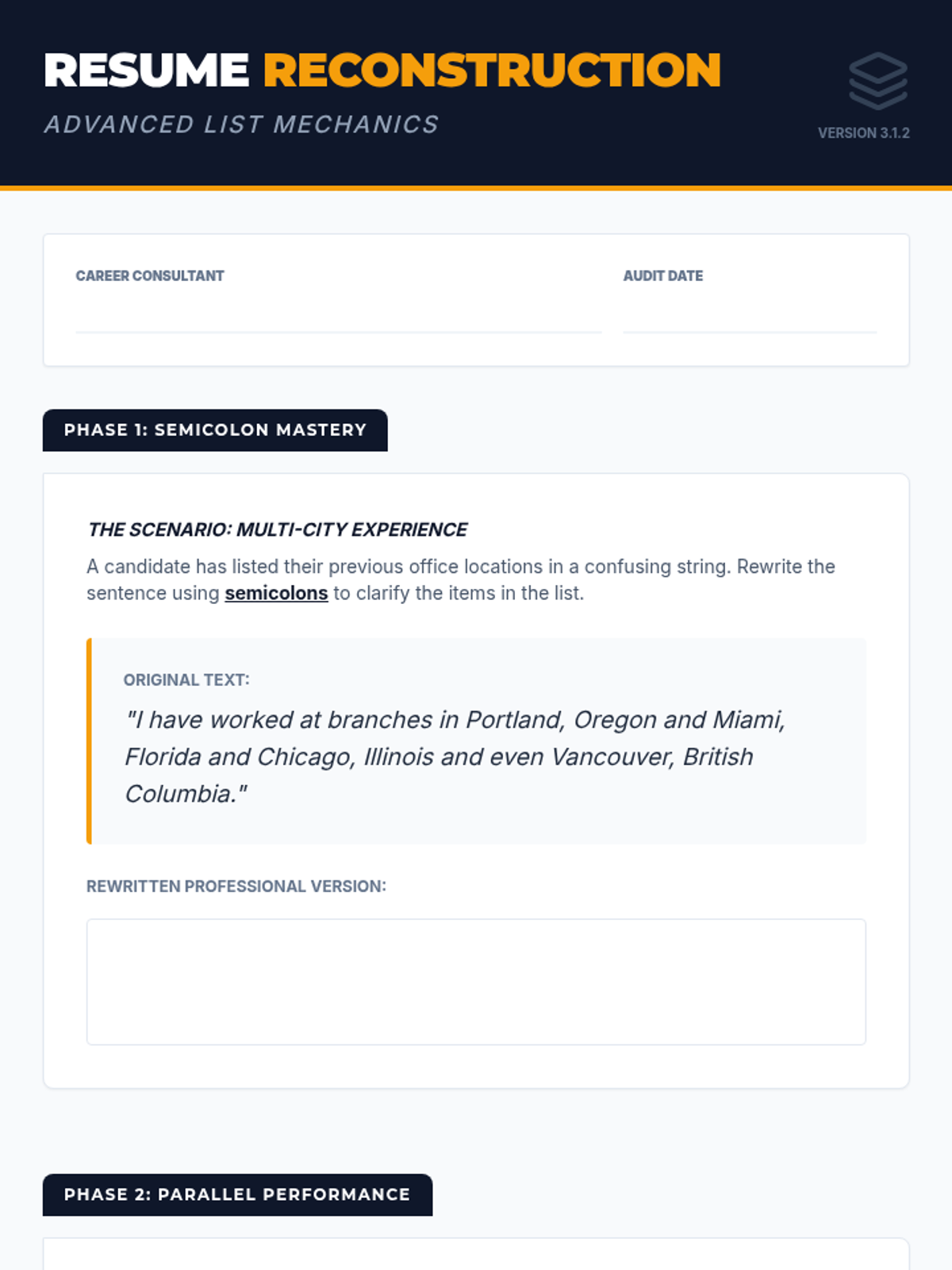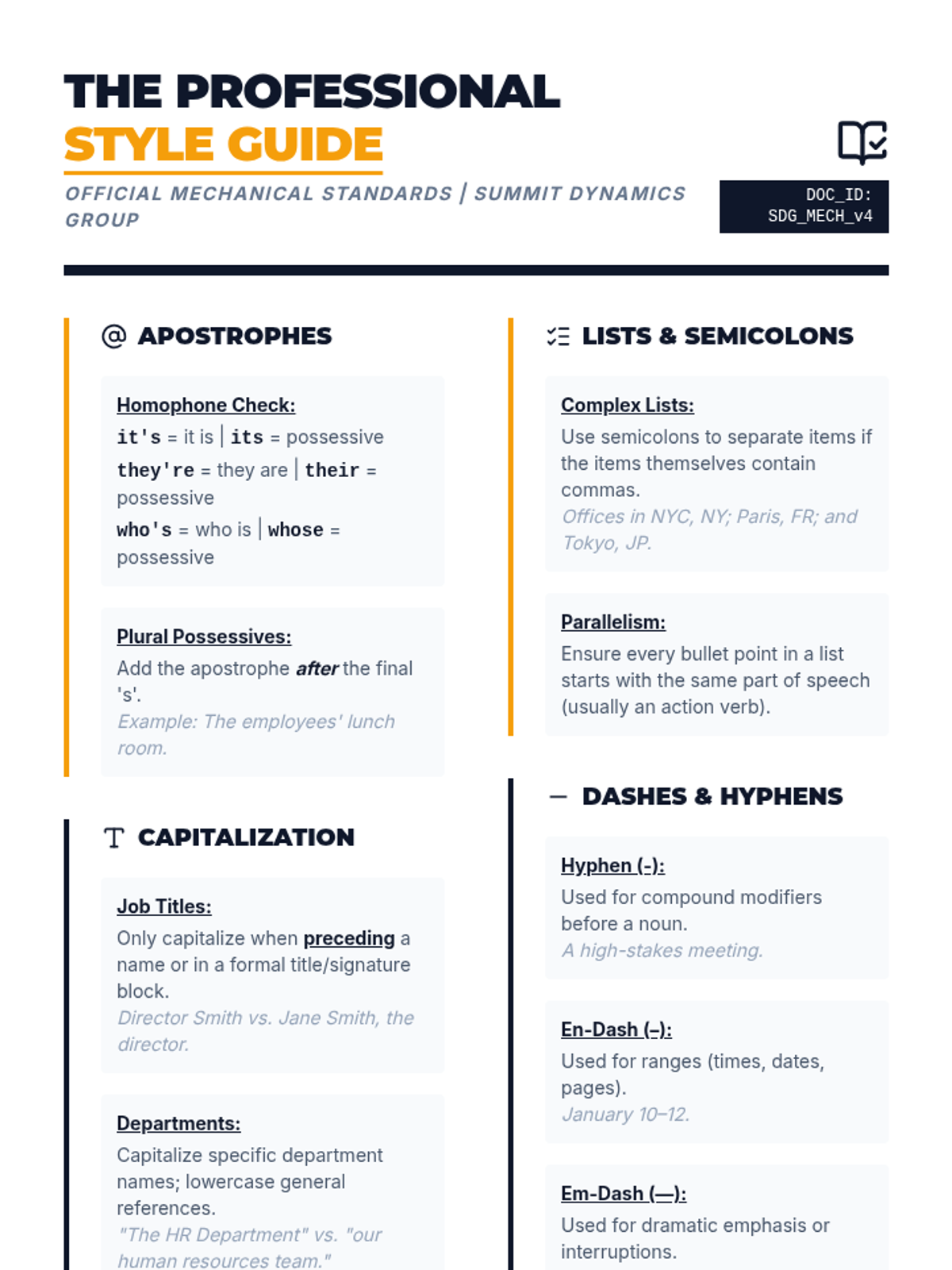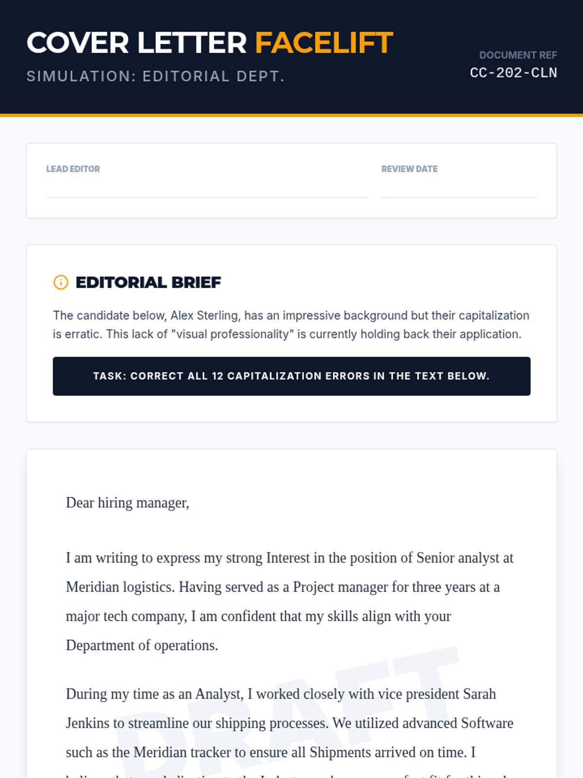 A workplace-simulated grammar sequence for 12th graders, focusing on how mechanical precision in punctuation and capitalization impacts professional credibility. Students act as editors and hiring managers to master apostrophes, capitalization, complex lists, and dashes.