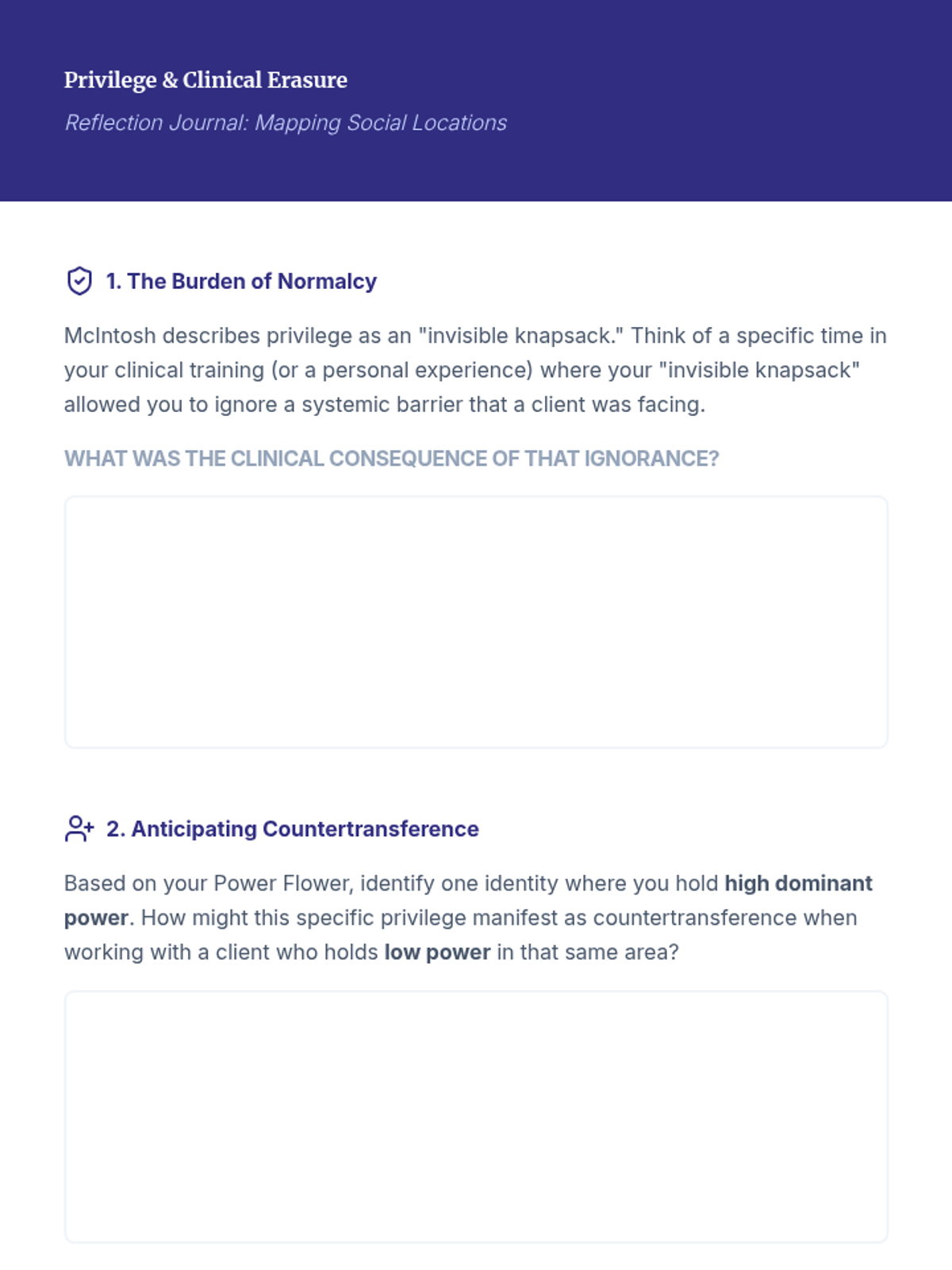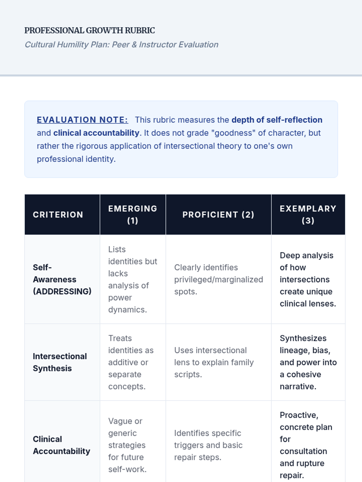 A 5-lesson sequence for graduate counseling students to explore intersectionality, social location, and family scripts to build cultural humility and professional identity. Students move from theoretical critique to personal excavation and clinical application.