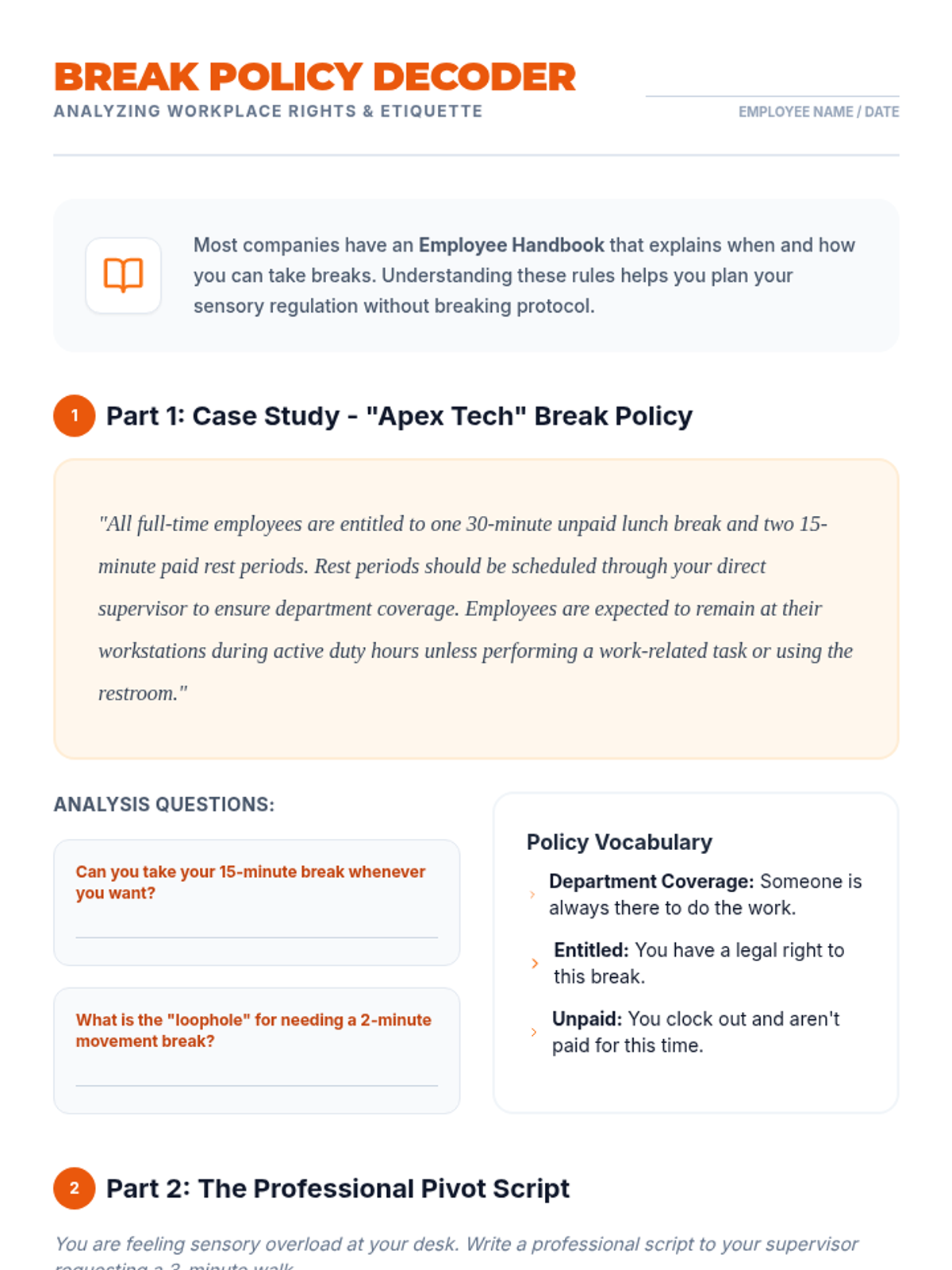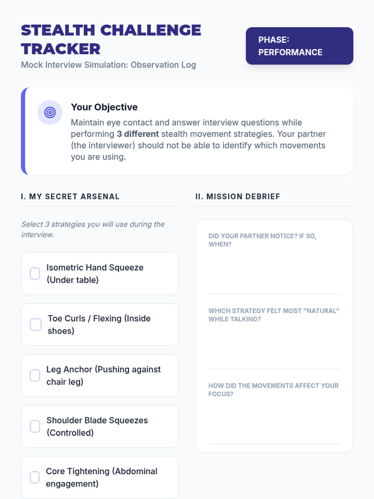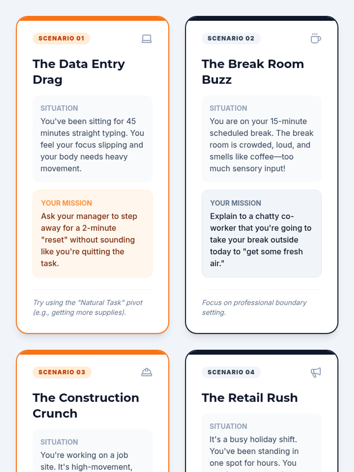 This sequence prepares 10th-grade students to adapt sensory regulation and movement strategies for professional, academic, and social settings beyond the classroom. Students learn to analyze environment-specific norms, practice discreet 'stealth' techniques, and plan for their post-secondary transition into careers and higher education.