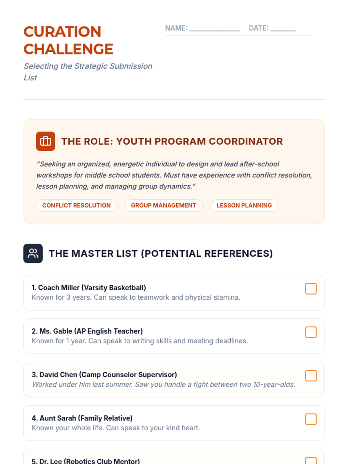 A comprehensive project-based sequence for 11th graders focusing on the technical and ethical aspects of professional reference documentation. Students will develop a master reference list, learn industry-standard formatting, and practice tailoring their lists for specific job applications.