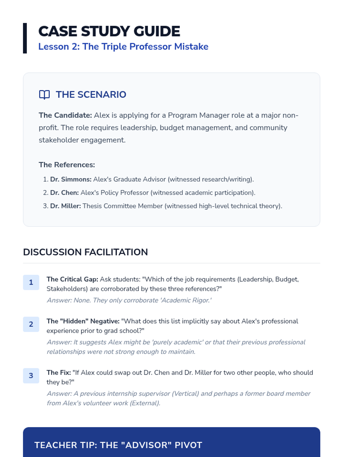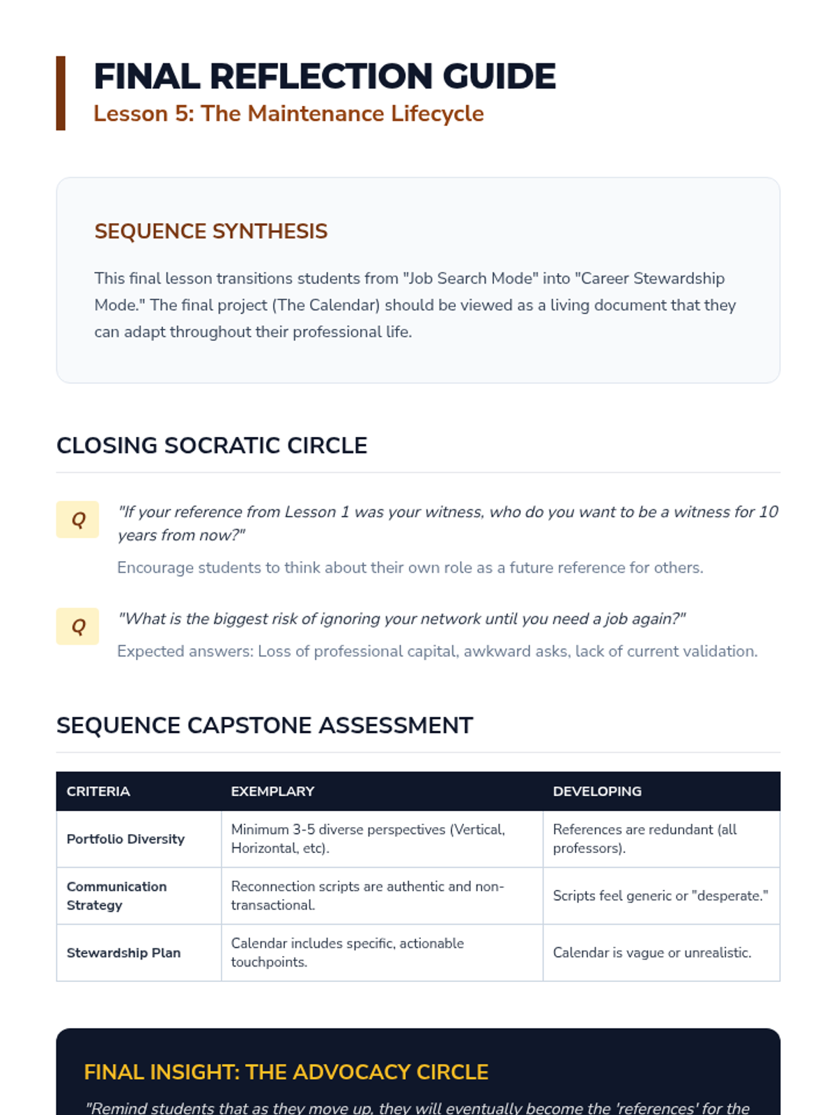 A comprehensive sequence for graduate students focusing on the strategic identification, selection, and long-term cultivation of professional references to validate career competencies and professional narratives.
