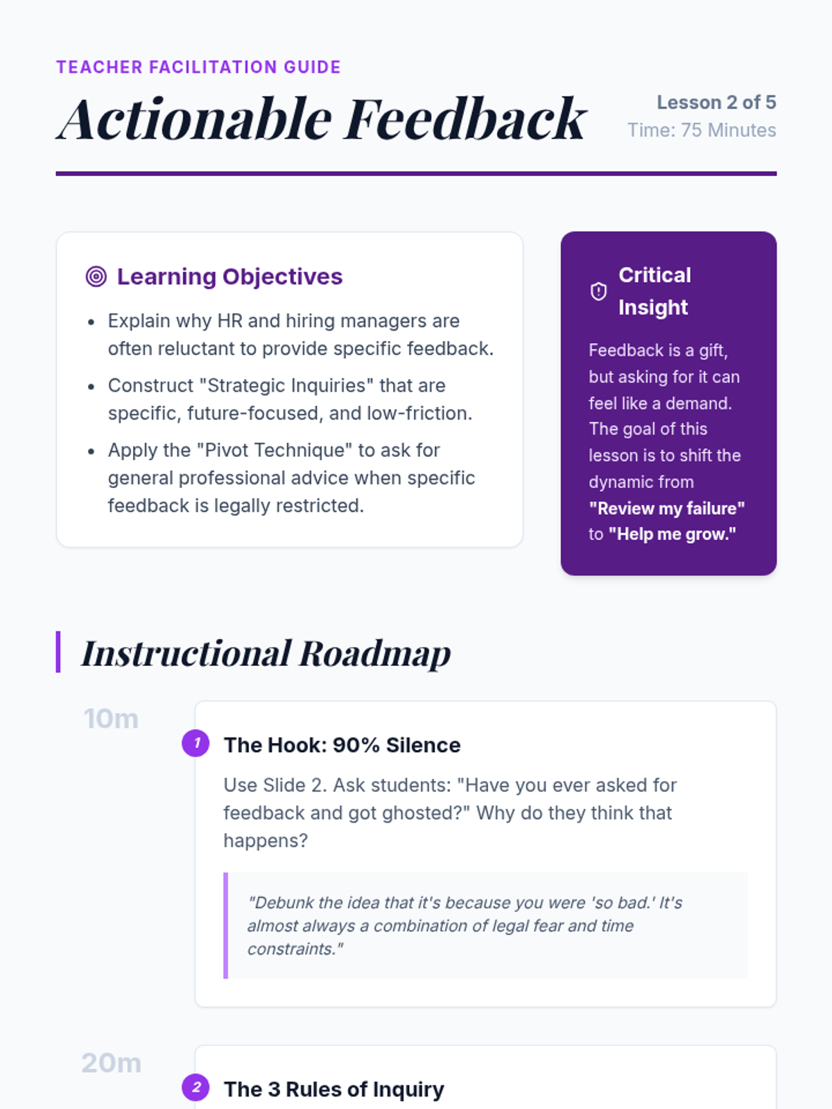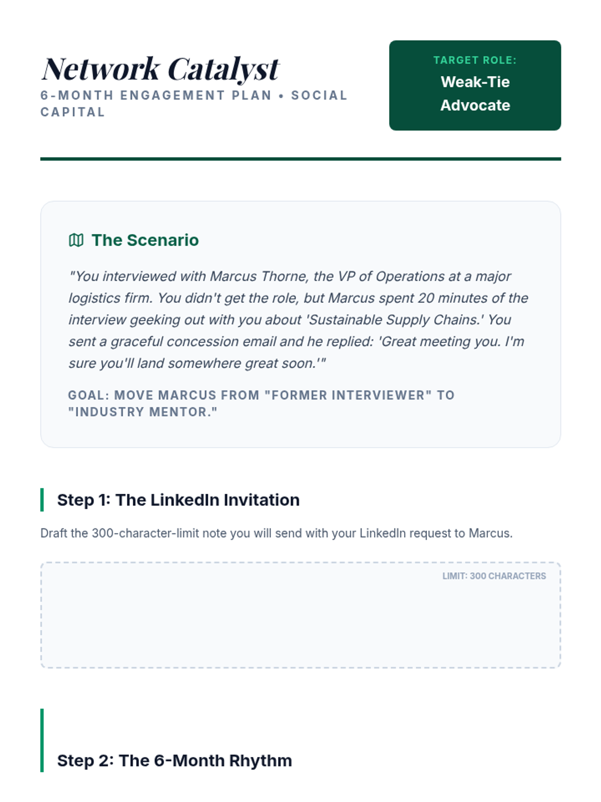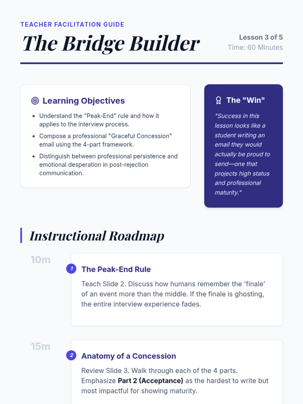 A comprehensive sequence for graduate students focused on converting interview setbacks into networking opportunities and long-term career growth through professional resilience, feedback solicitation, and relationship management.