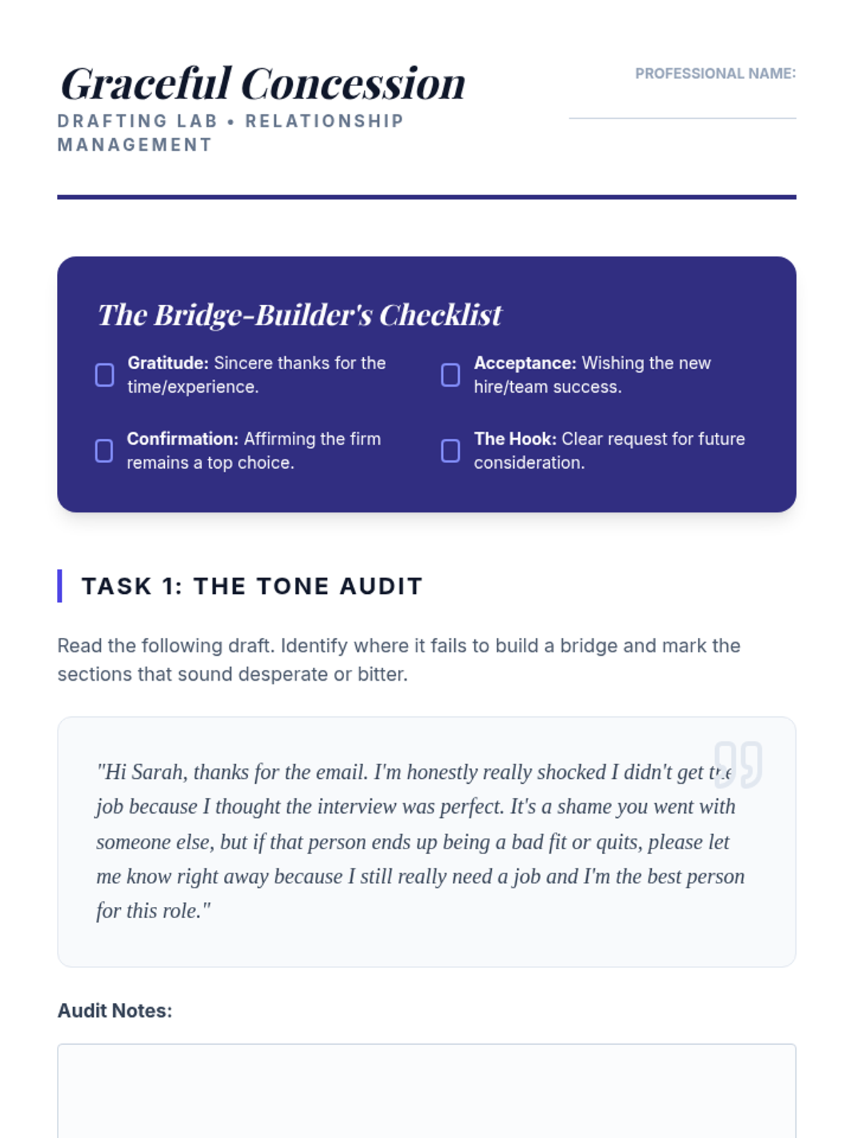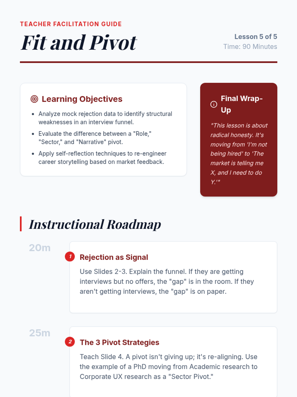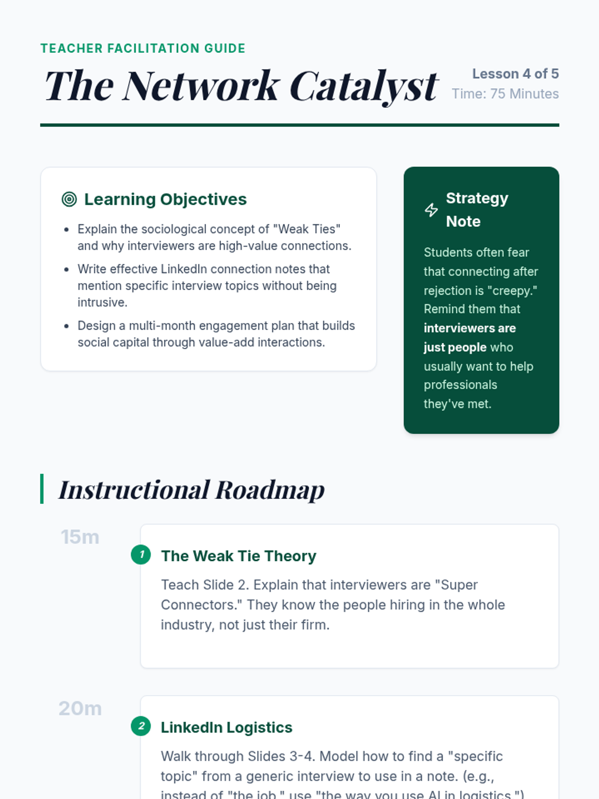 A comprehensive sequence for graduate students focused on converting interview setbacks into networking opportunities and long-term career growth through professional resilience, feedback solicitation, and relationship management.