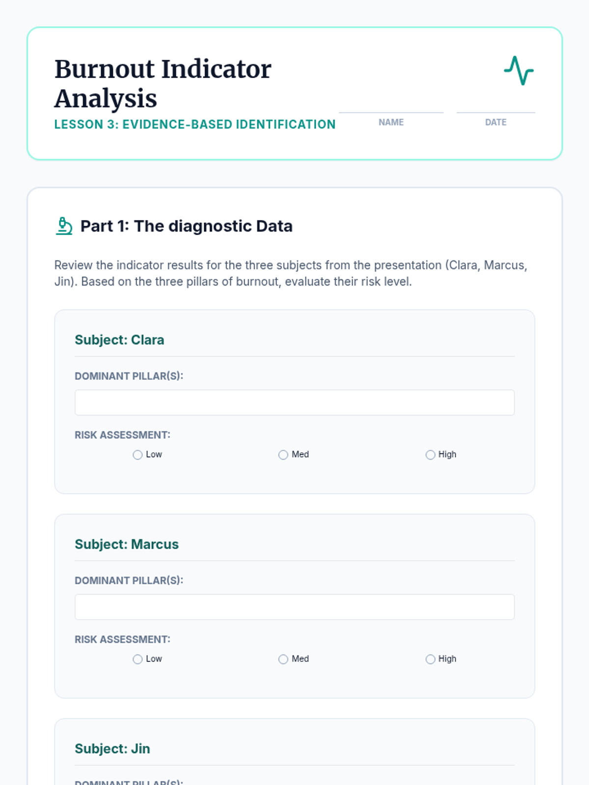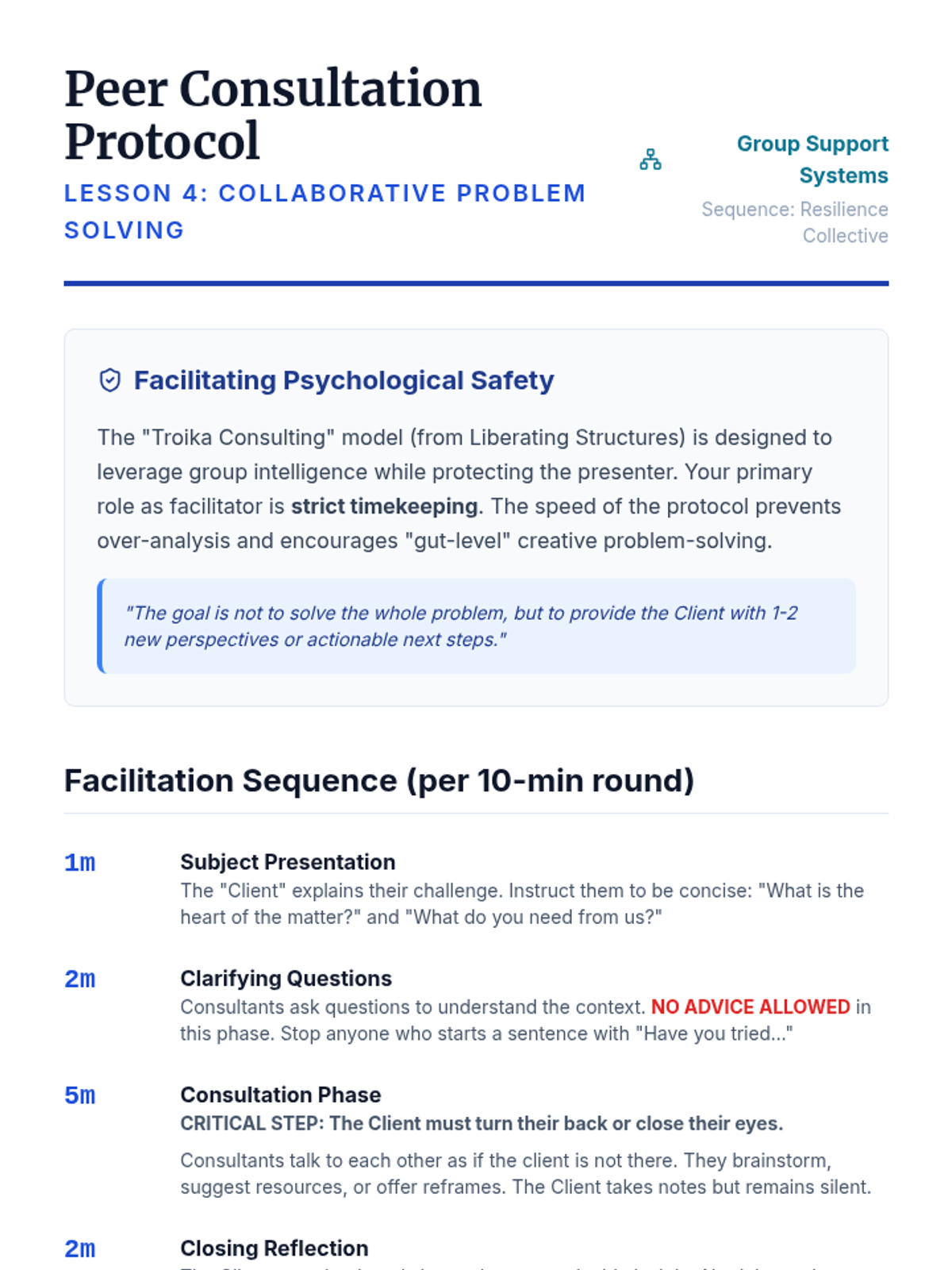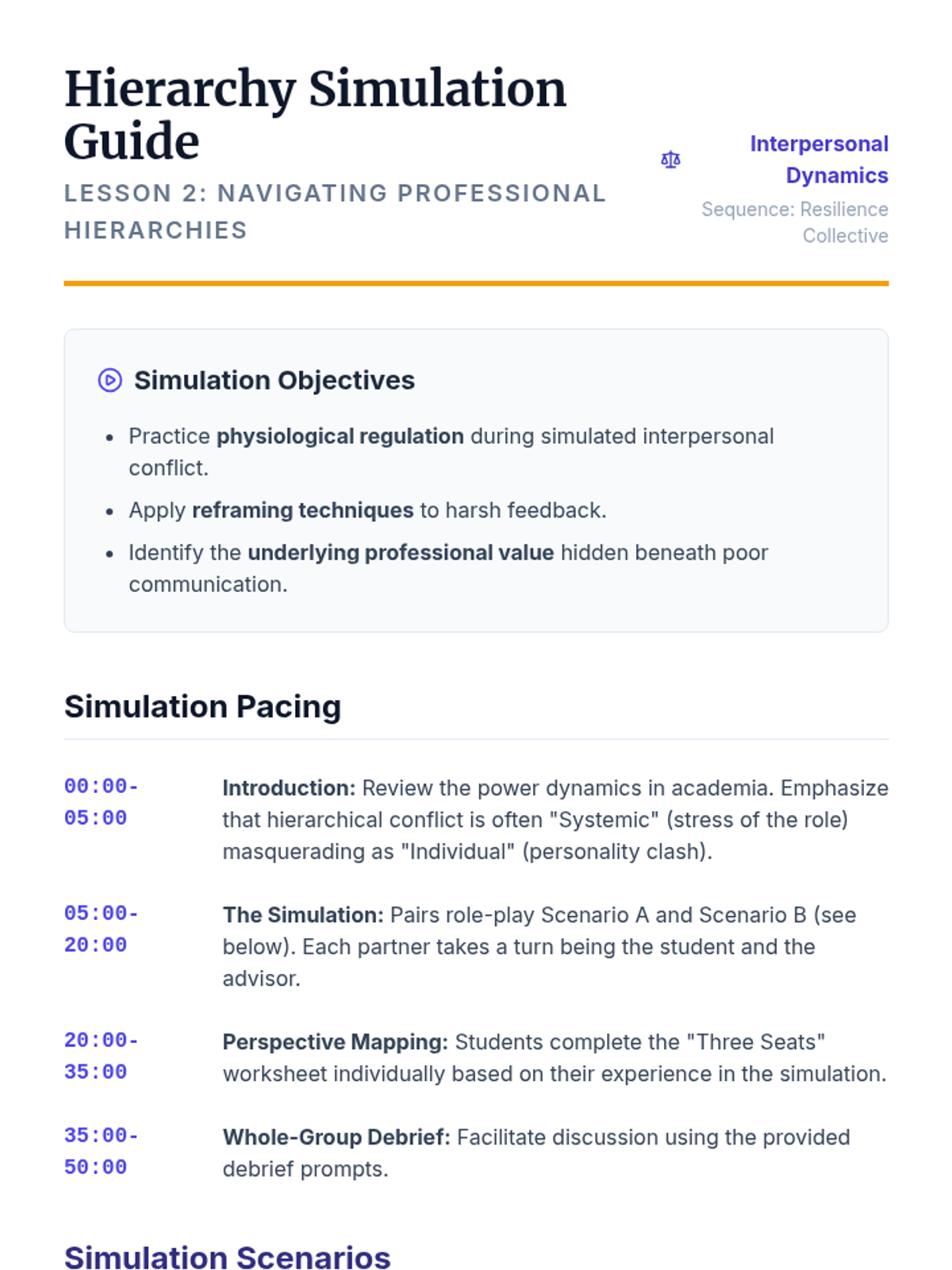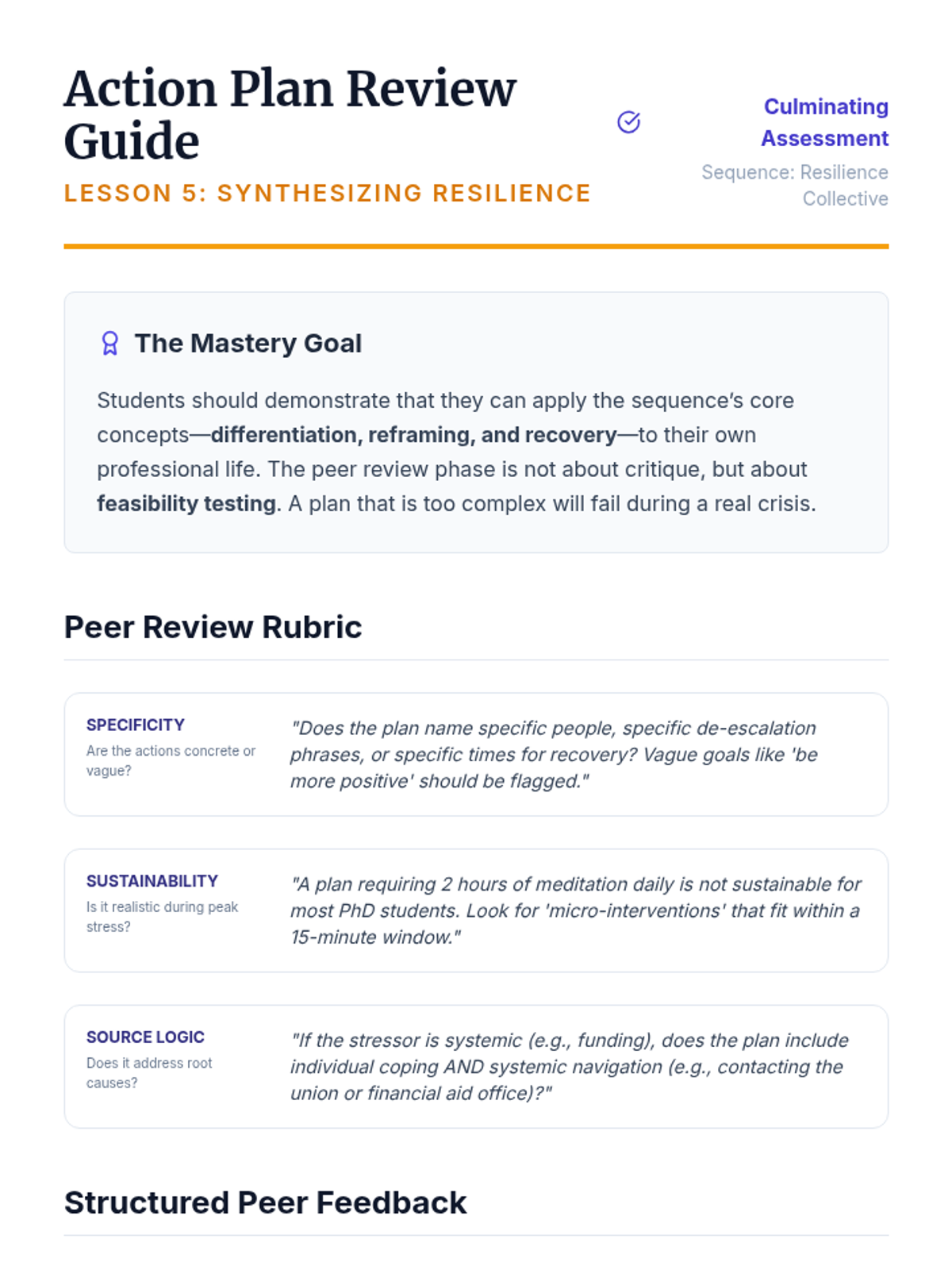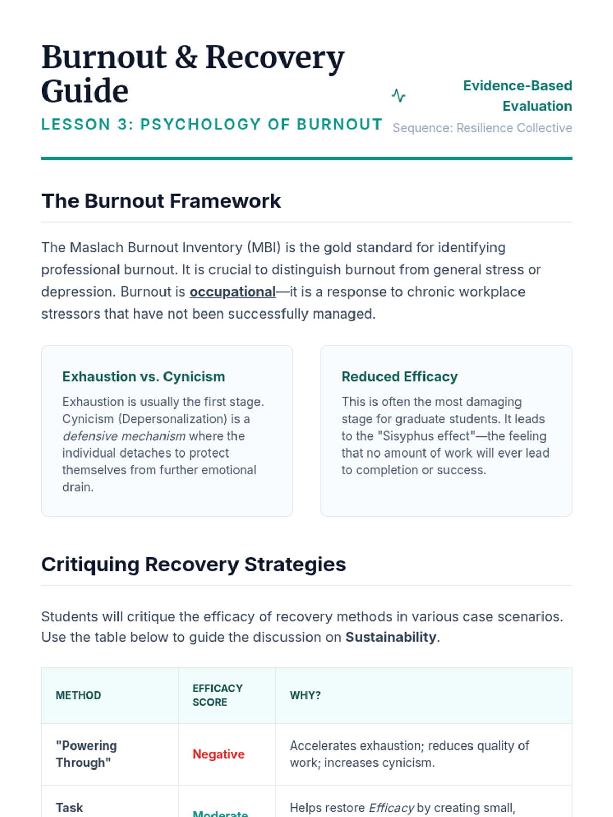 A case-study-driven sequence for graduate students to analyze professional stressors and develop evidence-based resilience strategies through collective insight.