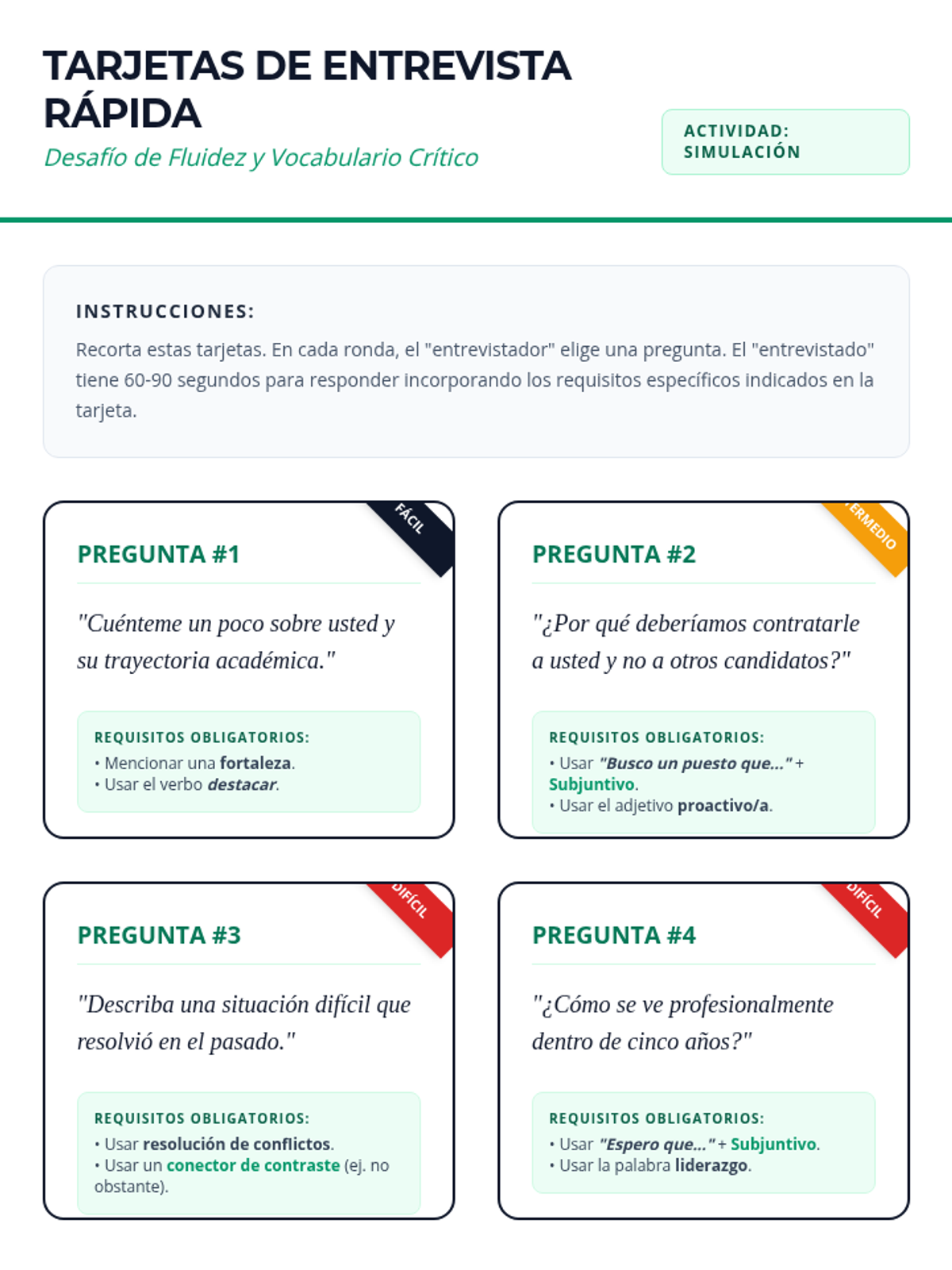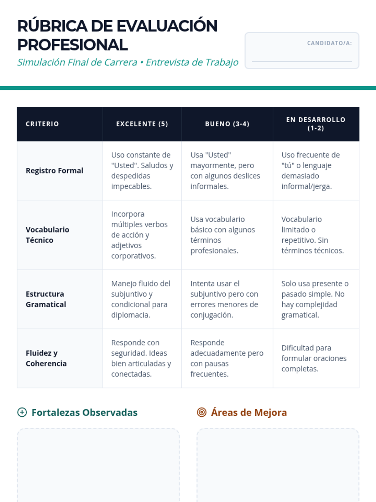 A career-focused Spanish language sequence for 12th graders, focusing on professional vocabulary, formal register, and navigating workplace interactions in Spanish-speaking contexts.