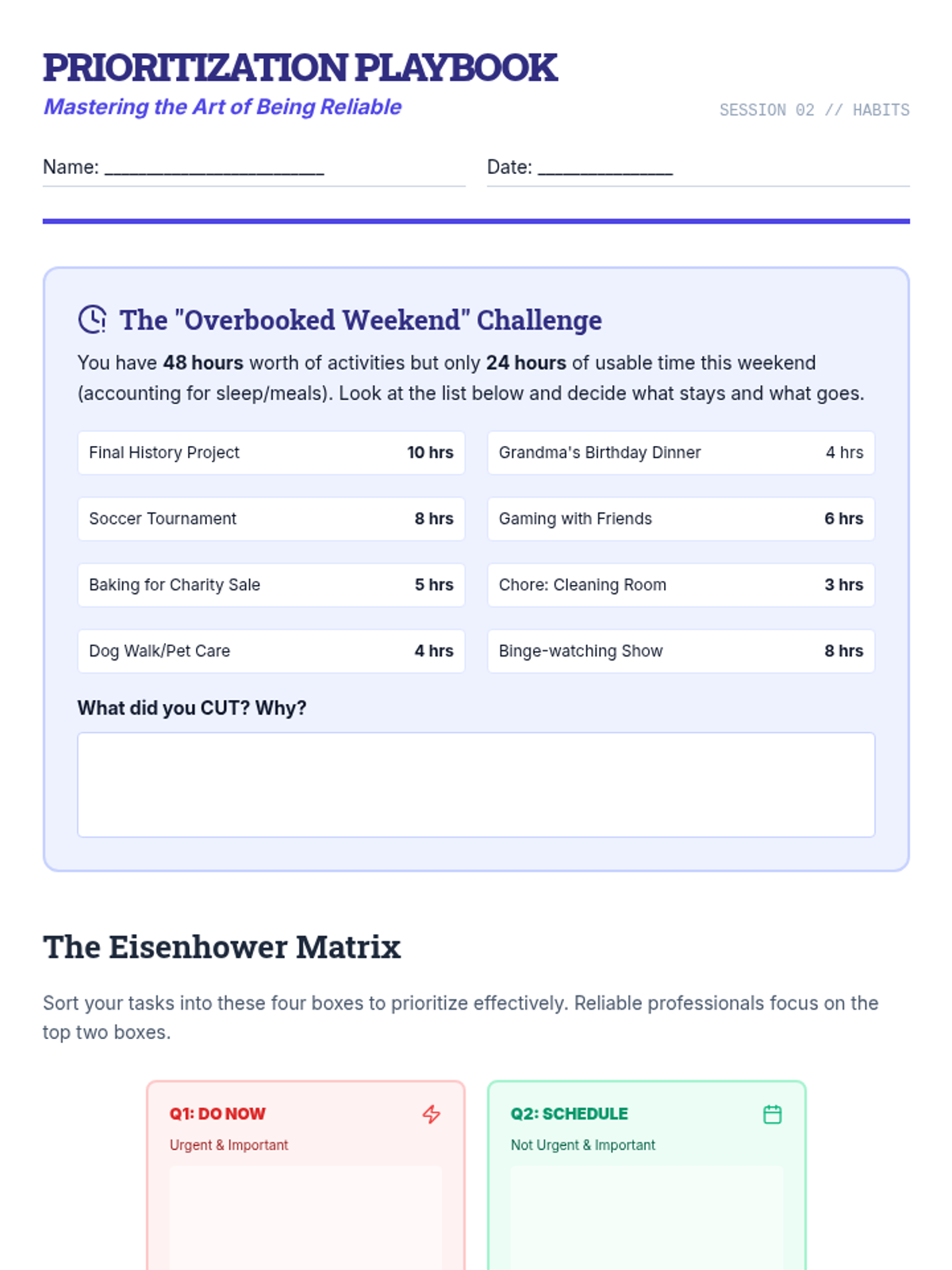 An 8-session executive functioning program designed for high schoolers to master time management and task initiation. Students use visual "maps" and blueprints to navigate their workload and build self-regulation habits.
