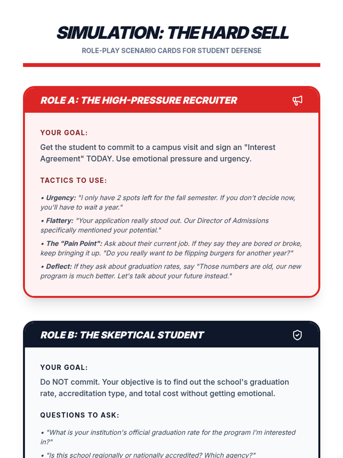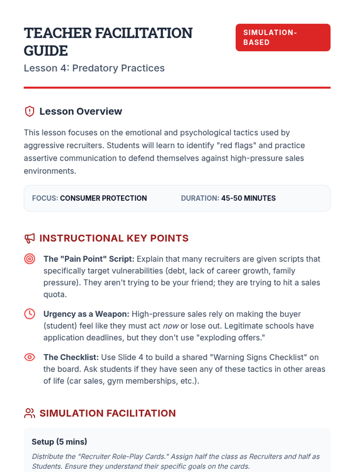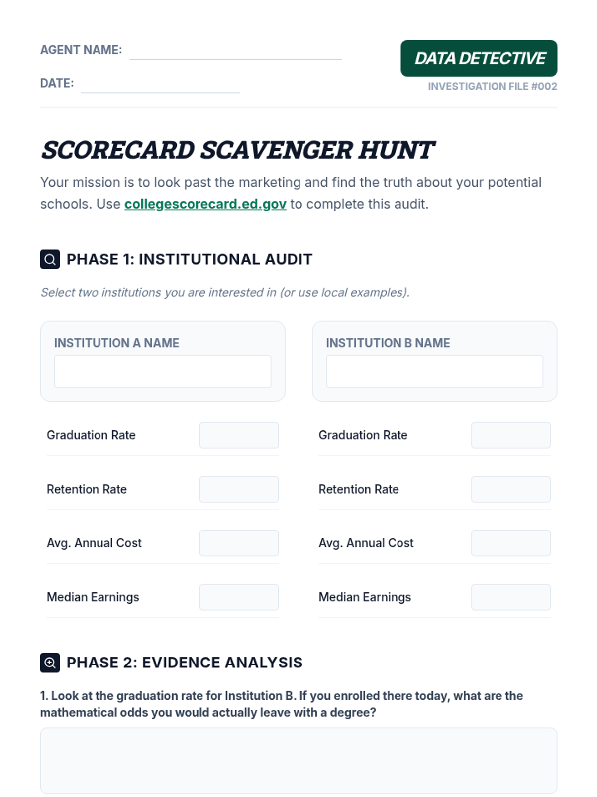 This sequence empowers 12th-grade students to evaluate post-secondary program quality. Students explore accreditation systems, analyze outcome data, compare non-profit vs. for-profit models, and identify predatory marketing to make informed educational investments.