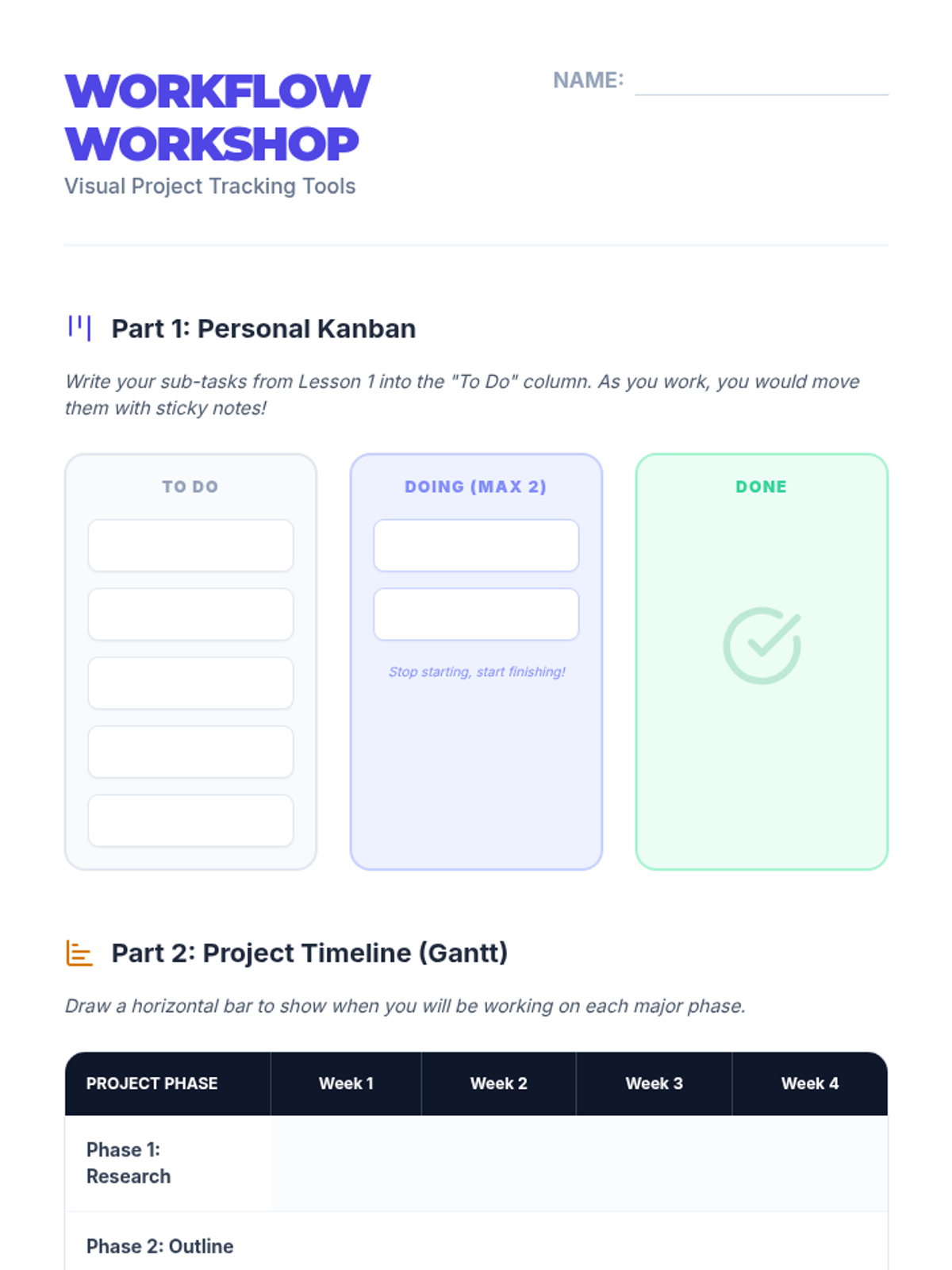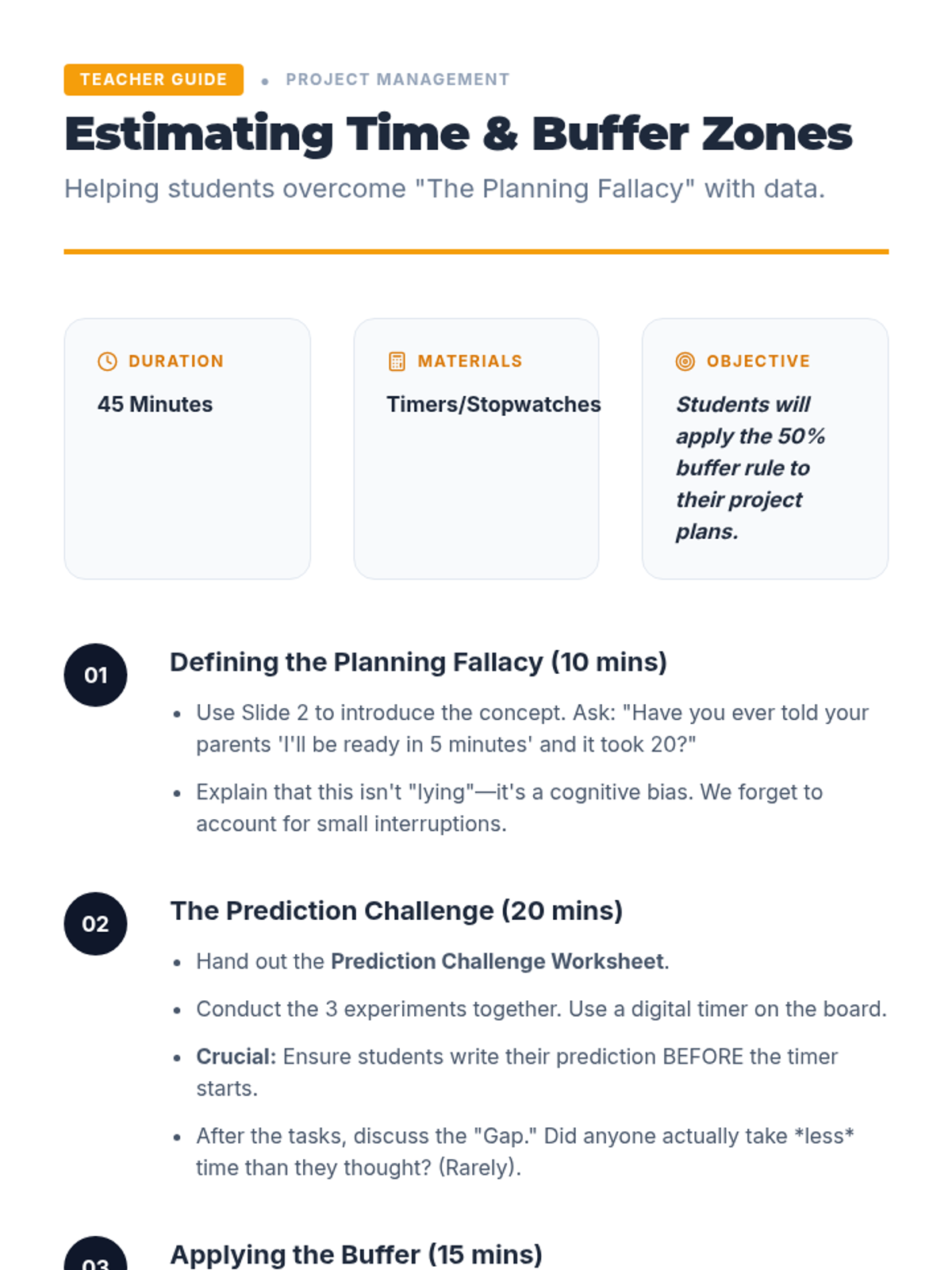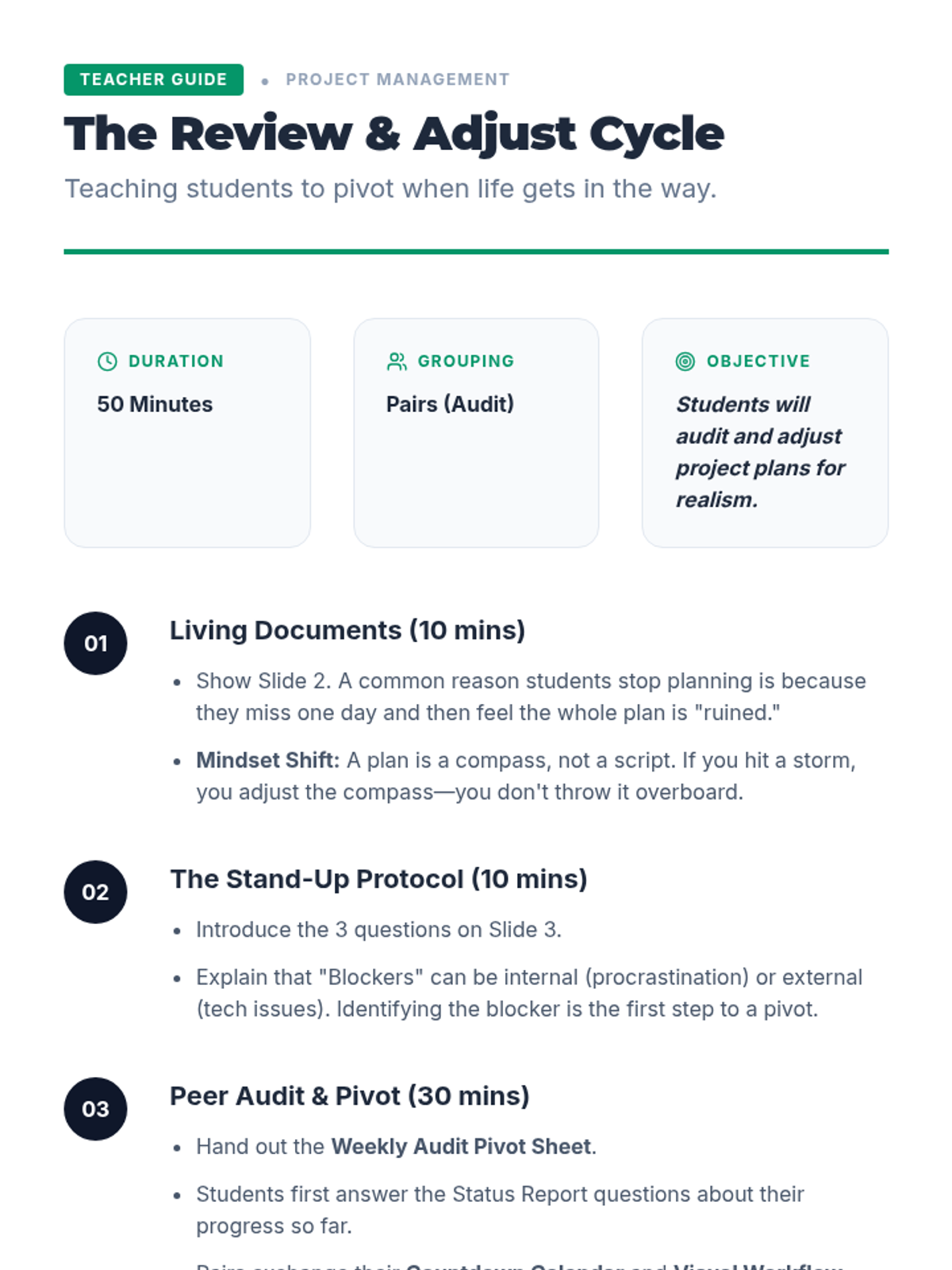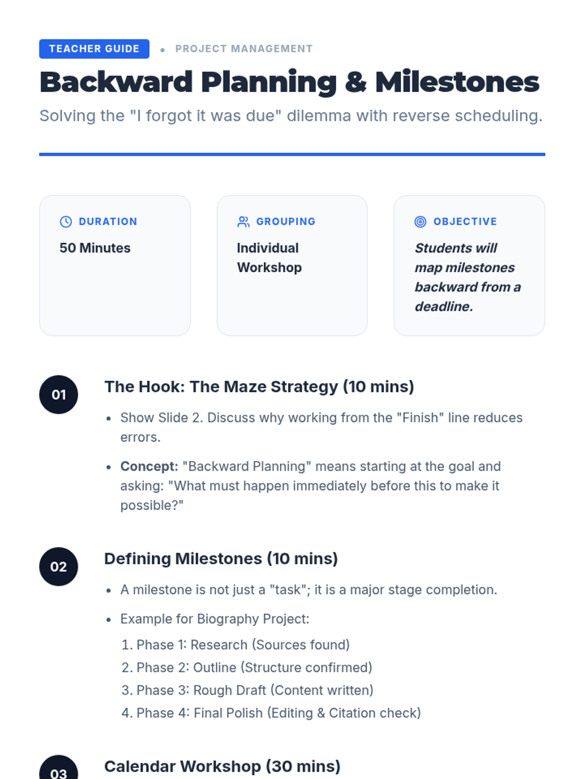 A 5-lesson sequence for 10th-grade students focusing on project management skills like backward design, task deconstruction, and time estimation to balance multiple commitments.