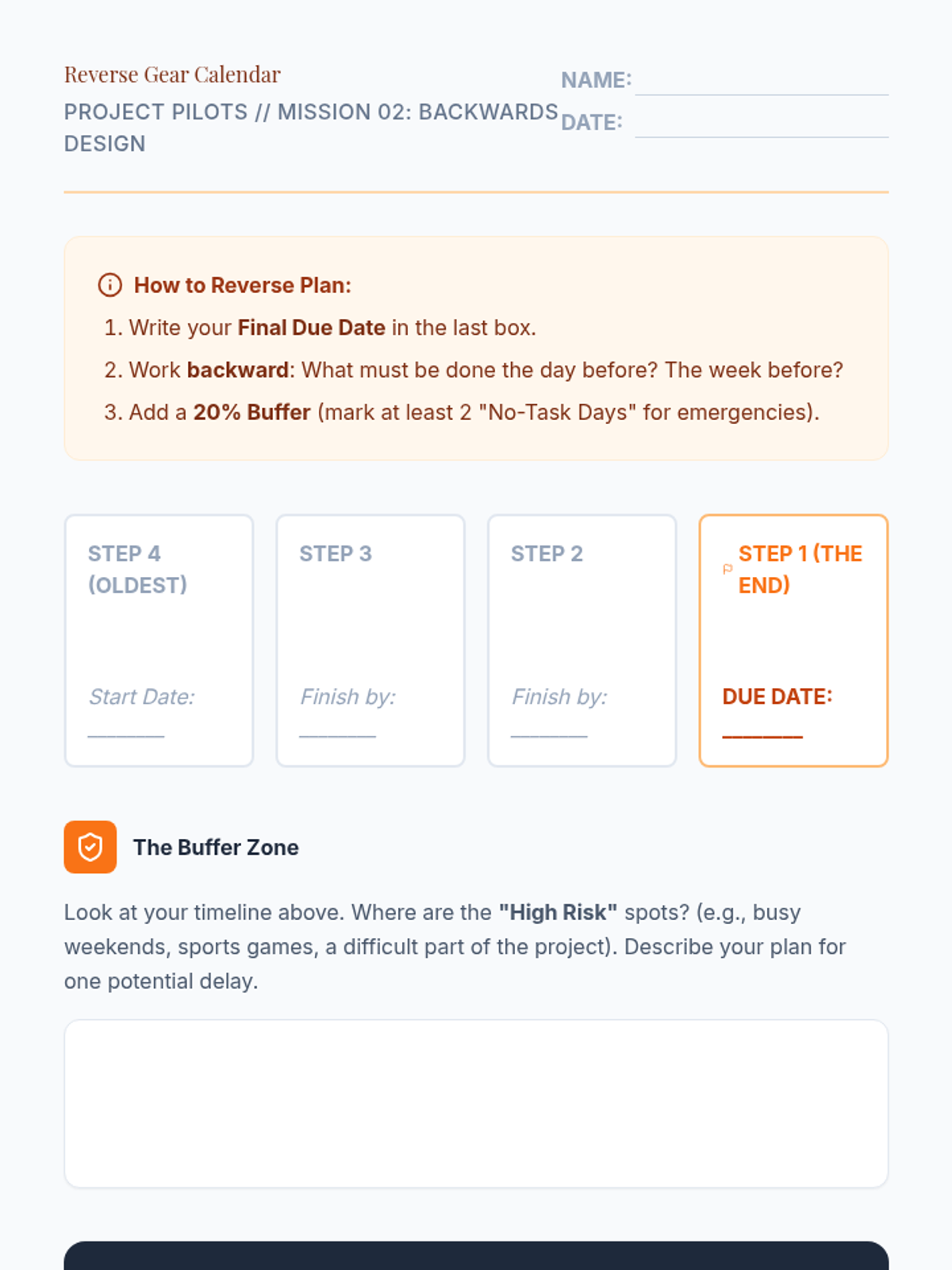 A specialized sequence for 9th-grade students with executive function challenges, focusing on deconstructing long-term projects, backward planning, overcoming procrastination, and building accountability structures.