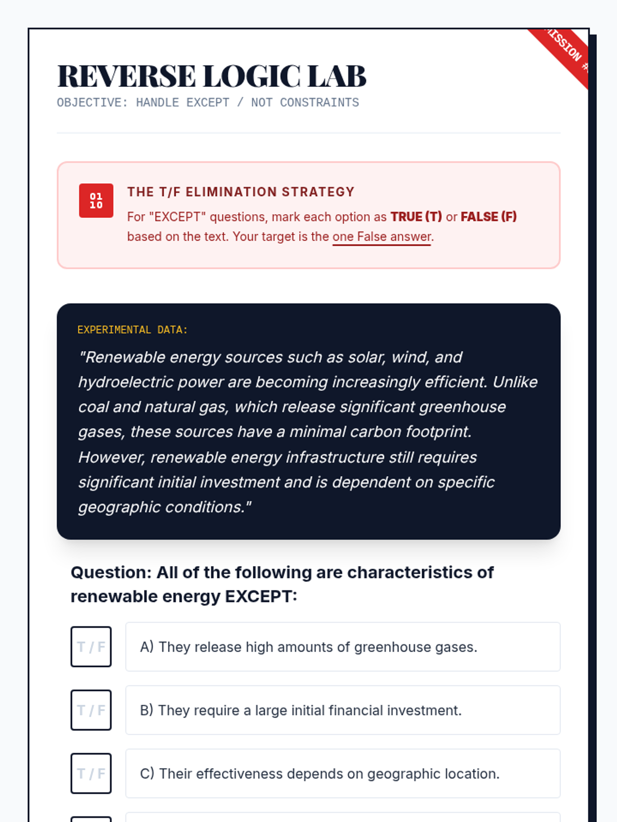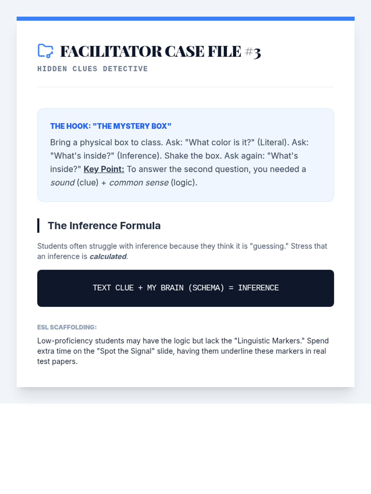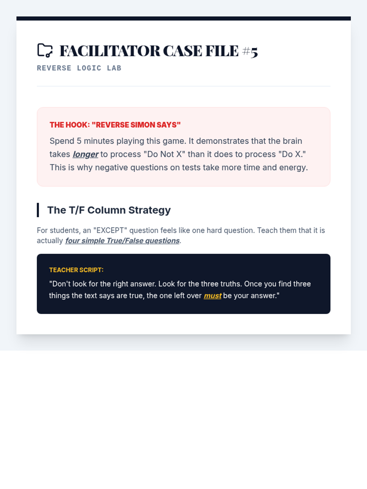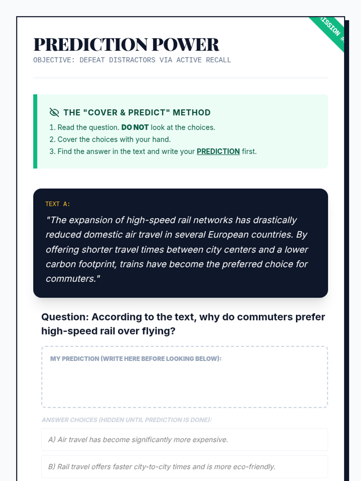 A comprehensive 5-lesson unit for 11th-grade ESL students focused on deconstructing complex academic test prompts. Students transition from identifying instructional verbs to parsing syntax, distinguishing inference from literal recall, and mastering advanced strategies like prediction and handling negative constraints.