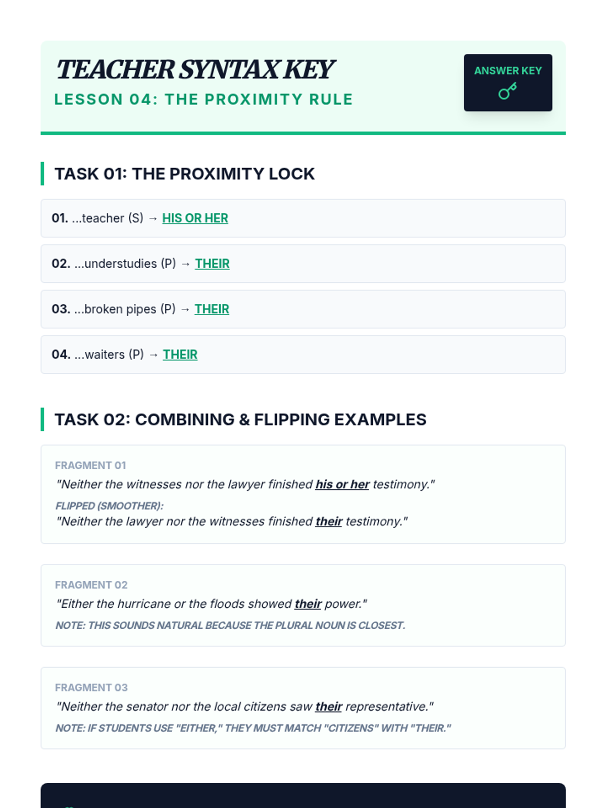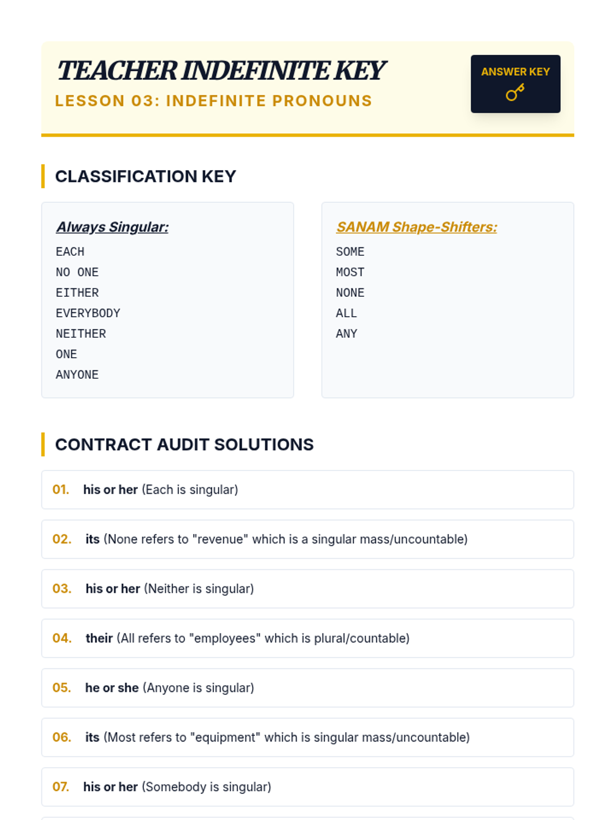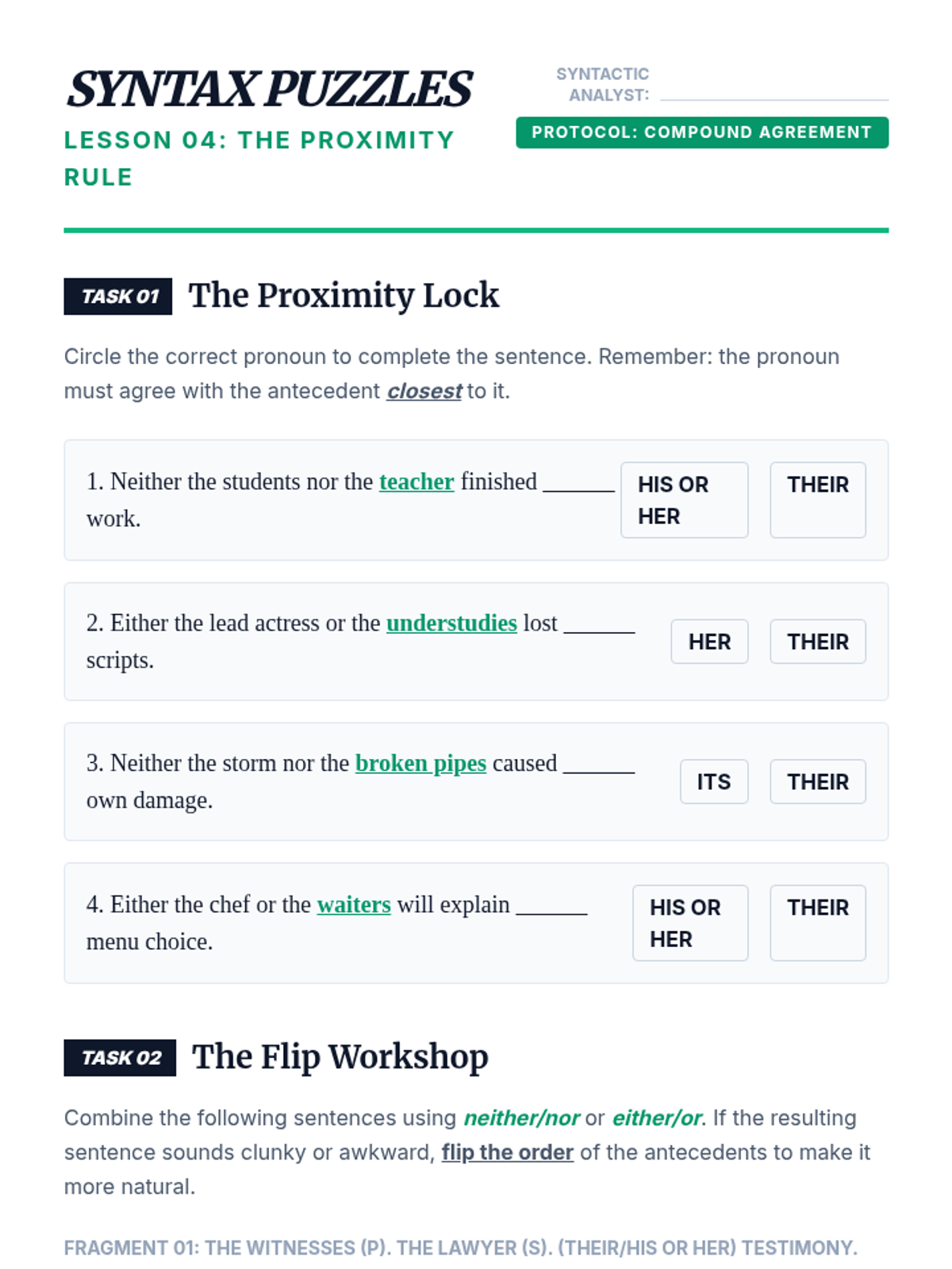 A rigorous grammar workshop focused on pronoun-antecedent agreement in academic editing, moving from basic diagnostics to complex collective nouns and indefinite pronouns.