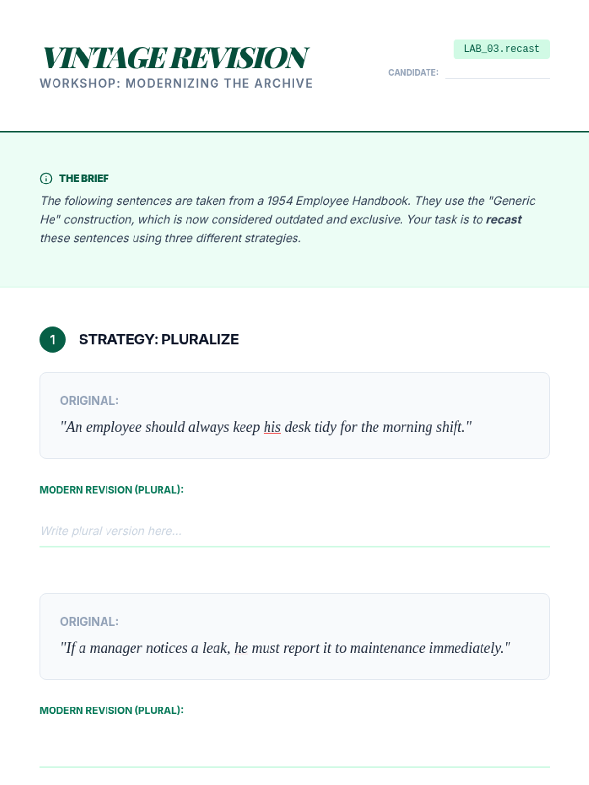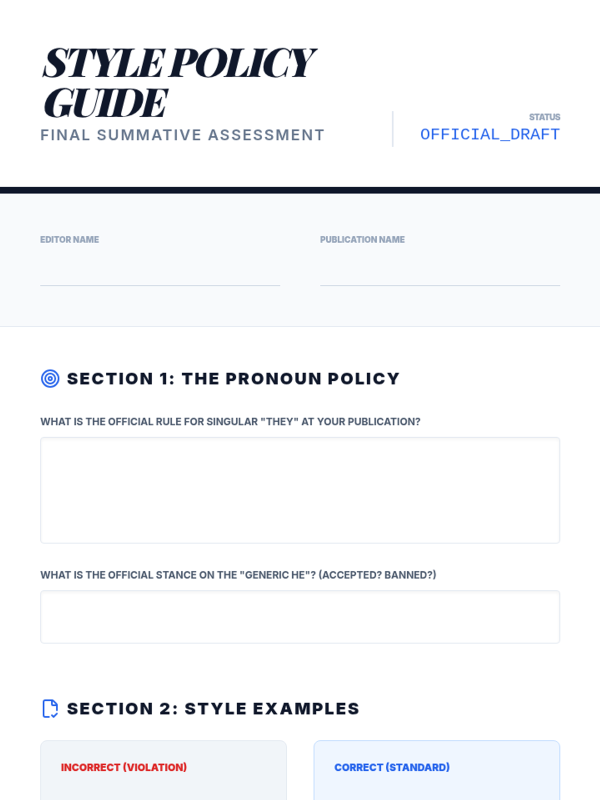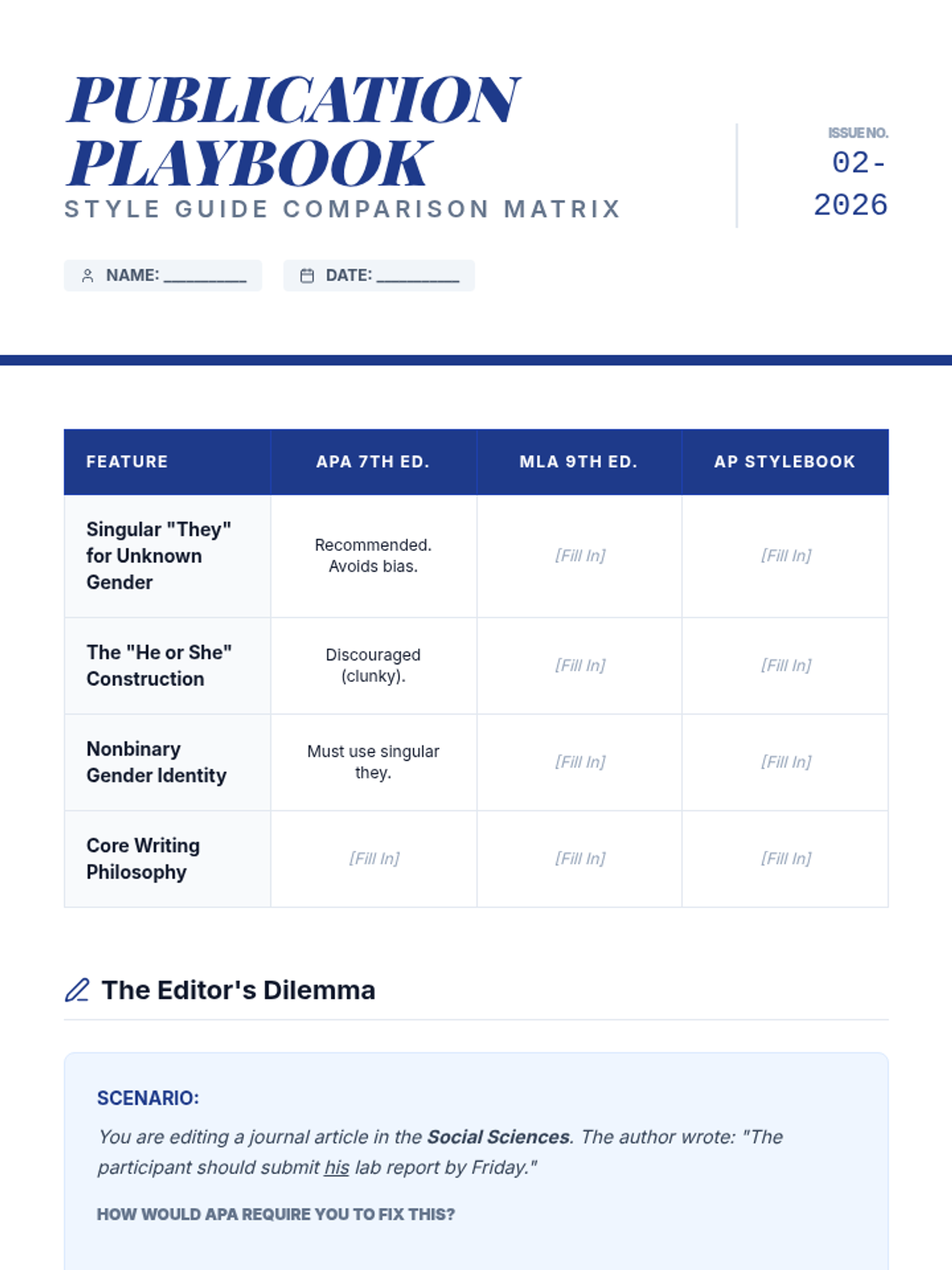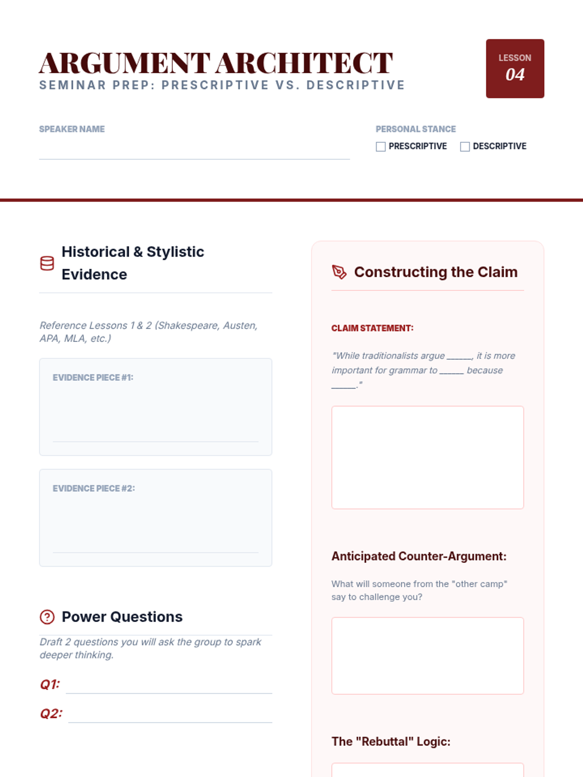 This sequence explores the evolution of pronouns and antecedents, specifically focusing on the singular 'they' and gender-neutral language. Students analyze historical usage, compare modern style guides, and debate the tension between prescriptive and descriptive grammar.