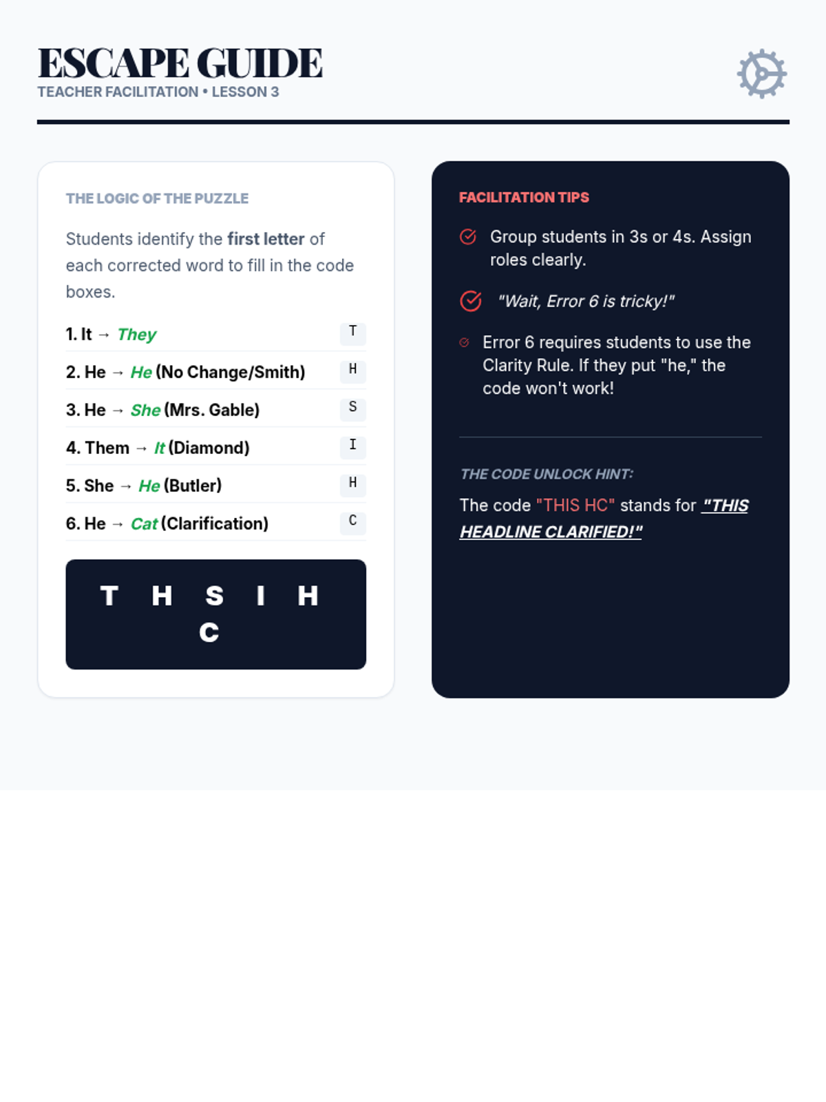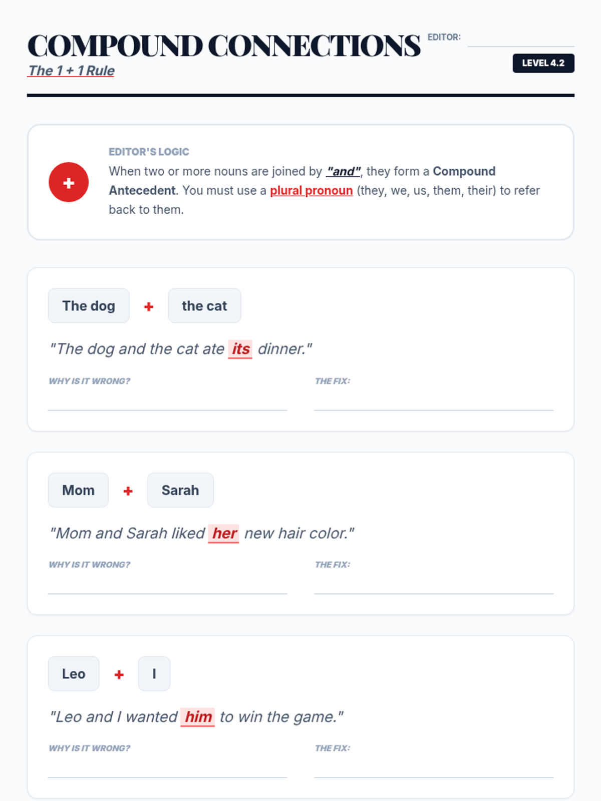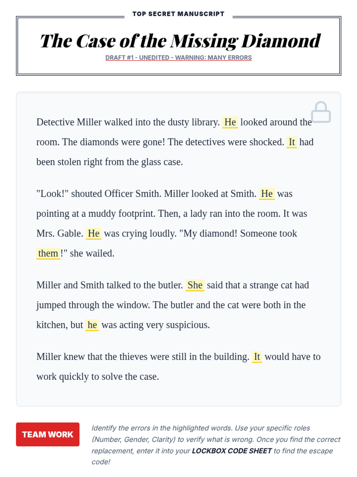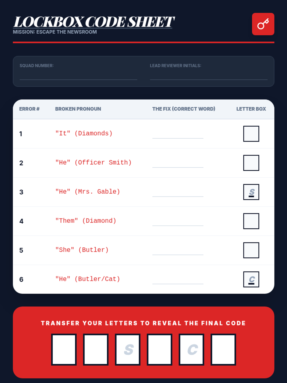 A 3rd-grade ELA sequence where students take on the role of professional editors to master pronoun-antecedent agreement. Through simulations and collaborative challenges, students learn to identify and correct errors in number, gender, and clarity.