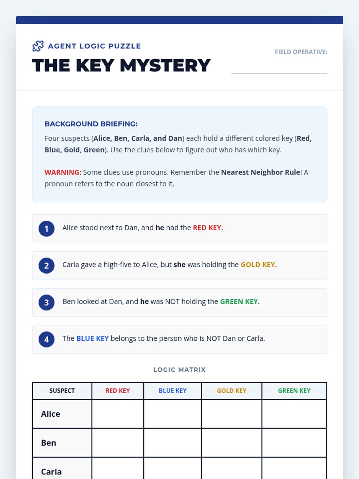 A 12-lesson comprehension mastery program focused on metacognition, reasoning, and evidence-based thinking. Students progress from basic thinking awareness to complex deductive reasoning and synthesis. Inspired by Reading Detective and Comprehension Connections.