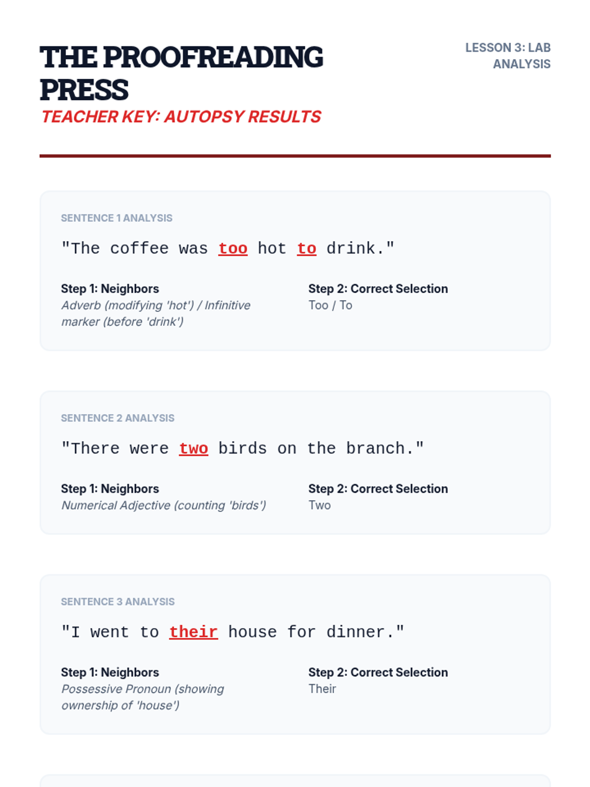 A 9th-grade ELA sequence focused on mastering high-frequency homophones through a professional editing lens. Students move from diagnostic analysis to peer review and self-reflection, developing metacognitive strategies for grammatical precision in formal writing.