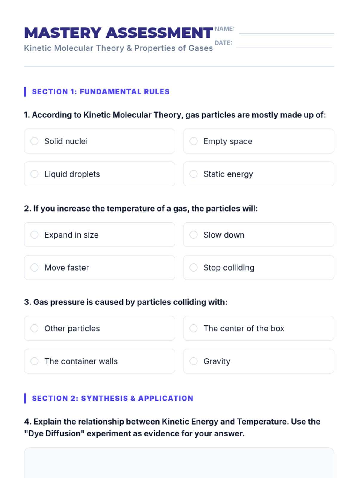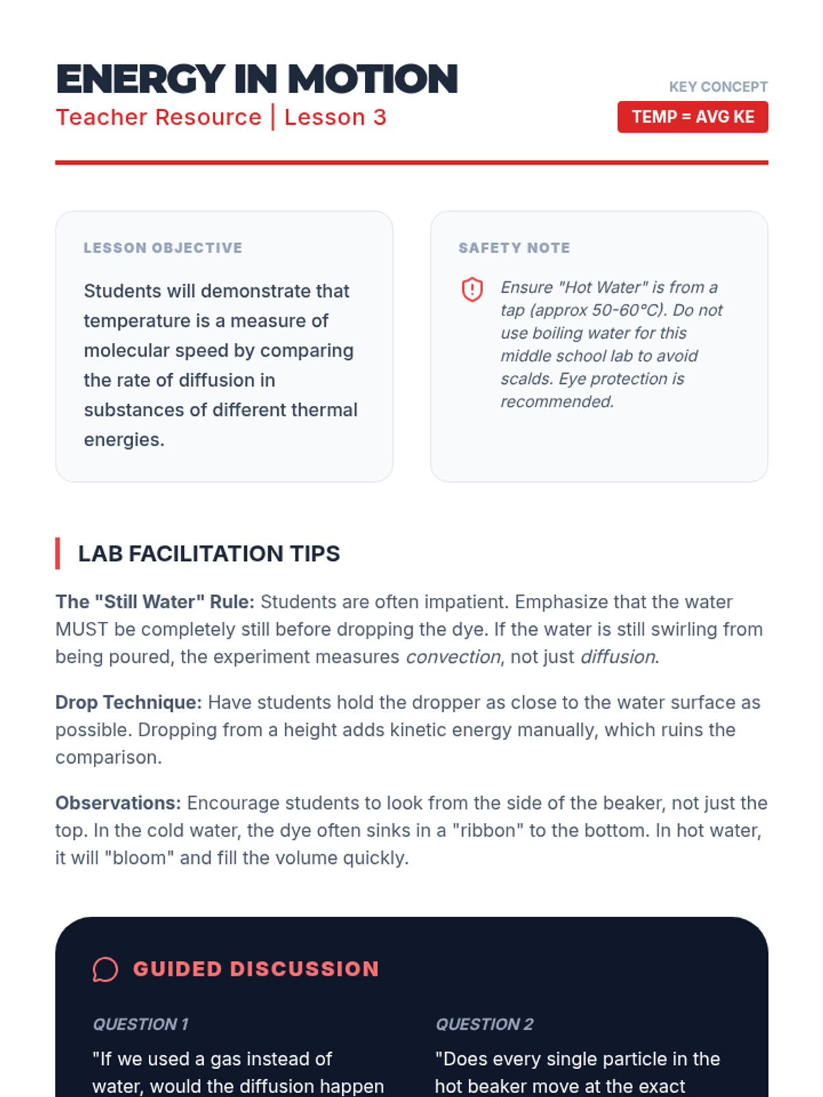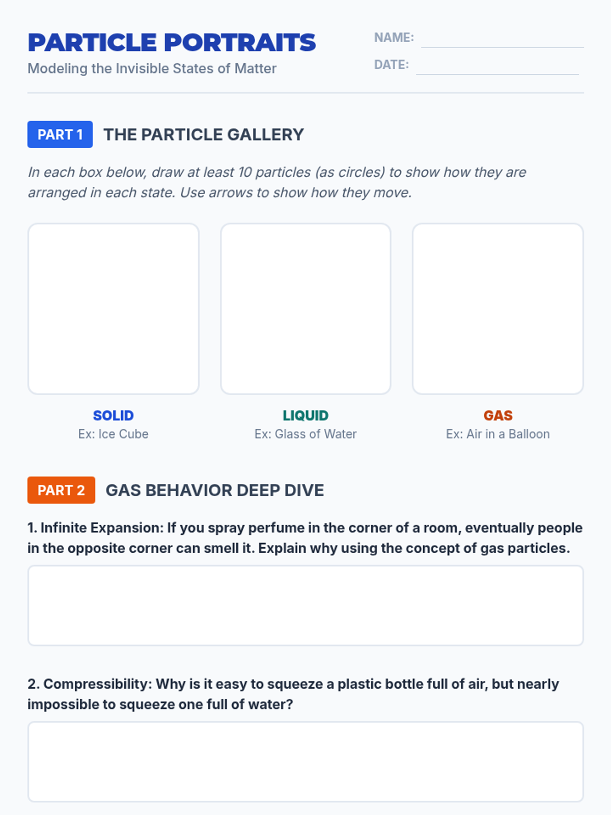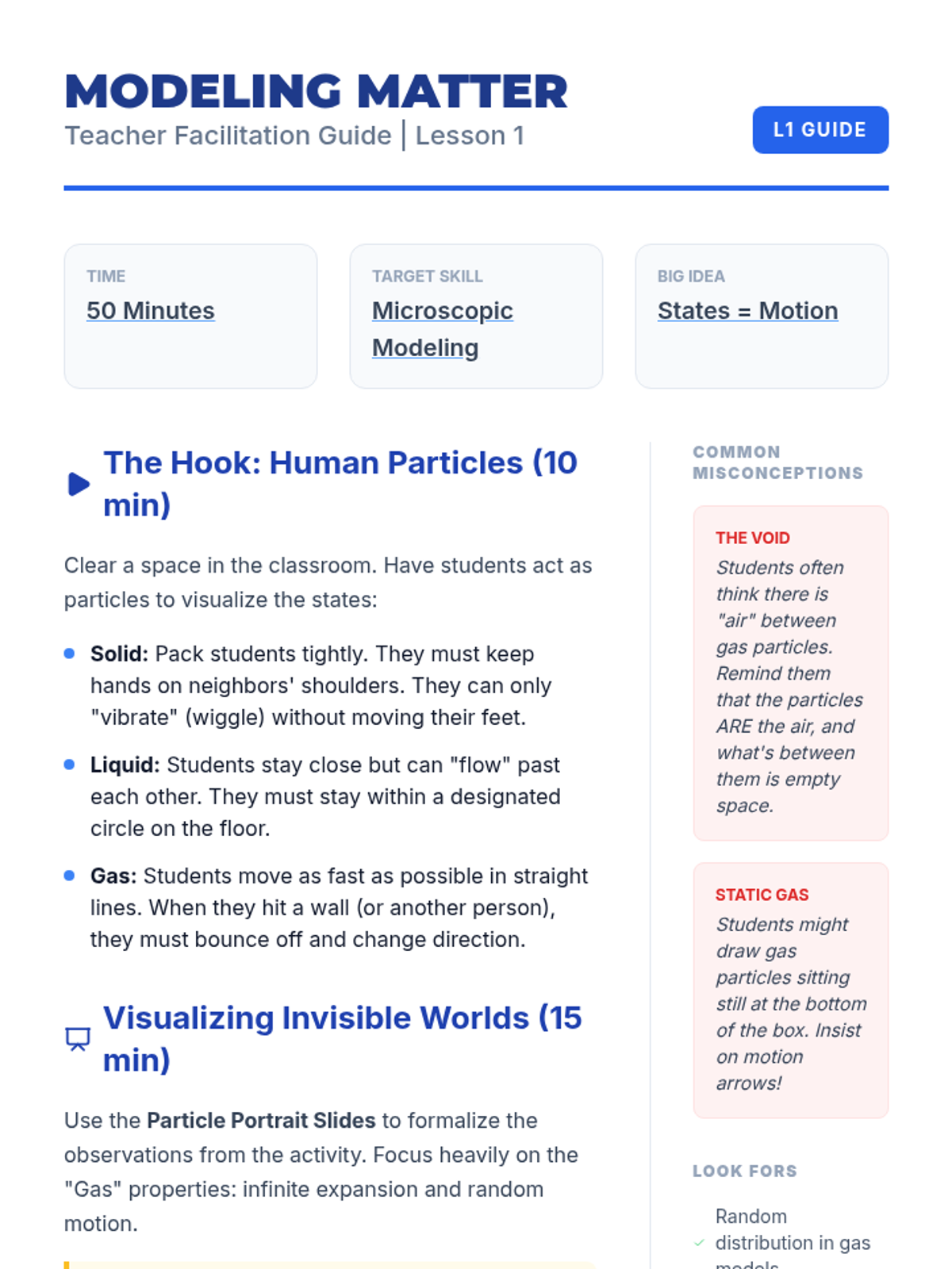 This foundational sequence introduces 7th-grade students to the Kinetic Molecular Theory through physical modeling, interactive simulations, and real-world phenomena. Students explore how the arrangement and motion of invisible particles define the states of matter and create measurable properties like temperature and pressure.