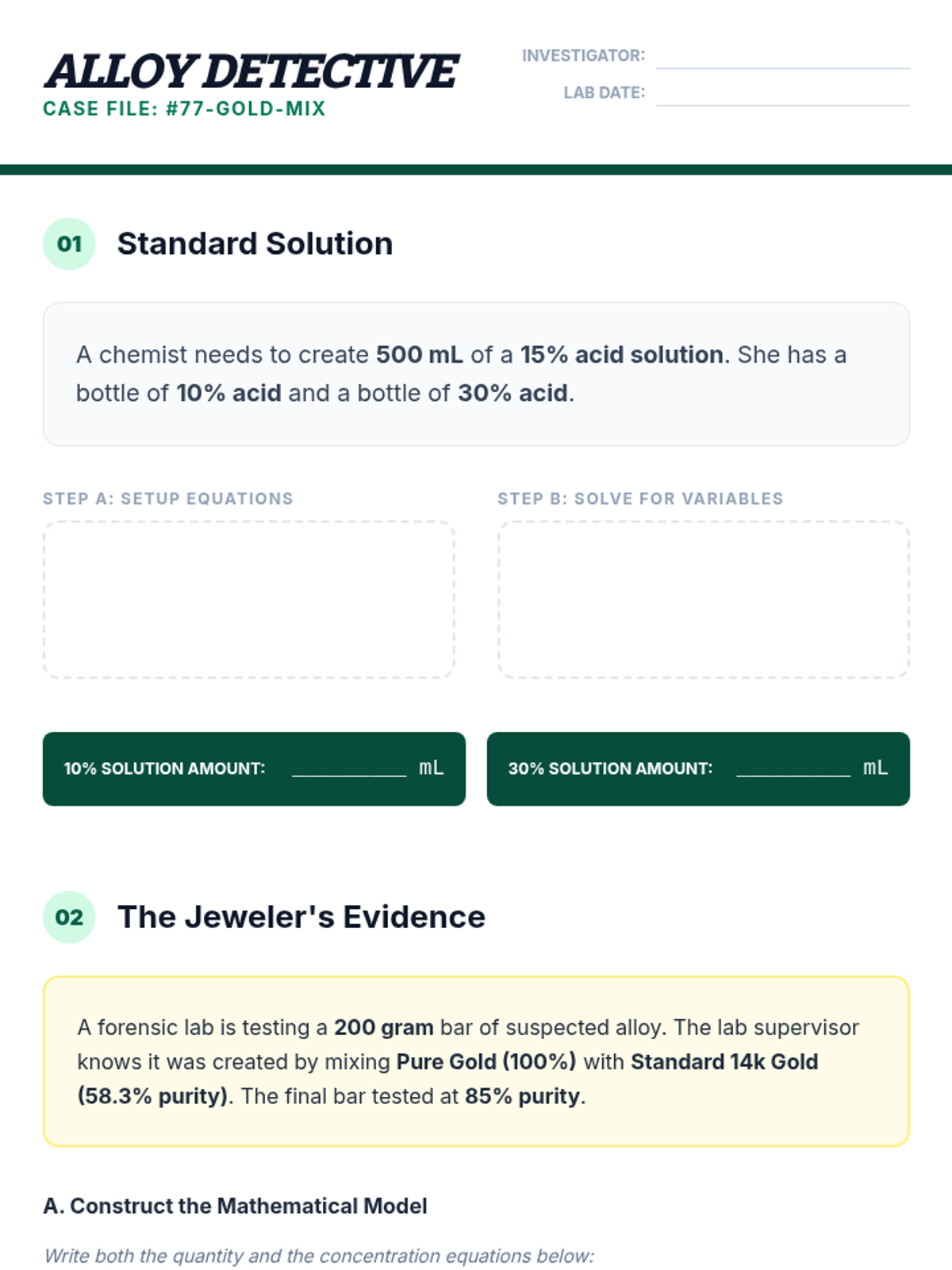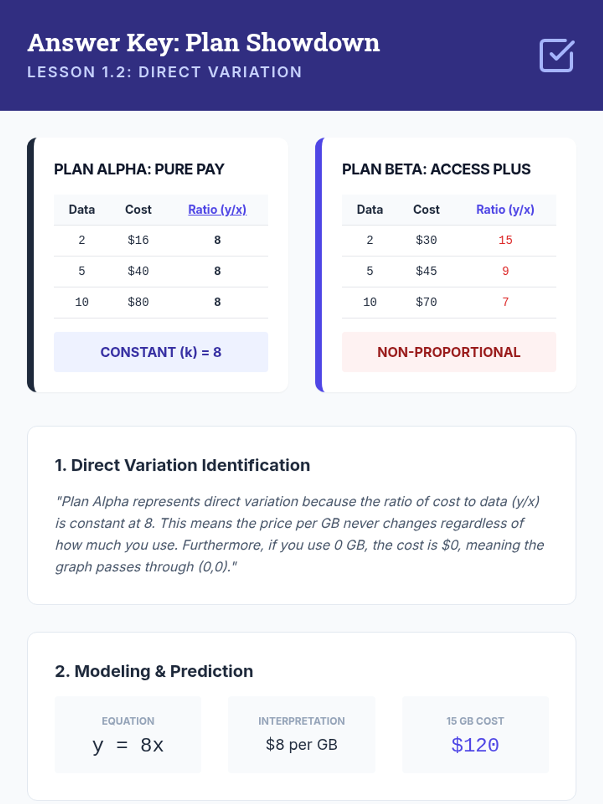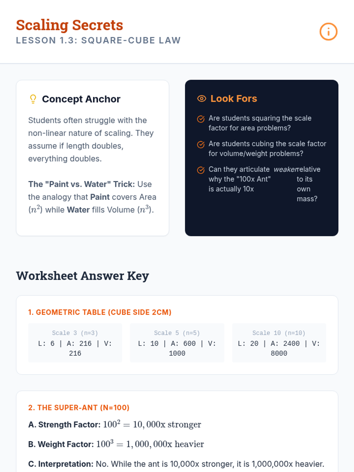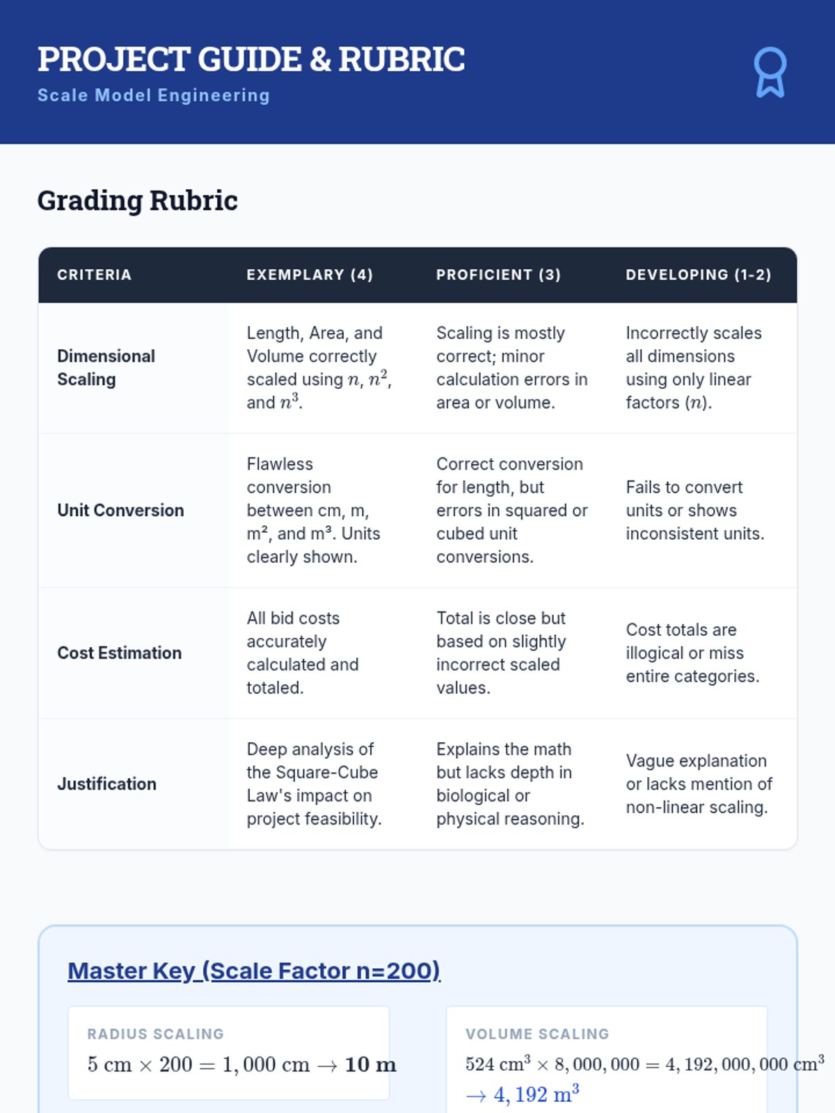 A high-school level mathematics unit bridging arithmetic ratios with algebraic modeling. Students master dimensional analysis, formalize direct variation as linear functions, explore the geometric implications of scaling (Square-Cube Law), and solve complex mixture problems.