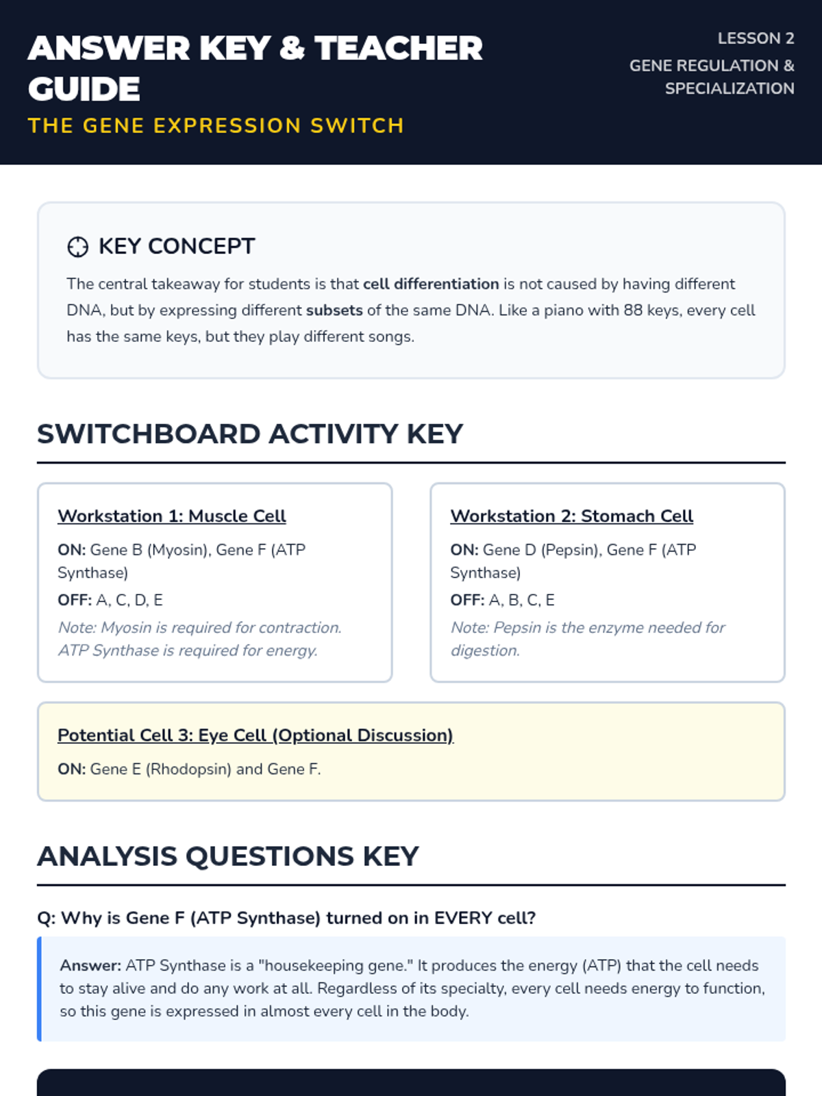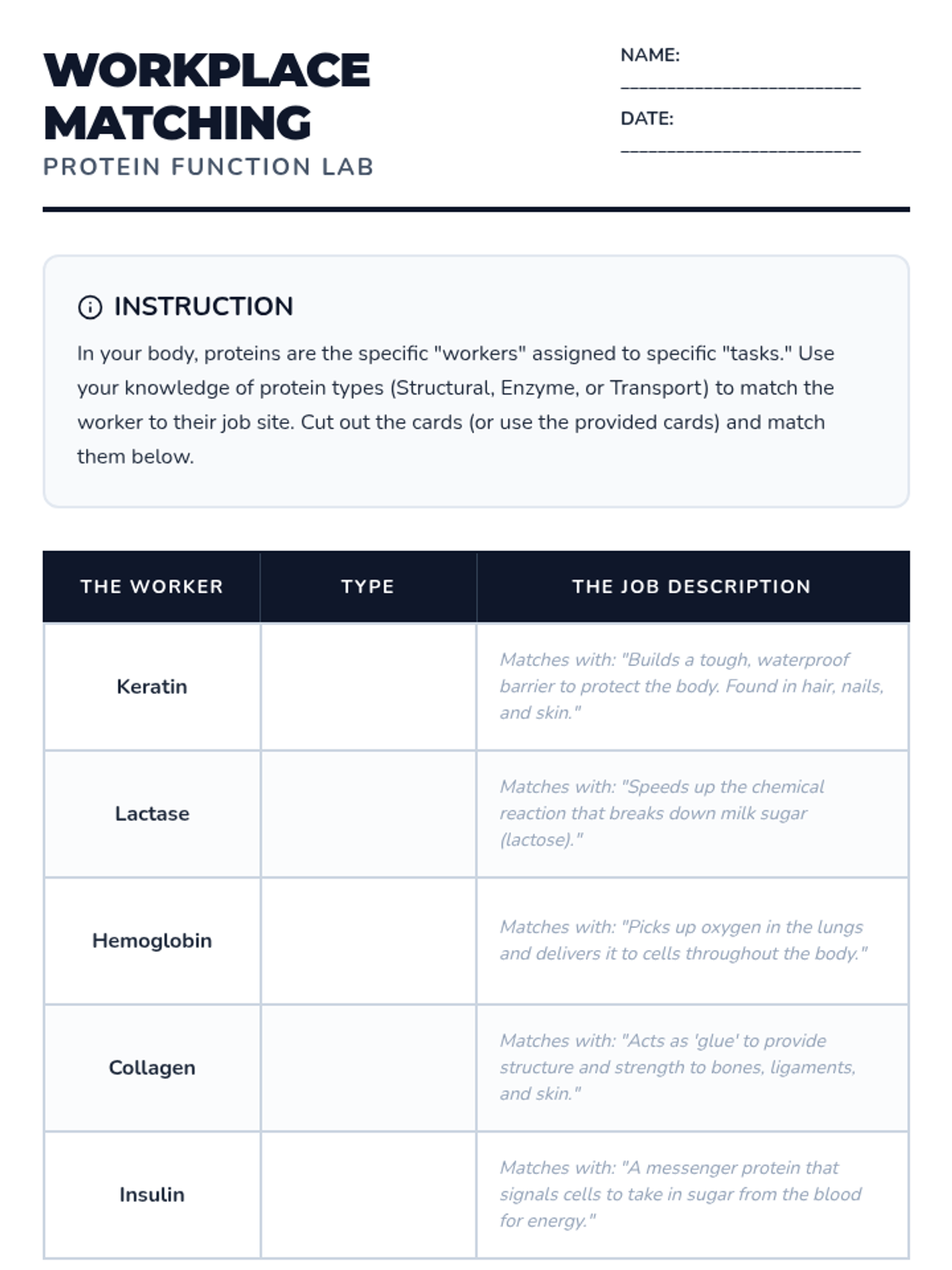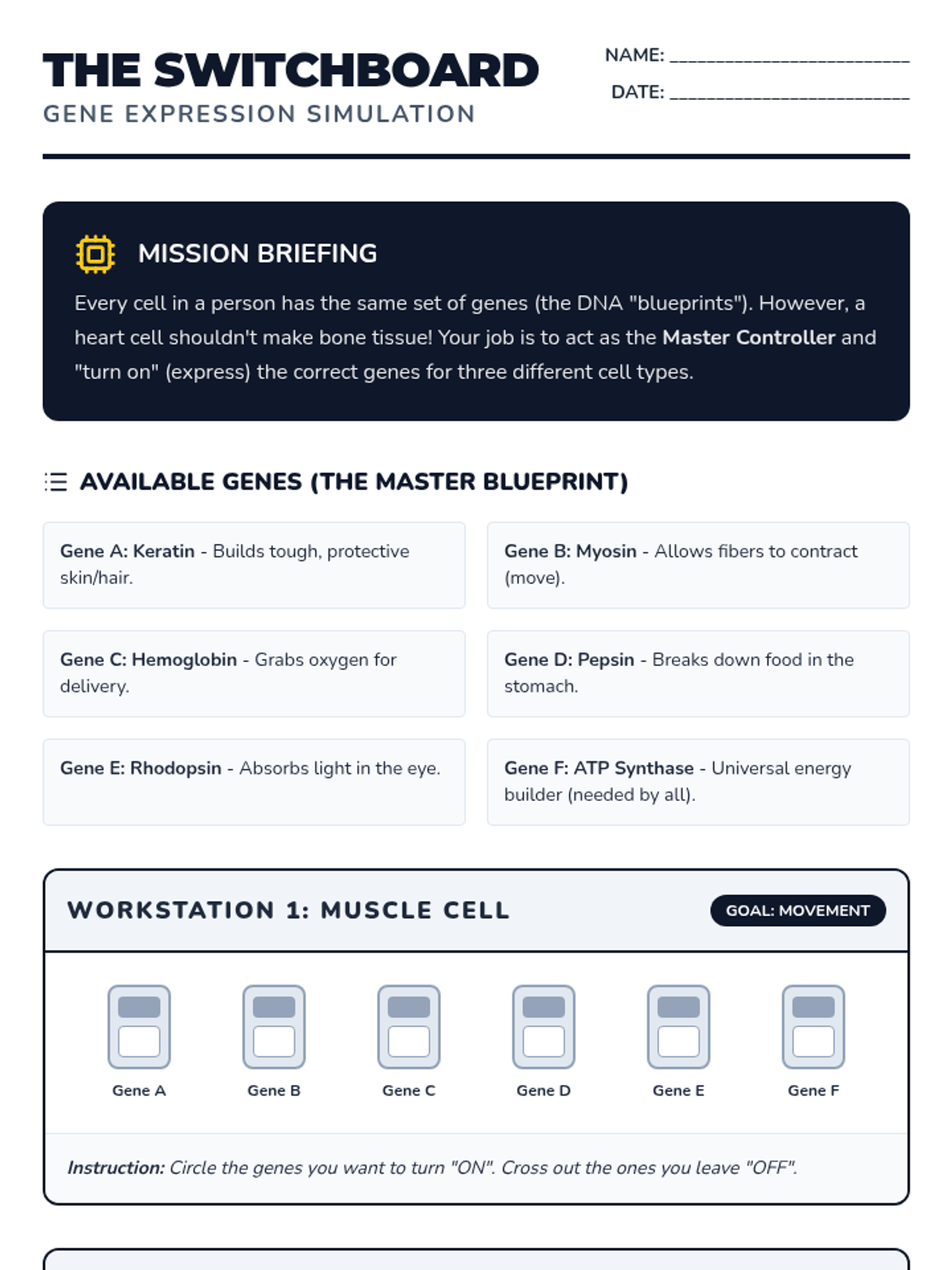 This sequence explores how genes act as instructions for building proteins, which are the functional 'workers' of the cell. Students will investigate protein diversity, gene regulation, and how specialized cells express specific proteins to perform unique roles in the body.