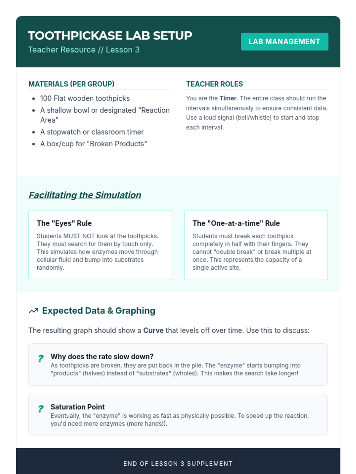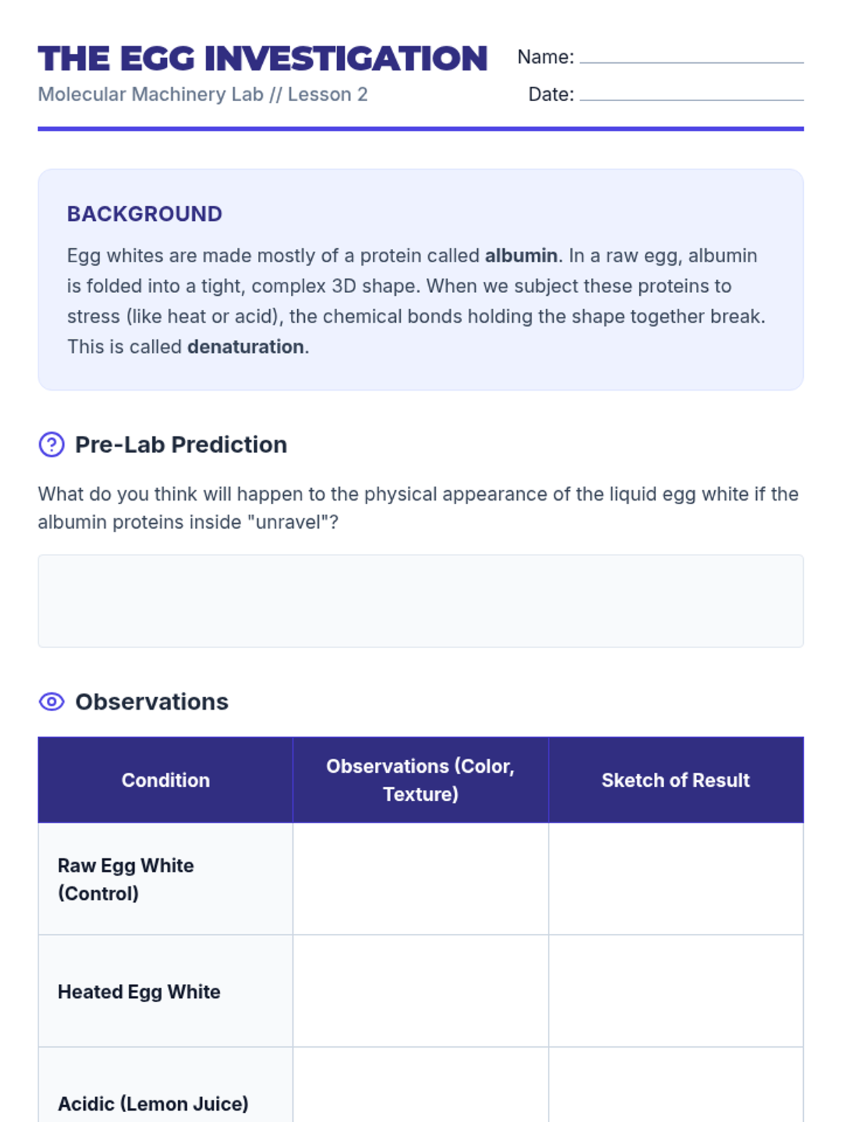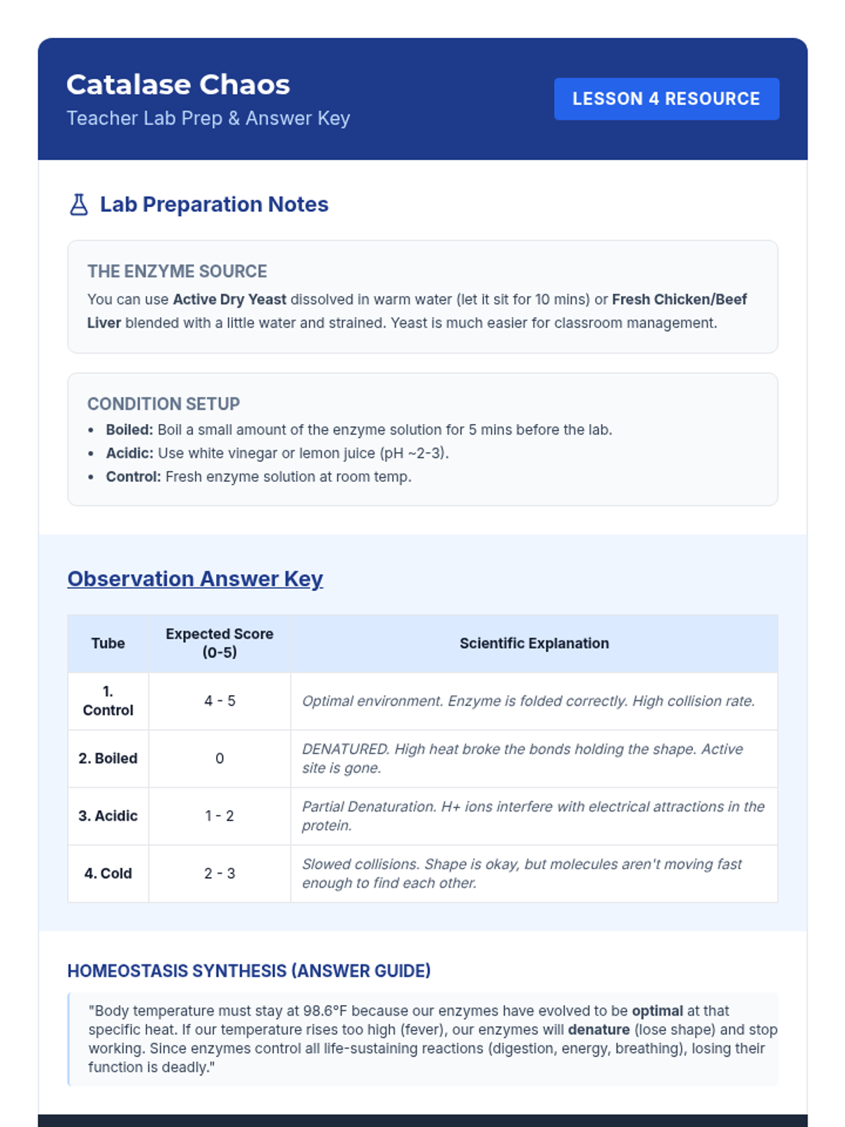A comprehensive unit on the structural hierarchy of proteins and the functional role of enzymes. Students explore how molecular shape determines biological function through hands-on simulations, lab experiments, and case studies of human health.