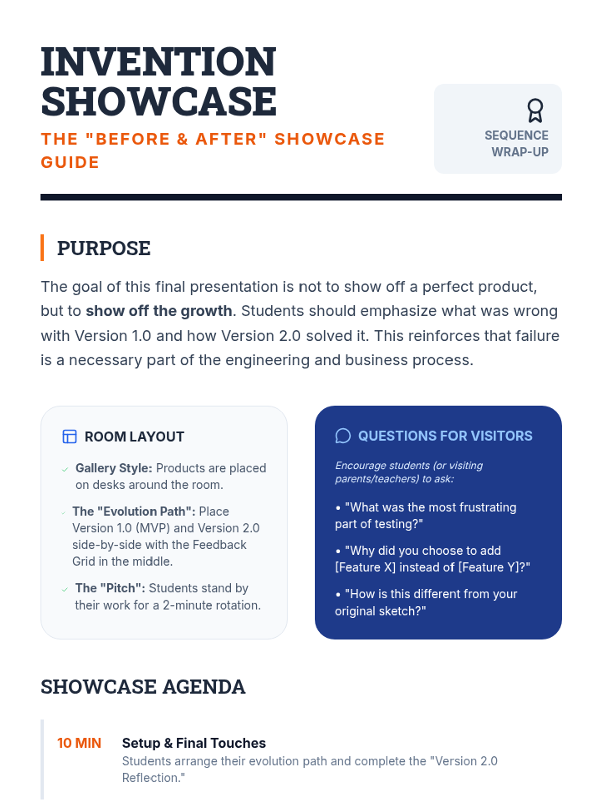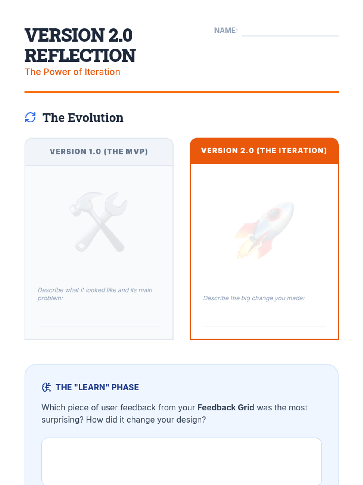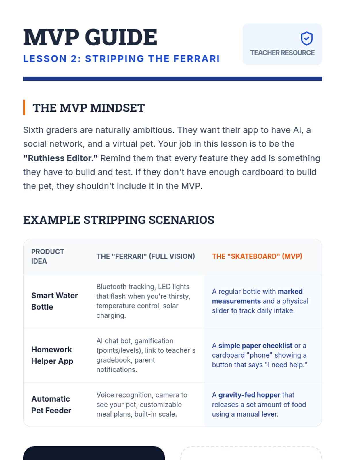 A project-based sequence for 6th graders focusing on the Build-Measure-Learn loop. Students transition from theoretical ideas to hands-on prototyping, user testing, and iterative design using the Lean Startup methodology.
