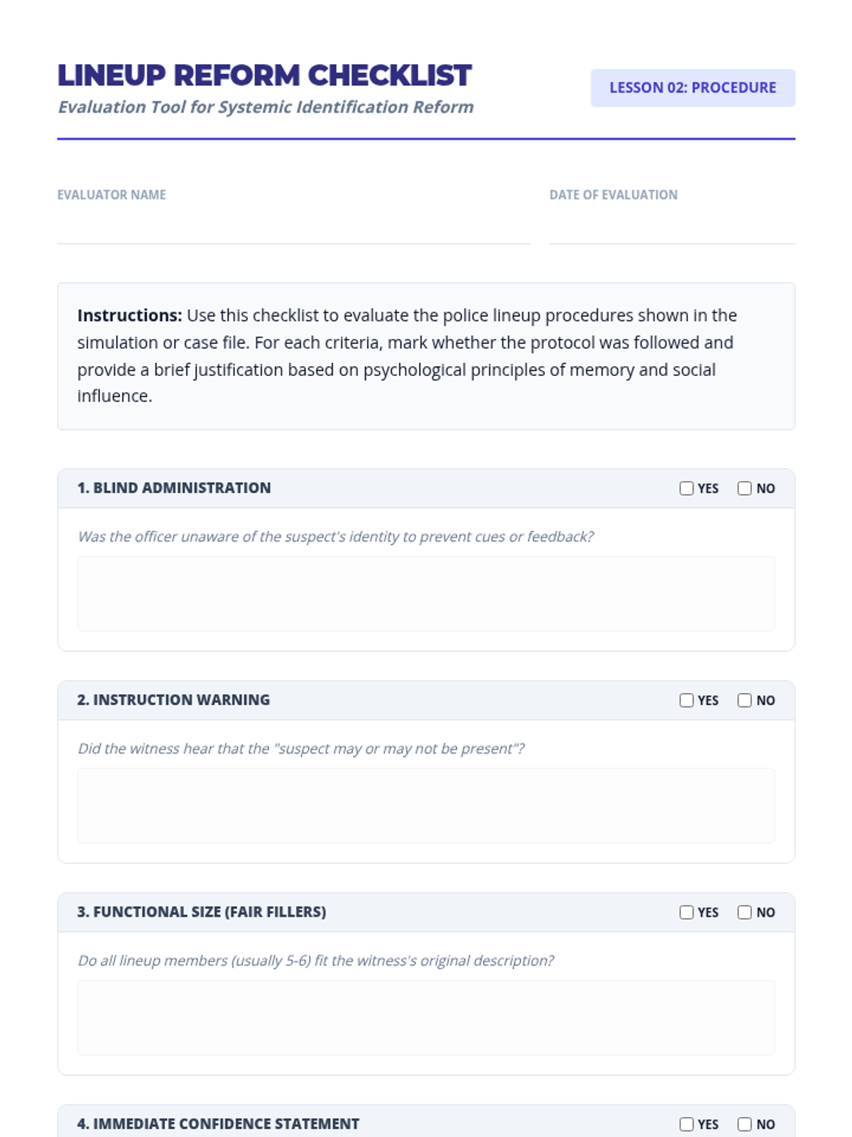 A comprehensive undergraduate course on forensic psychology, focusing on the cognitive and social psychology of the courtroom. Students investigate eyewitness malleability, police interrogation tactics, jury selection, and the group dynamics of deliberation through simulations and case studies.