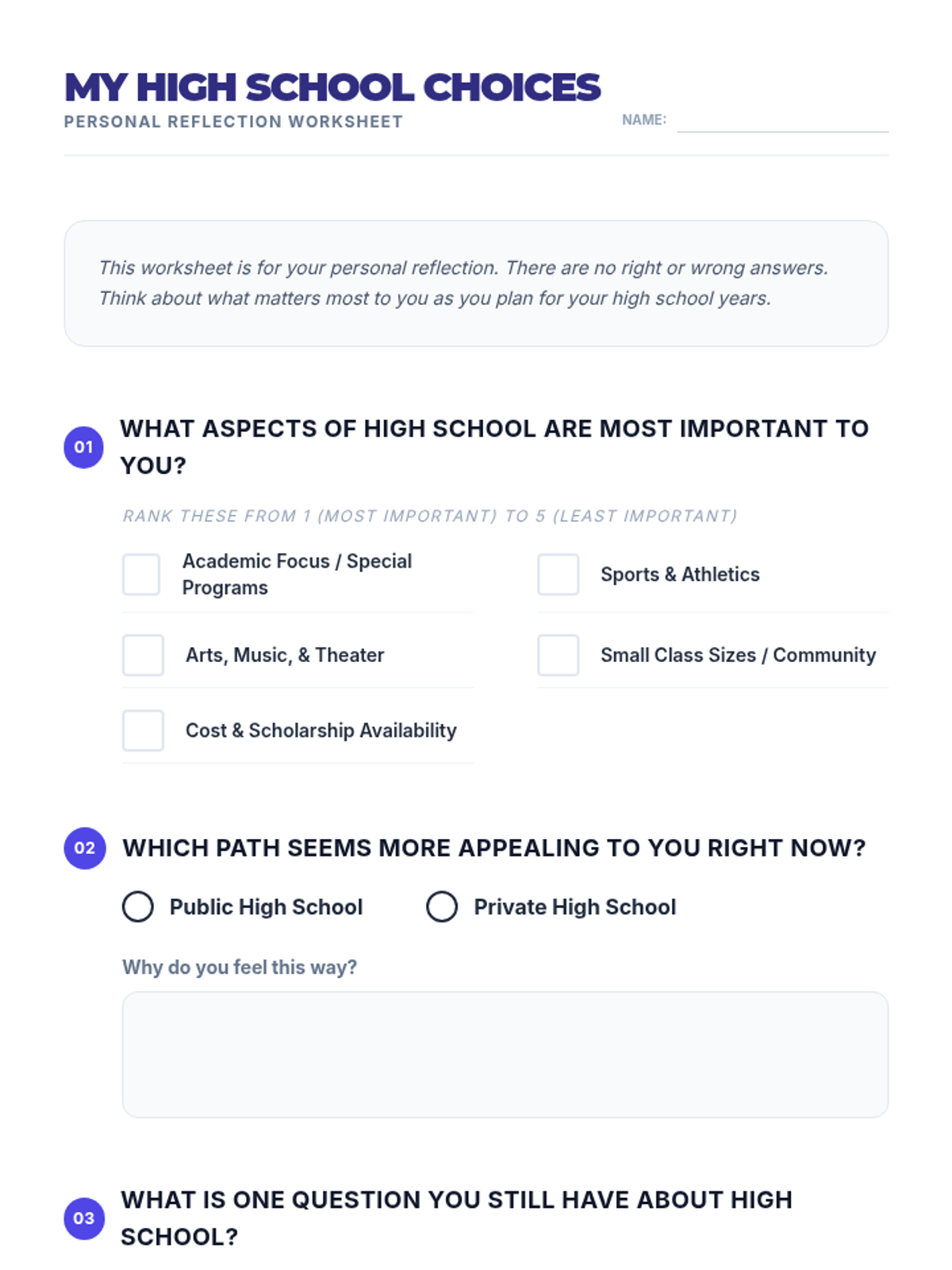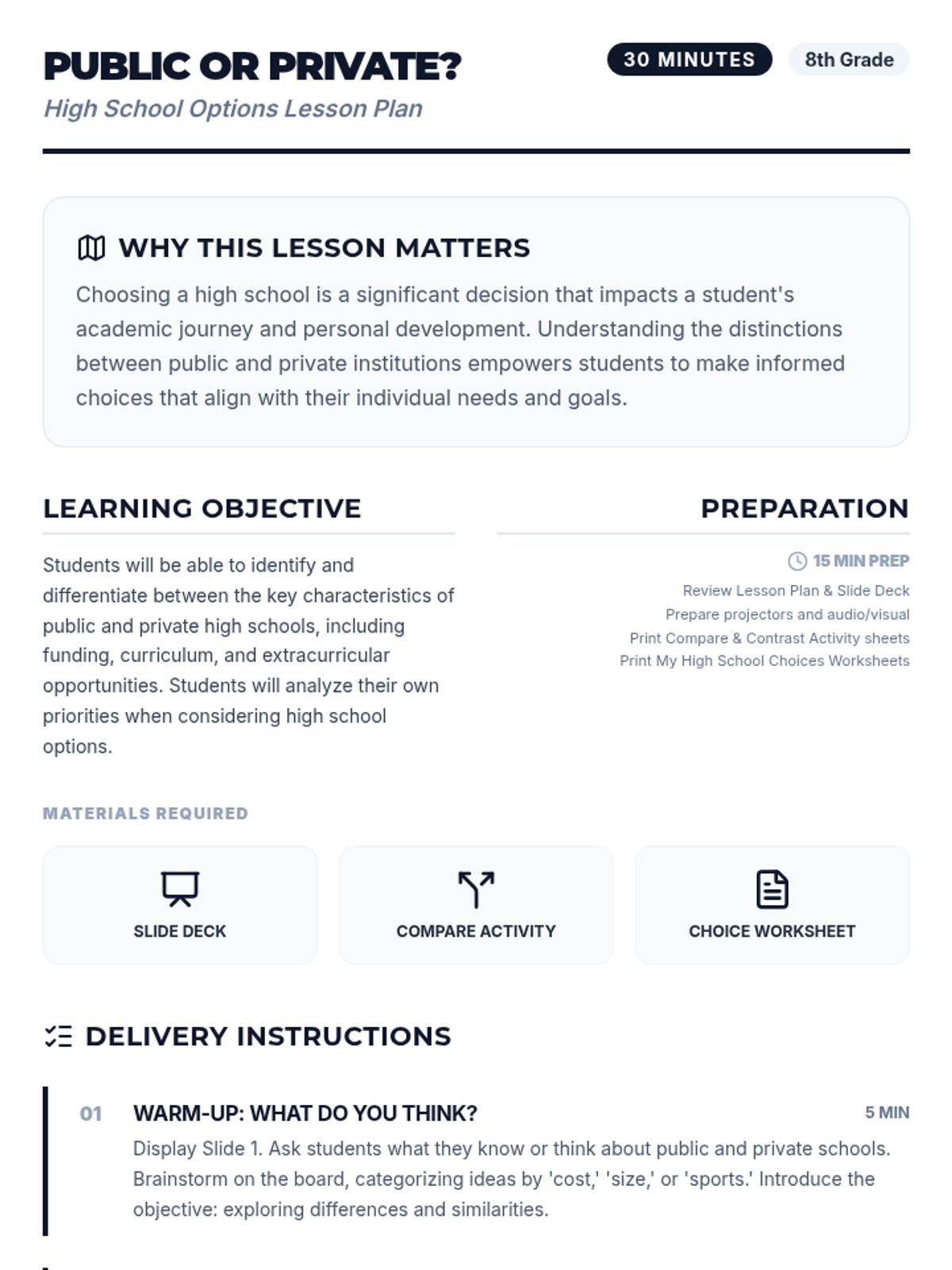 This sequence helps middle school students navigate their internal and external worlds. It begins with 'Your Mood Meter,' a lesson on emotional self-awareness and regulation, and concludes with 'Public or Private?,' an exploration of high school options to help students make informed decisions about their academic future.