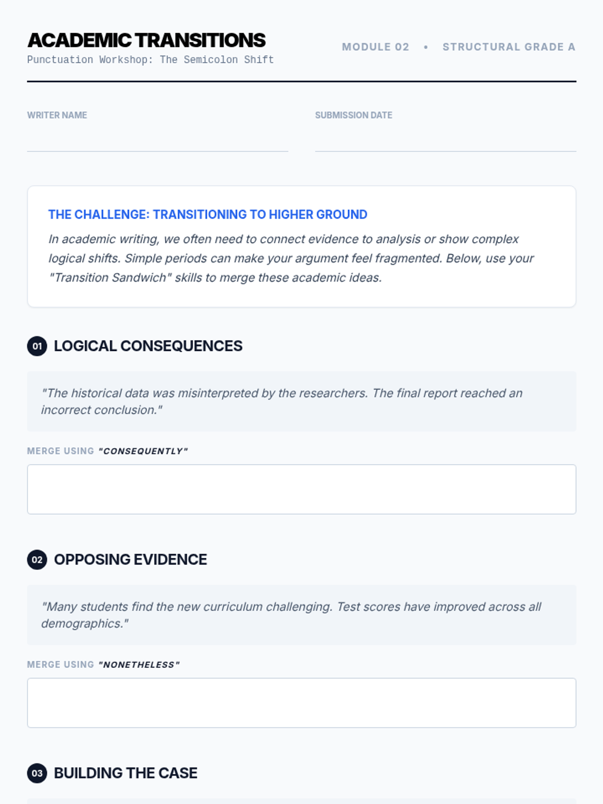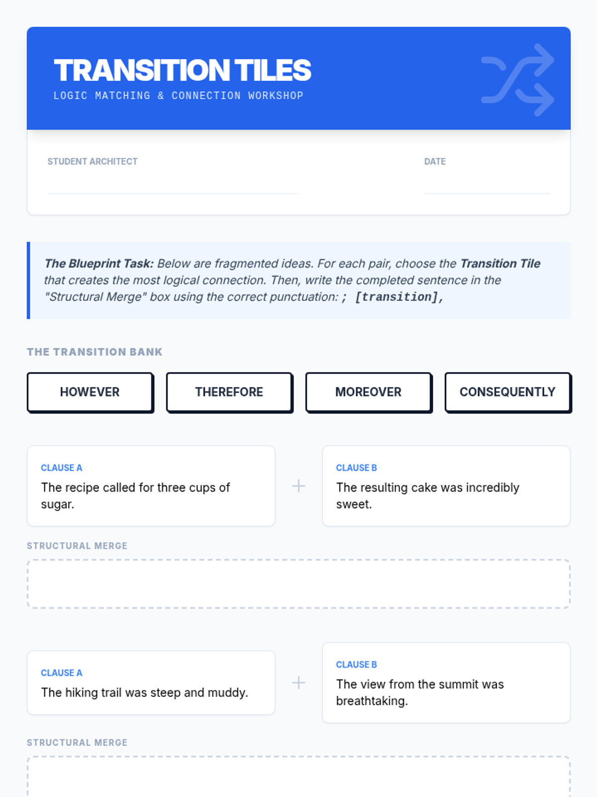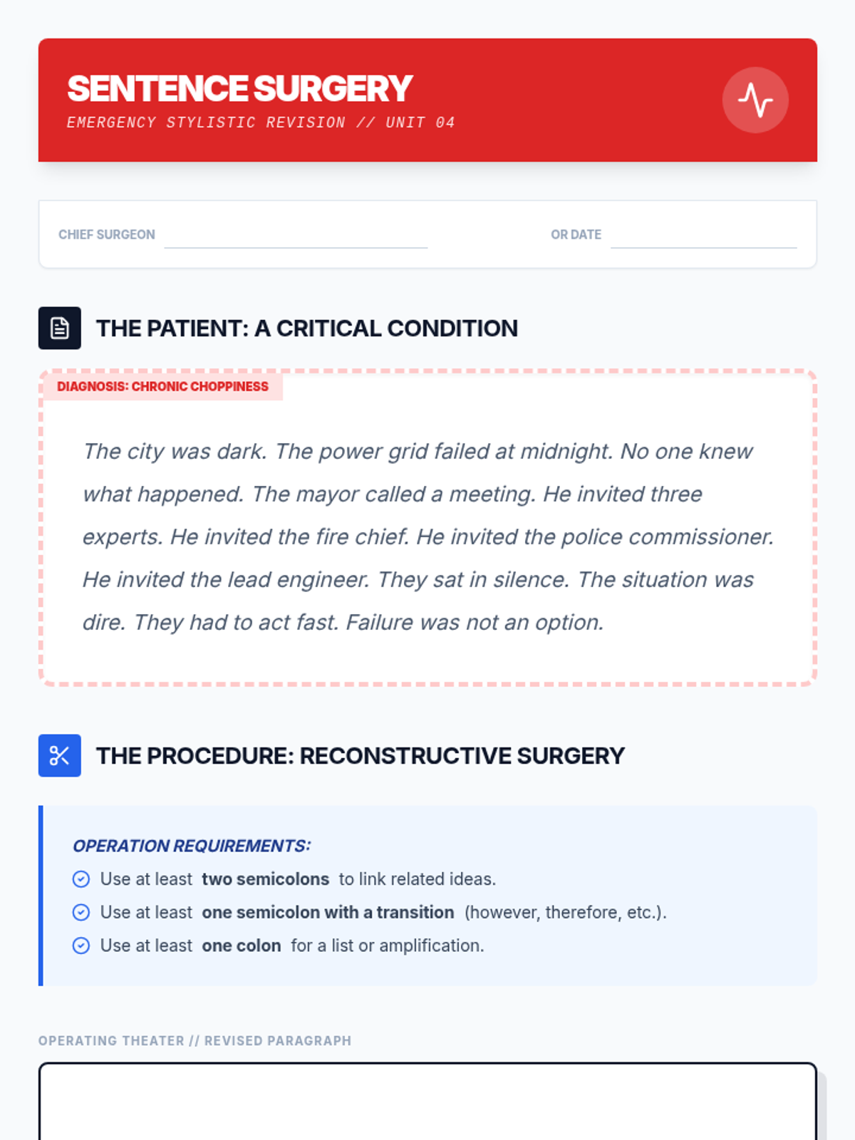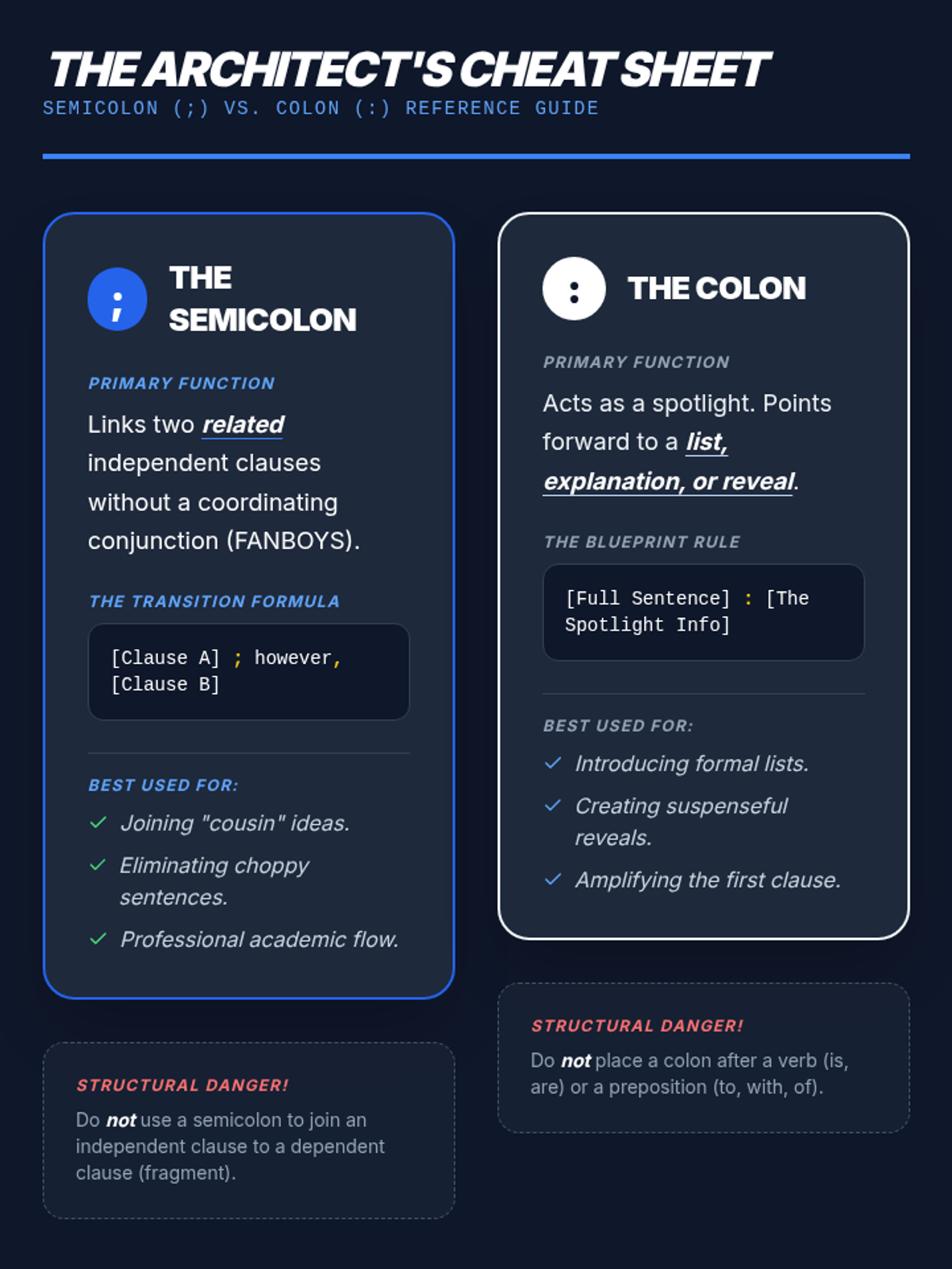A comprehensive 10th-grade ELA unit focusing on the sophisticated use of semicolons and colons to enhance sentence variety and clarity. Students progress from clause basics to complex stylistic revision.