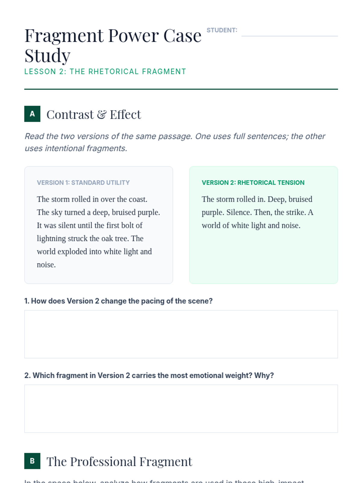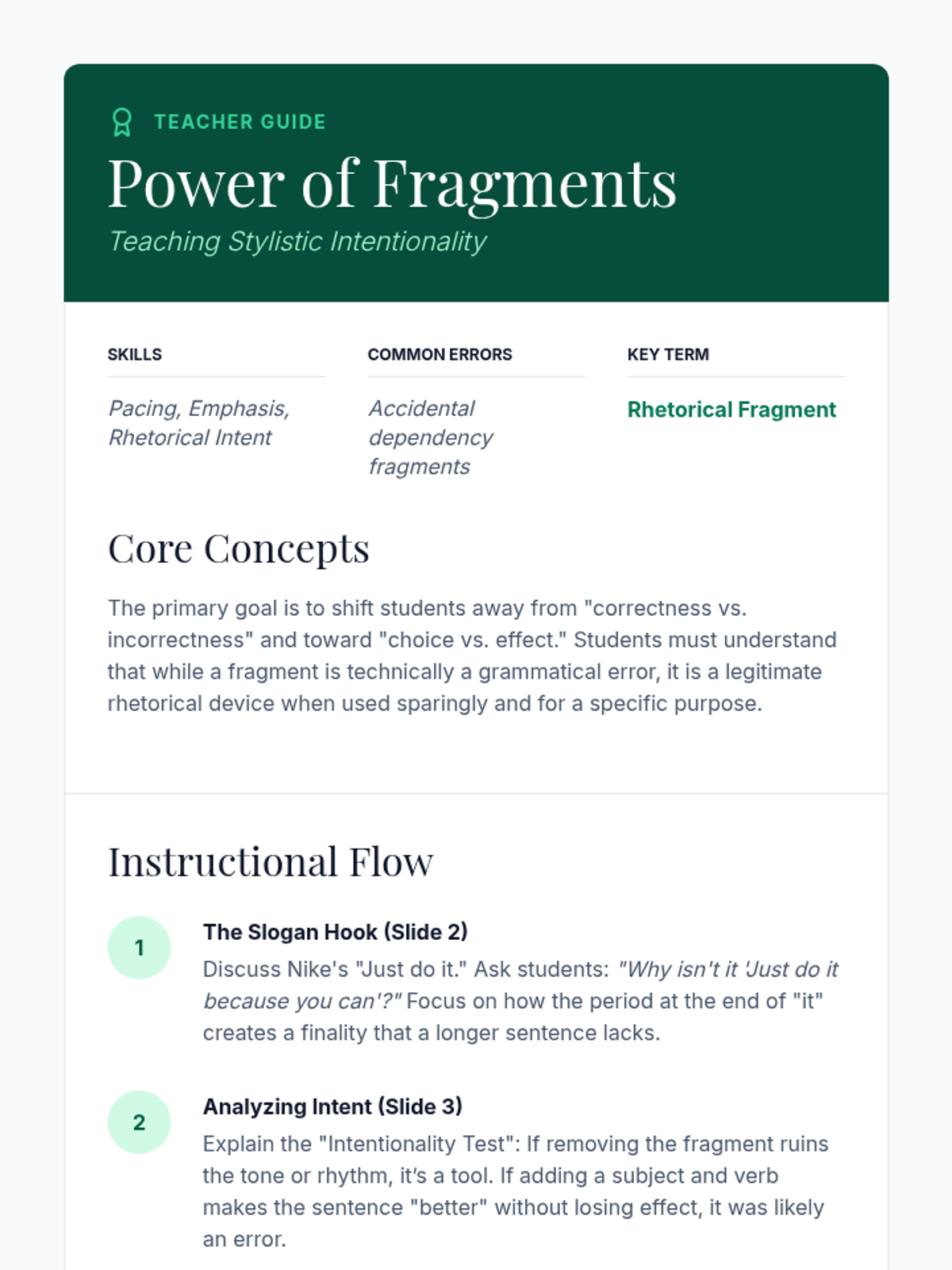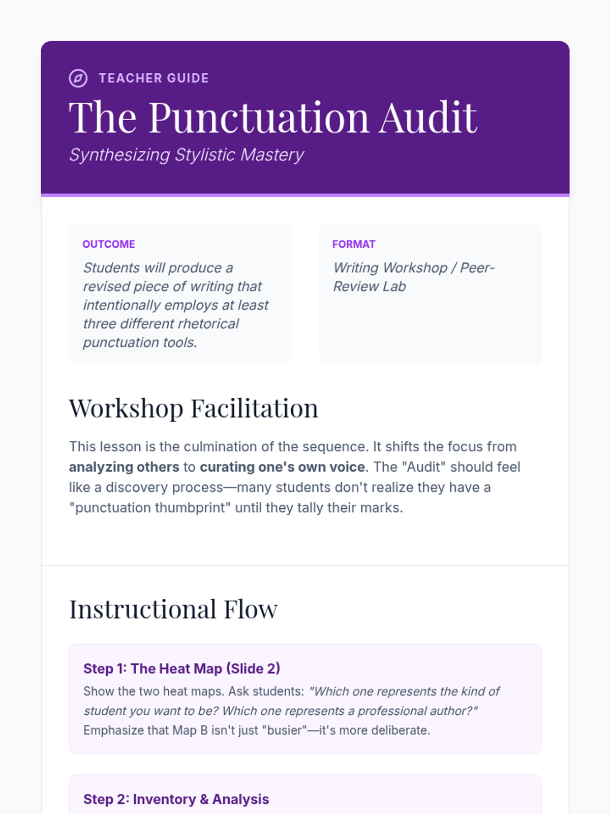 An advanced exploration of punctuation as a rhetorical tool, moving beyond basic rules to examine how dashes, fragments, and end marks shape authorial voice and rhythm. Designed for undergraduate students to master stylistic control.