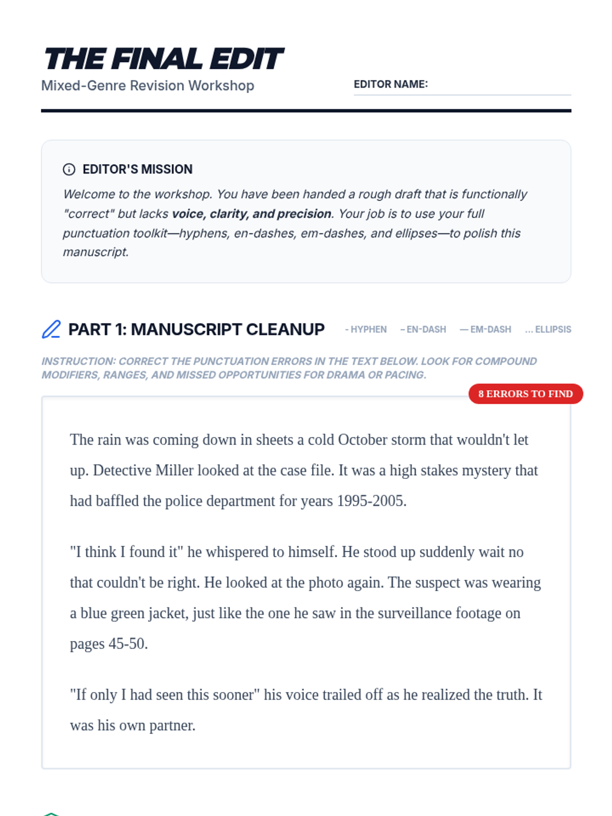 A comprehensive 6th-grade ELA sequence exploring the functional and stylistic uses of hyphens, en-dashes, em-dashes, and ellipses to enhance voice and clarity in writing.