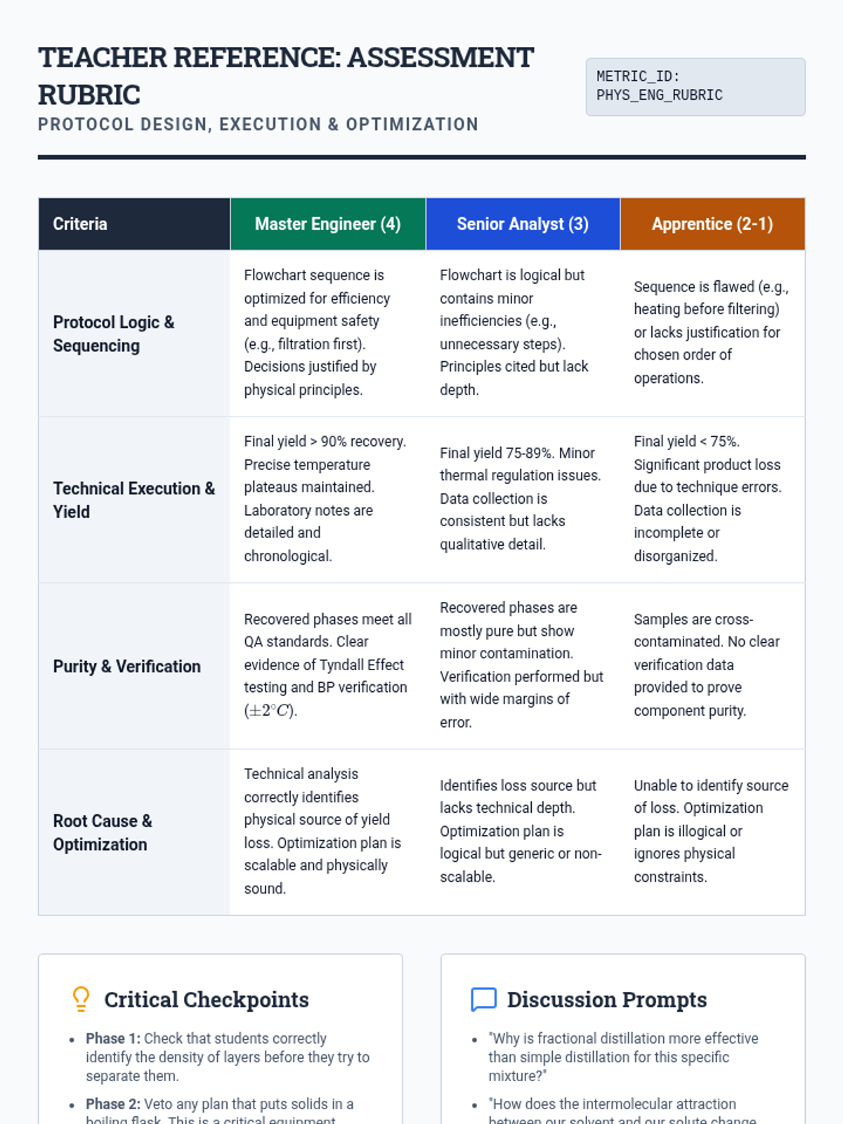 A project-based sequence where 12th-grade students act as environmental engineers to design, test, and optimize a multi-stage separation protocol for a complex hazardous waste mixture. Students apply physical principles of density, solubility, and boiling points to isolate pure substances.