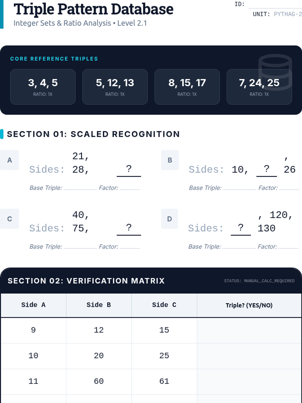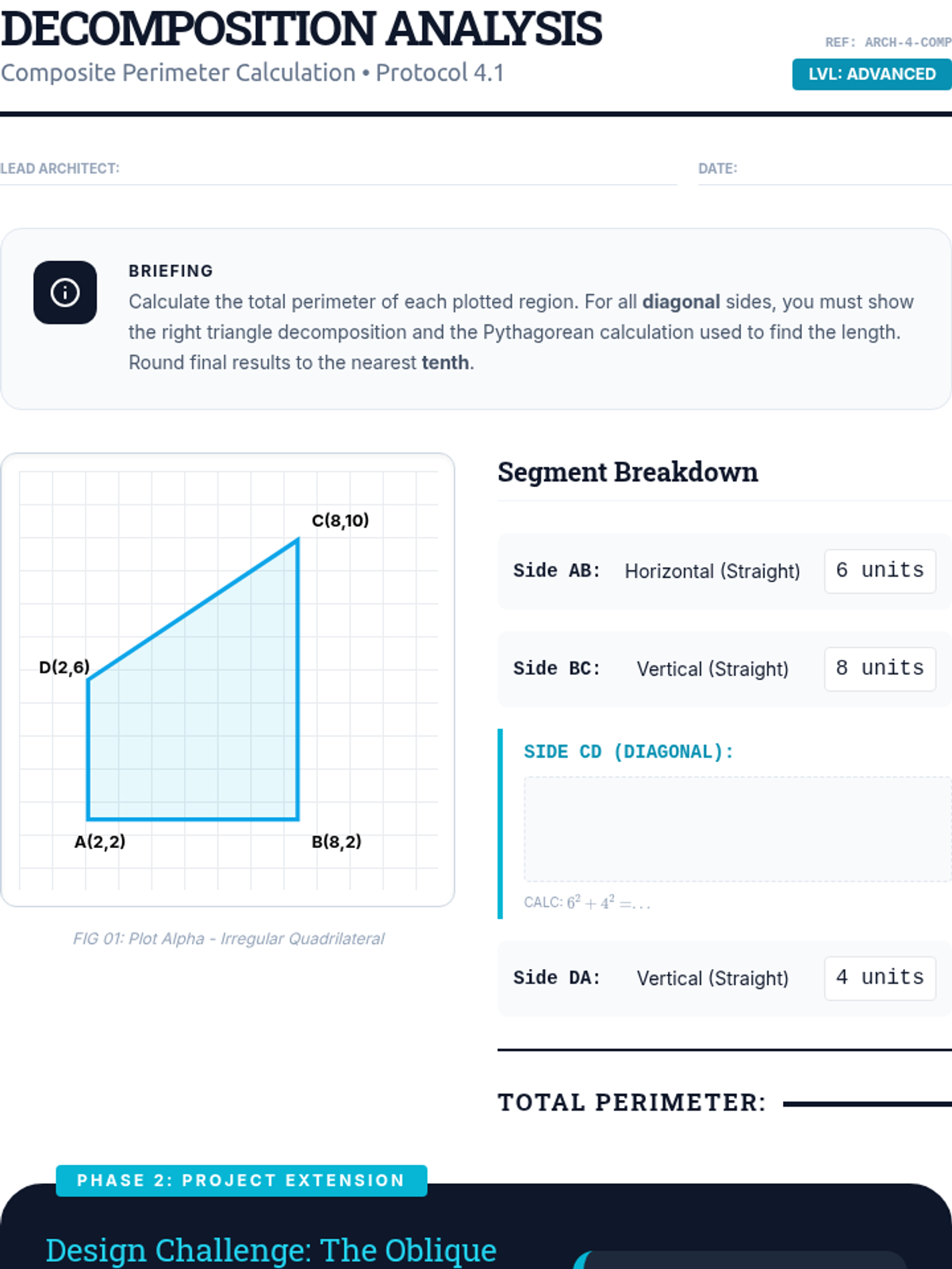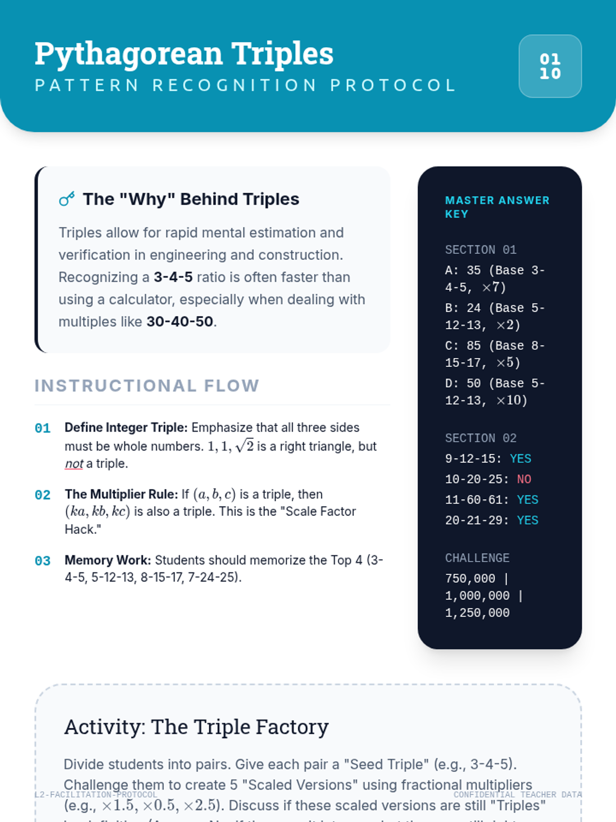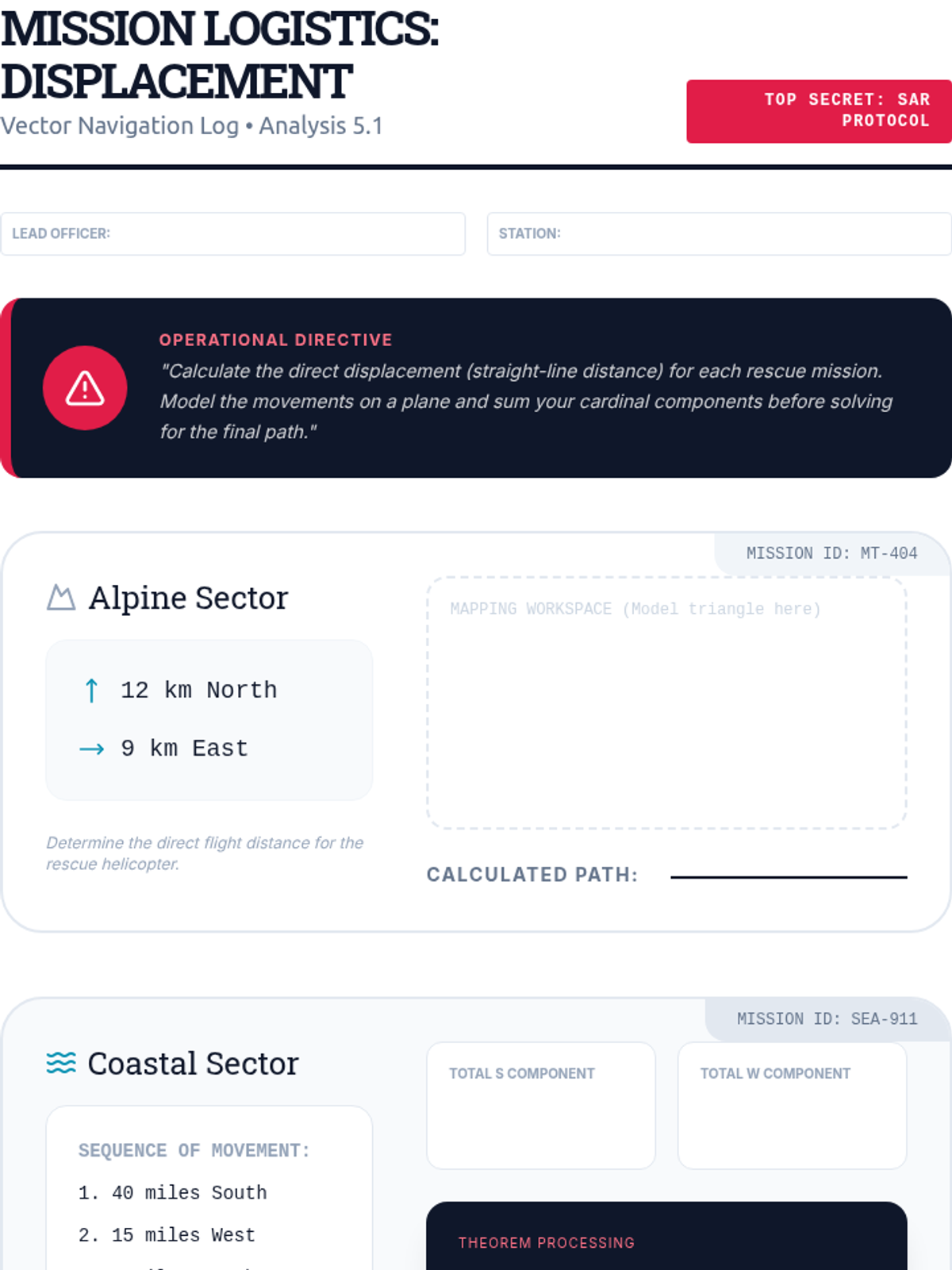 An advanced geometry sequence focusing on solving for missing legs, identifying triples, and applying the Pythagorean Theorem to coordinate geometry and real-world navigation.