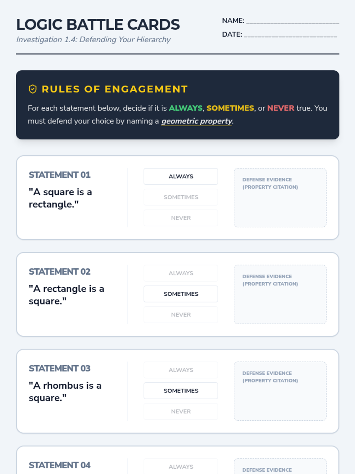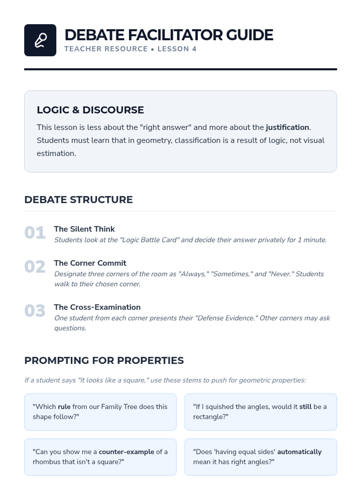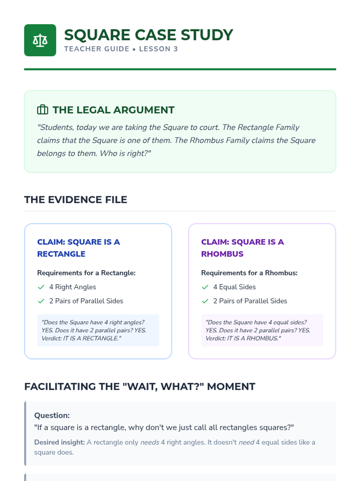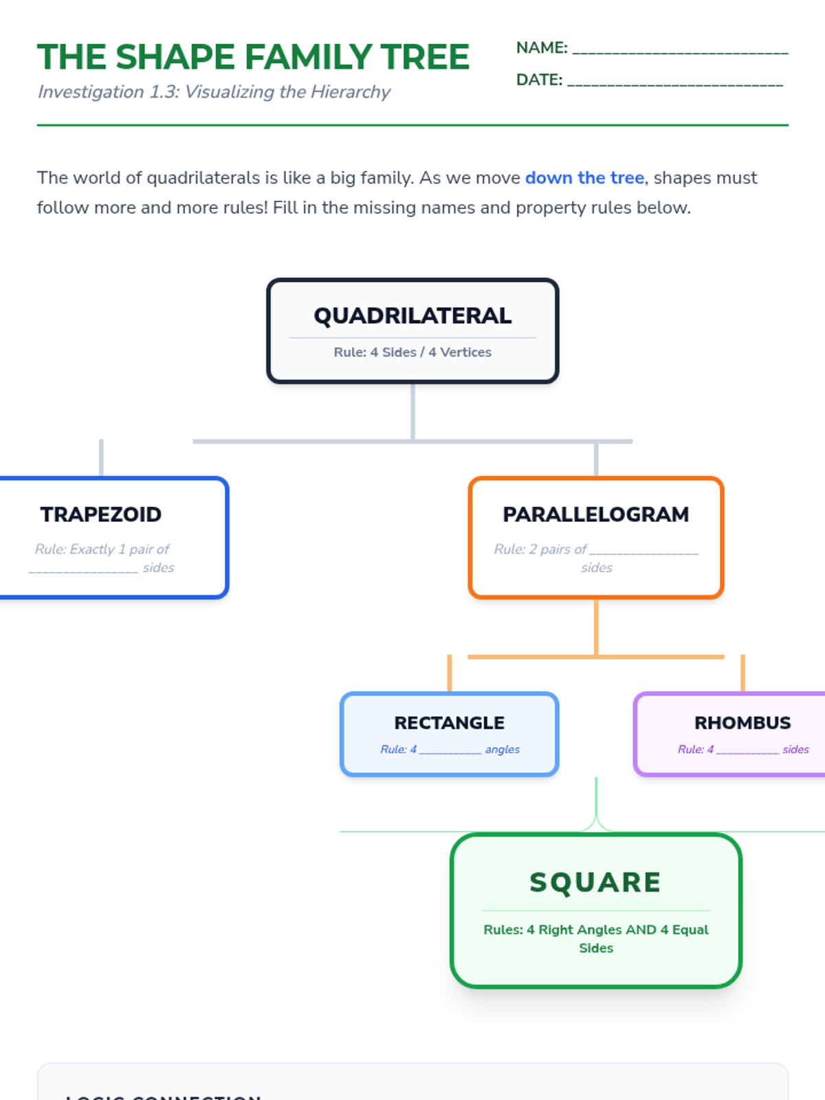 A comprehensive 4th-grade geometry unit focusing on the hierarchical classification of quadrilaterals through inquiry, logic games, and design projects.