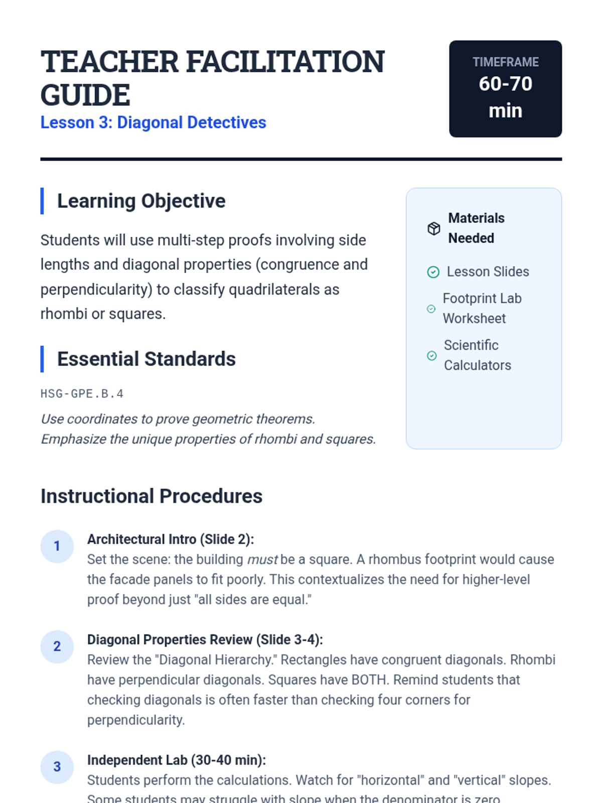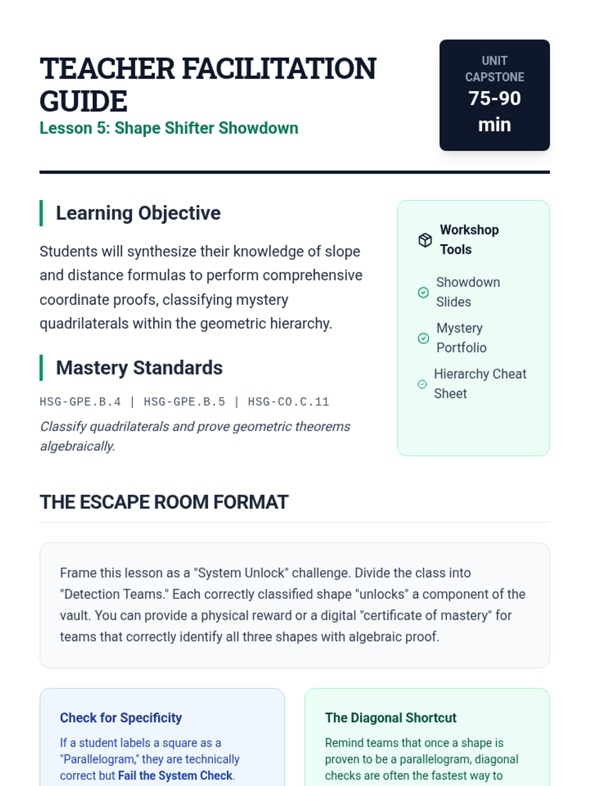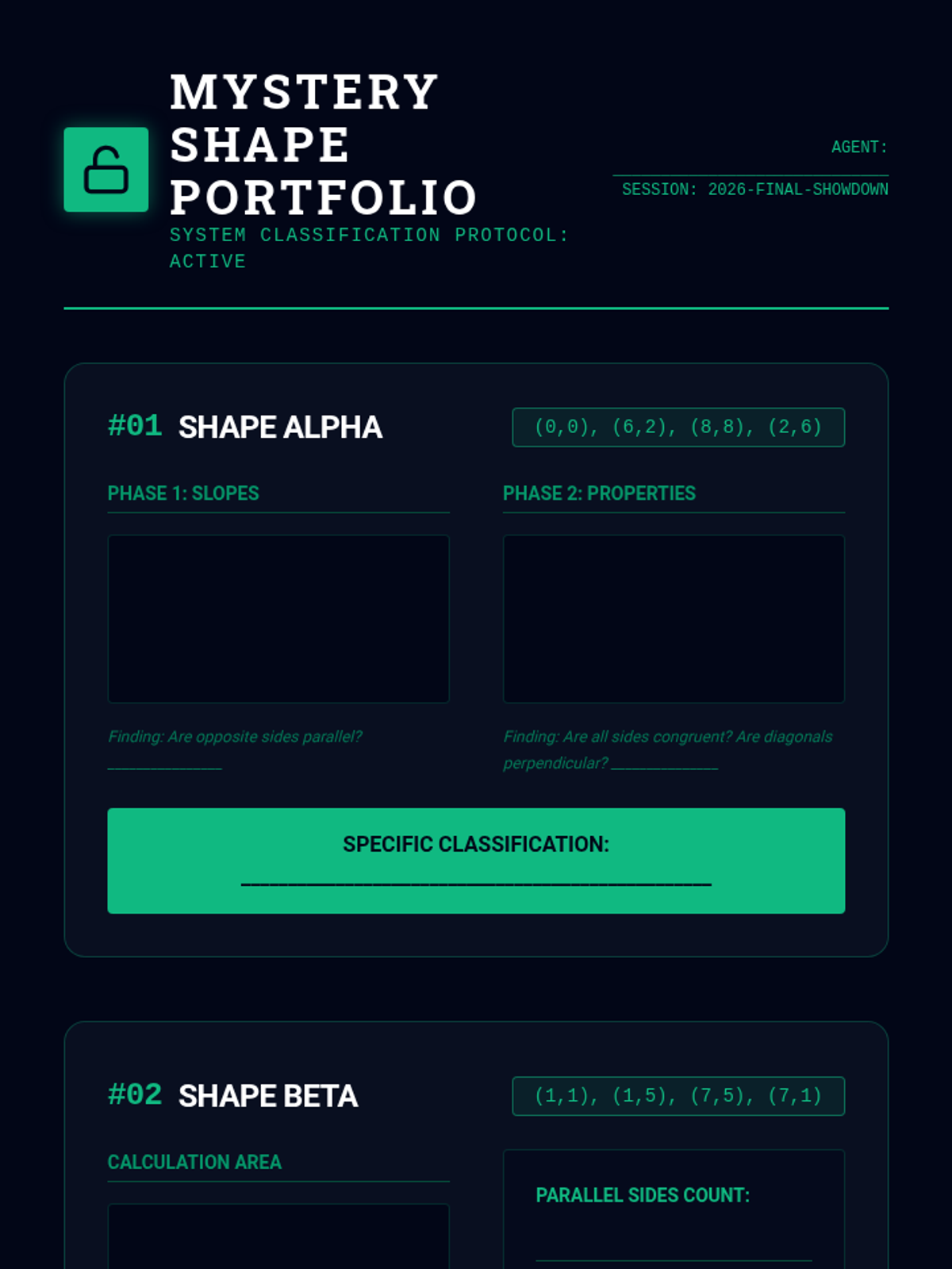 A comprehensive unit on using coordinate geometry to classify and prove properties of quadrilaterals algebraically. Students will master the use of slope and distance formulas to distinguish between parallelograms, rectangles, rhombi, squares, and trapezoids.