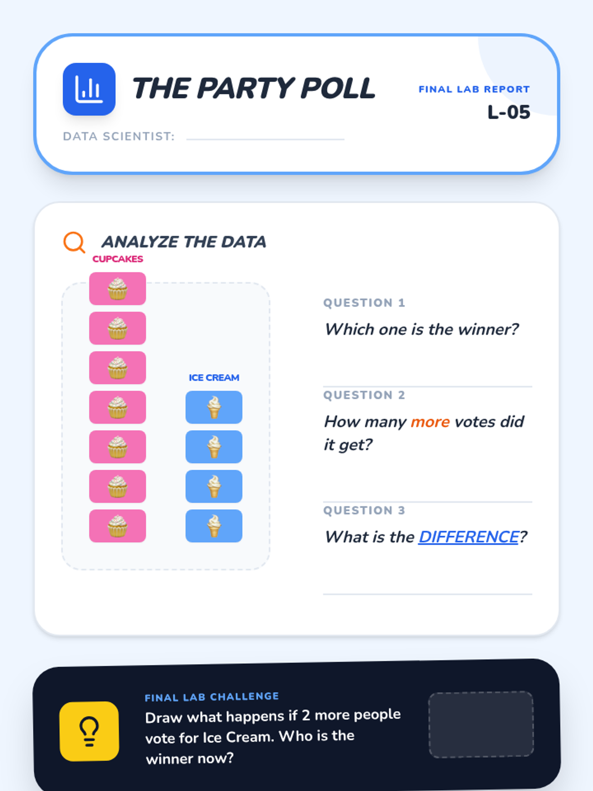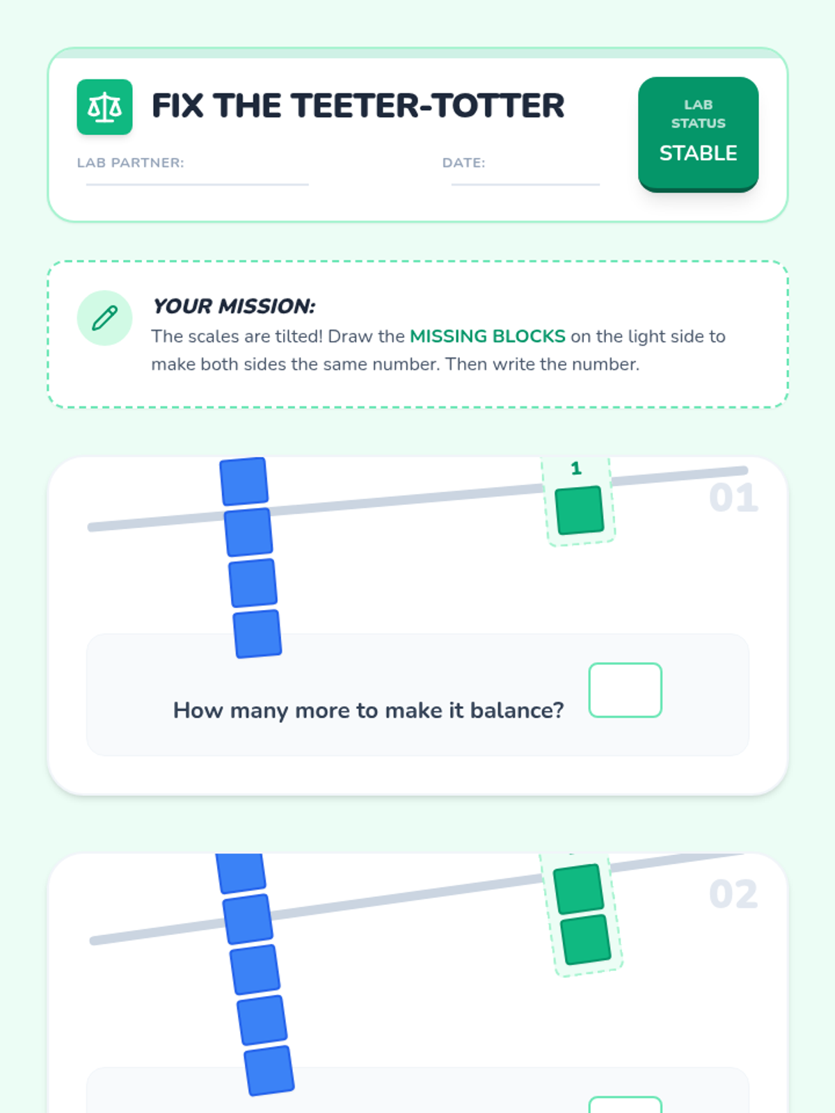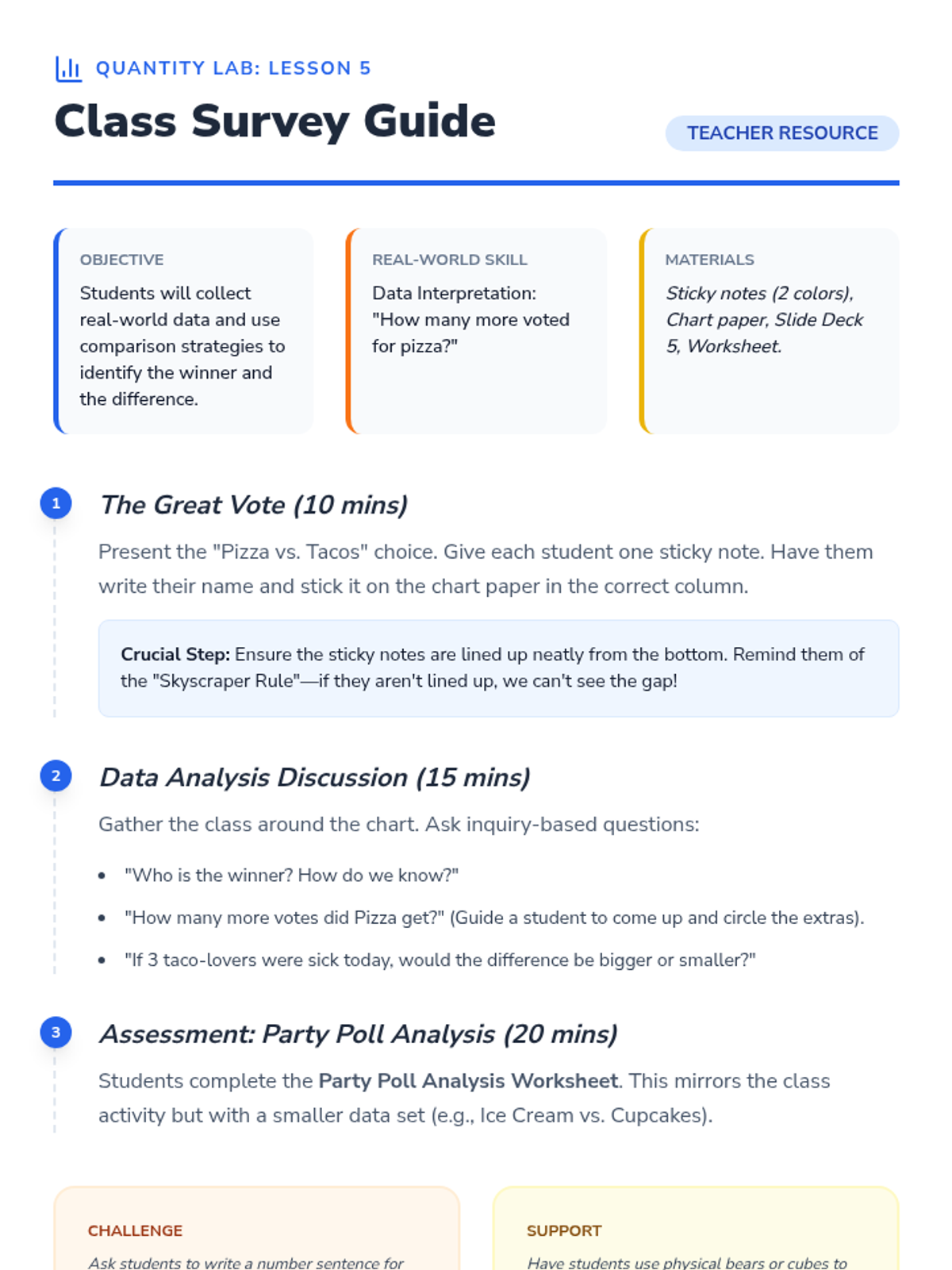 A Kindergarten math sequence focusing on comparison problems. Students use matching, tower building, and data analysis to understand 'how many more' and 'how many fewer' through inquiry-based activities.