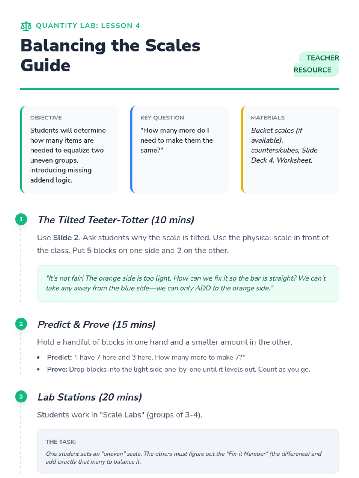 A 5-day introductory unit on comparing quantities and numerals 0-10 using alligator symbols and equal signs. Students explore 'greater than', 'less than', and 'equal to' through hands-on swamp-themed stations and visual practice.