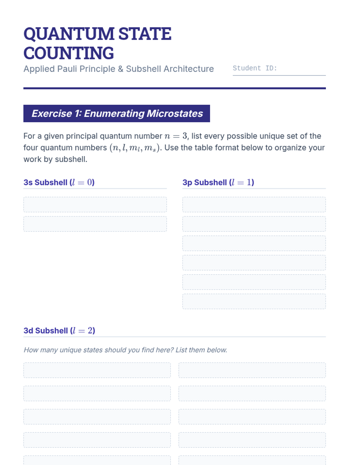 This sequence grounds the structure of the Periodic Table in the fundamental principles of quantum mechanics. Students explore quantum numbers, orbital geometry, electron spin, shielding effects, and spectroscopic validation to understand why the elements are organized as they are.